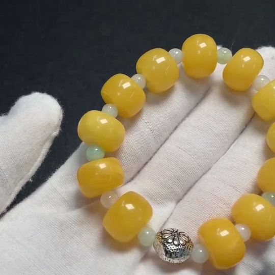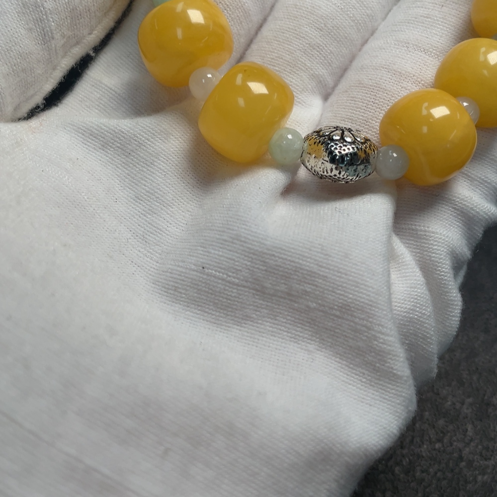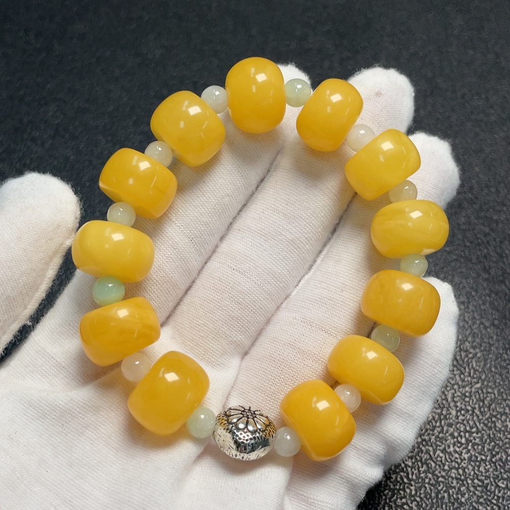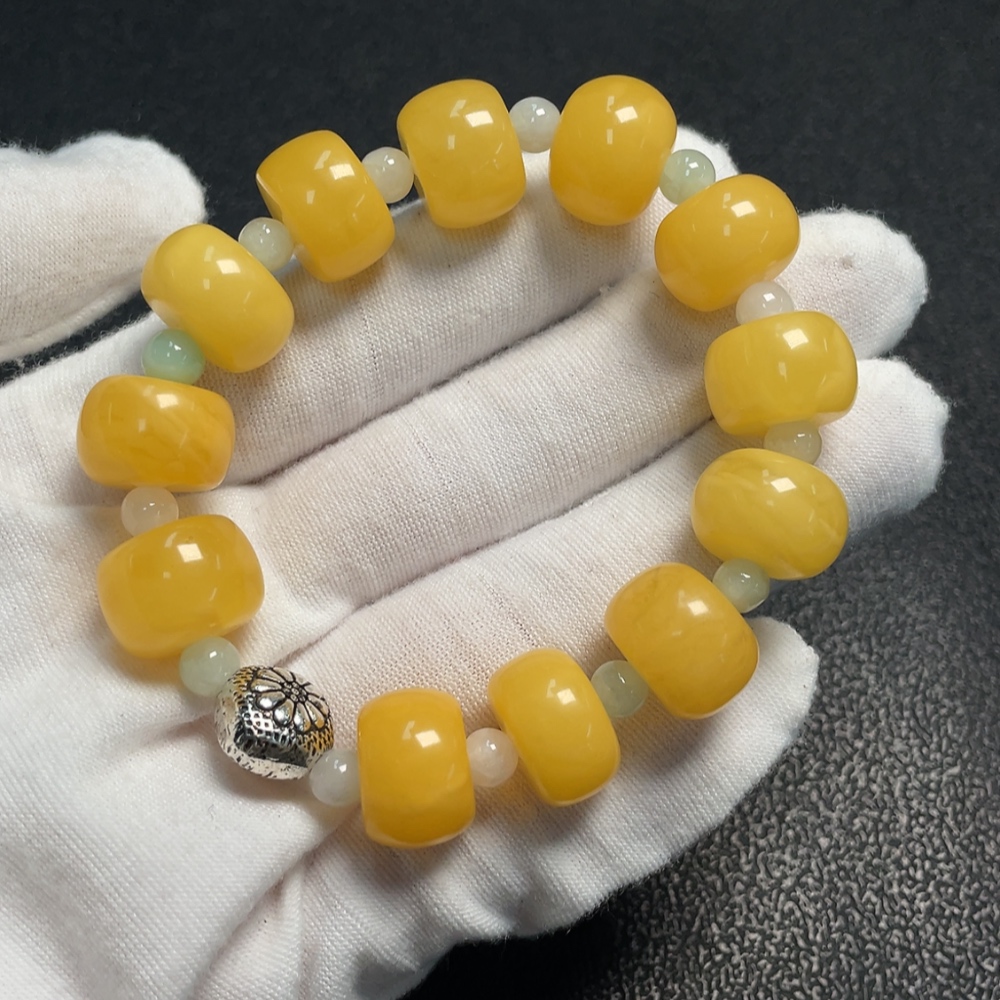 Amber Beeswax Bracelet, Total Weight Approx. 23.14g, Size 14.3mm, Non-Gold, With Jadeite