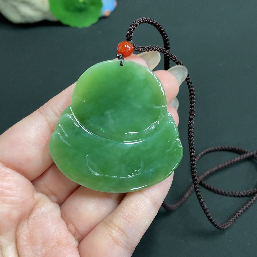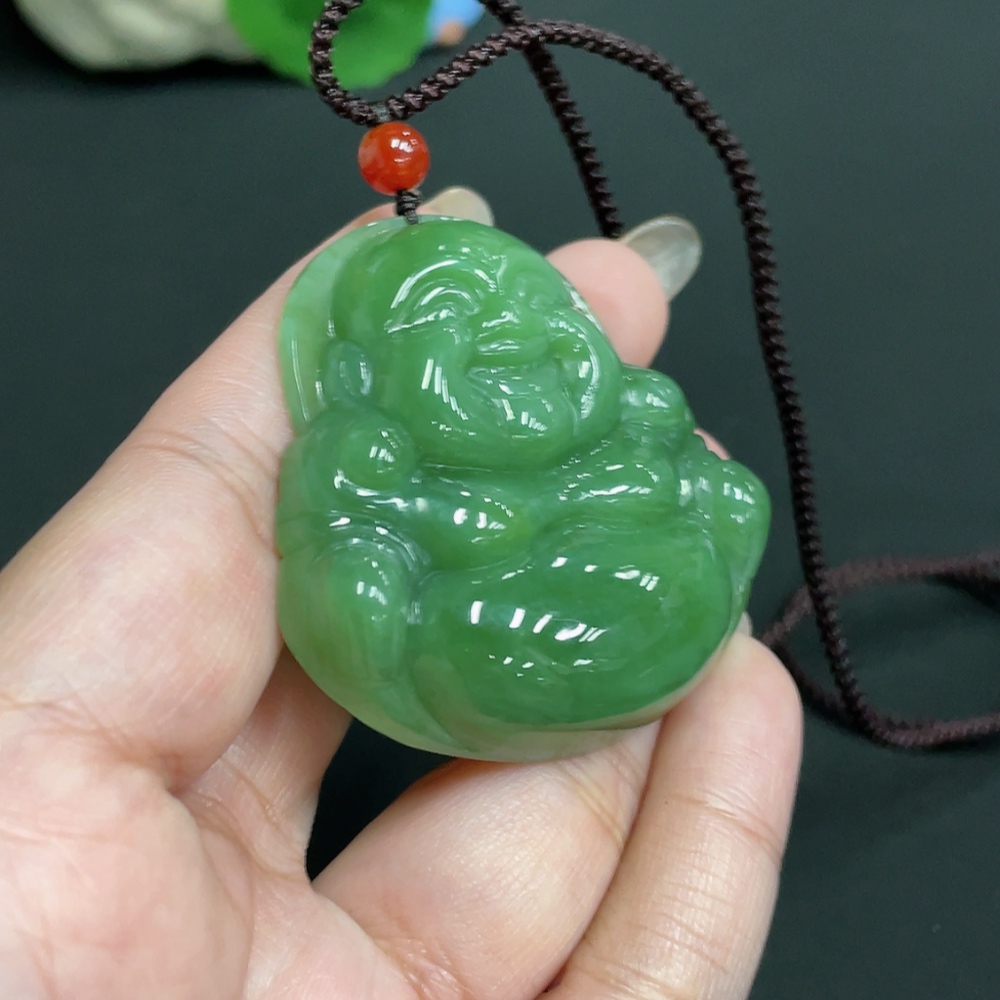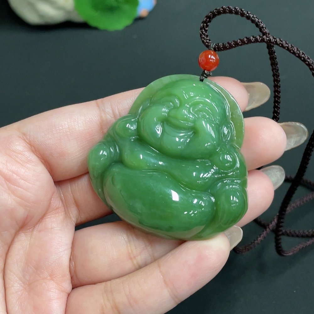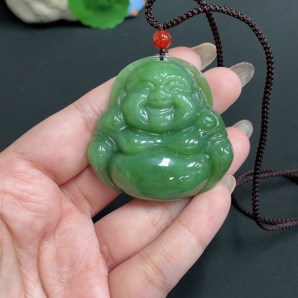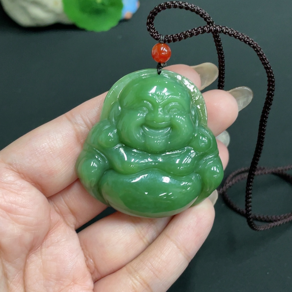 Hetian Jade Jasper Pendant Buddha, Total Weight Approx. [Including Rope] 48g, Beads Not Hetian Jade