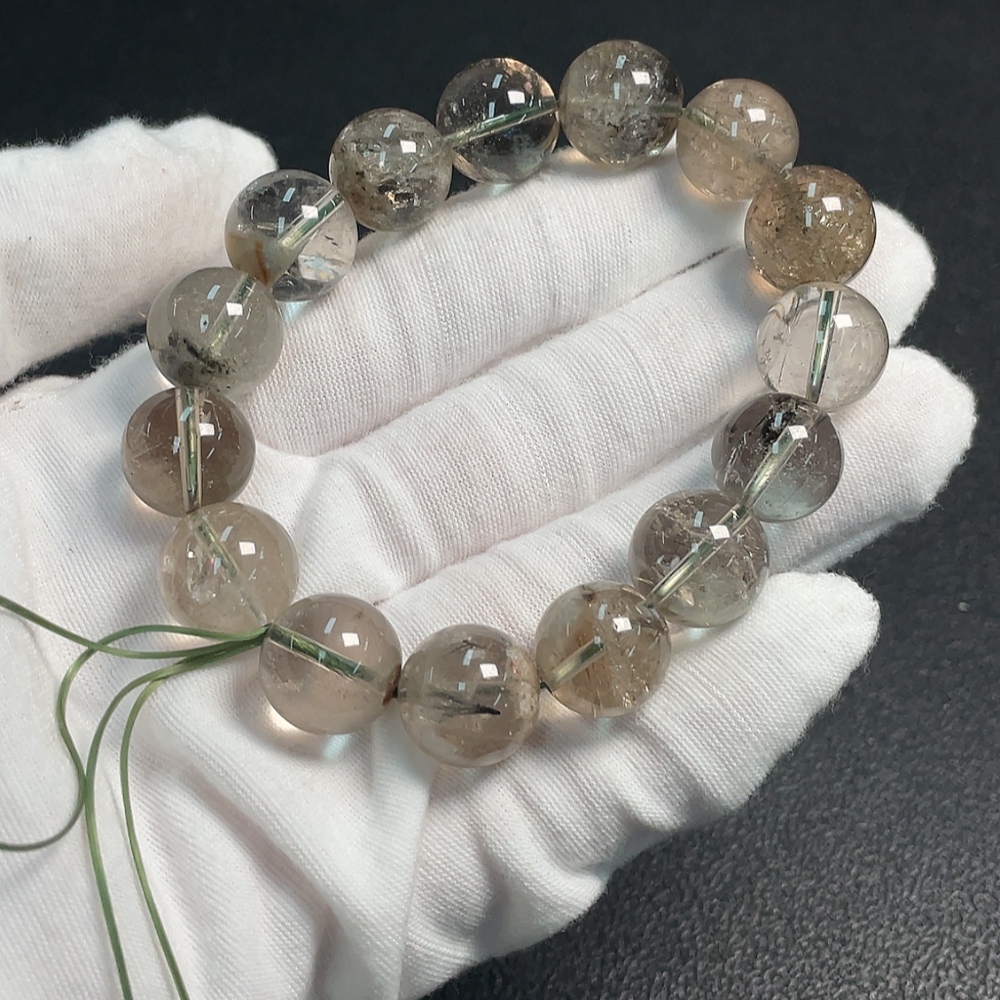 Crystal Bracelet with Visible Organic Matter, Total Weight Approx. 51.52g, Size About 13.5mm