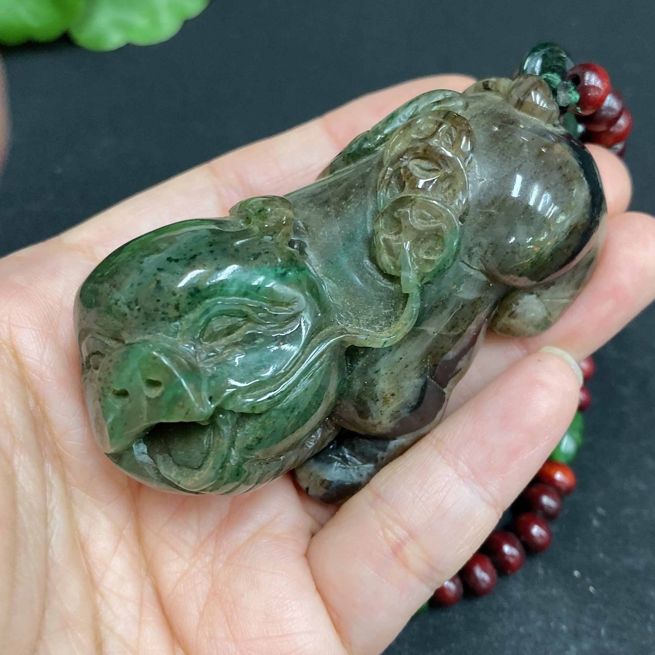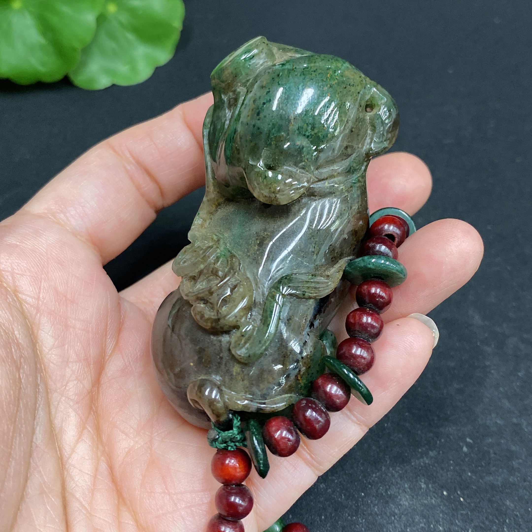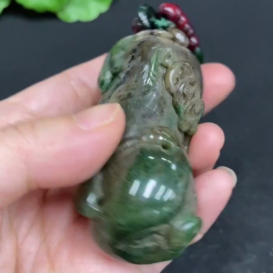 Dushan Jade Handheld Carving - Pig with Non-Dushan Jade Chain