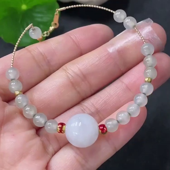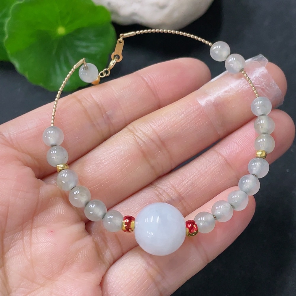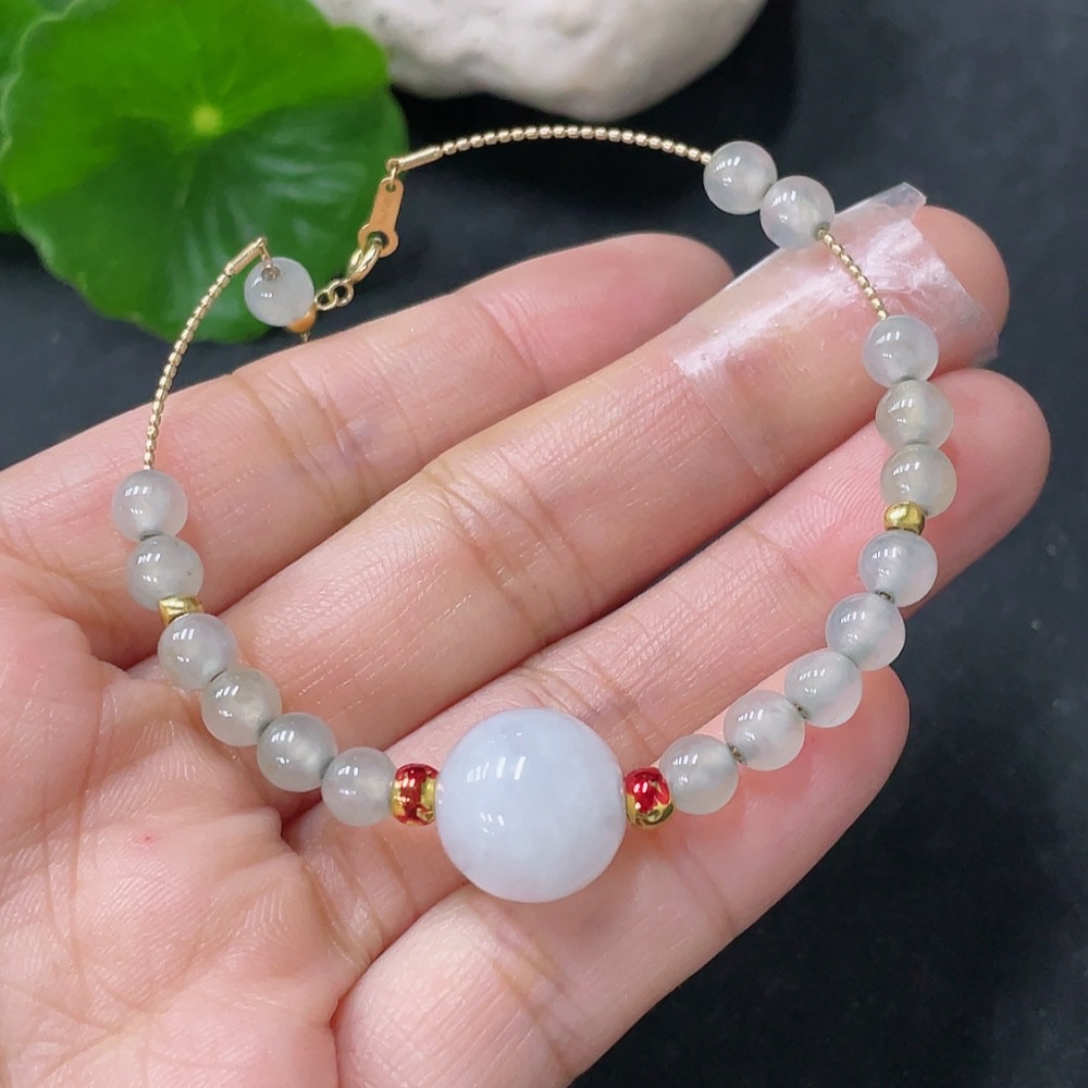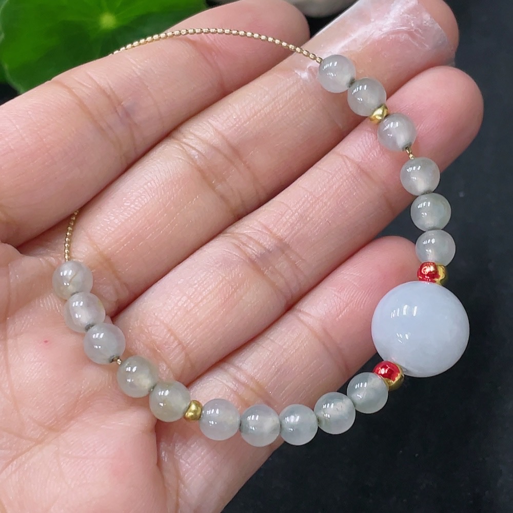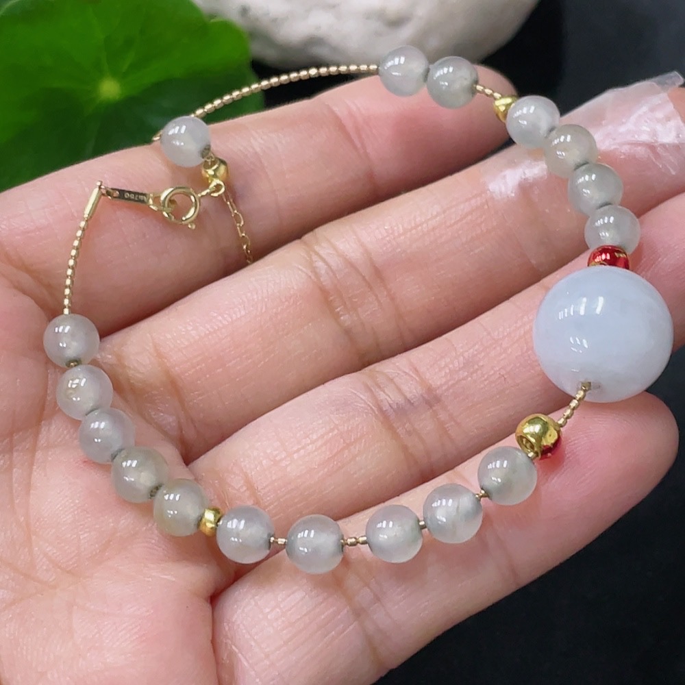 Jadeite Bracelet Maximum Bead 12.3mm Approx. Total Weight 7.37g Marked Red Au99% Others 18k