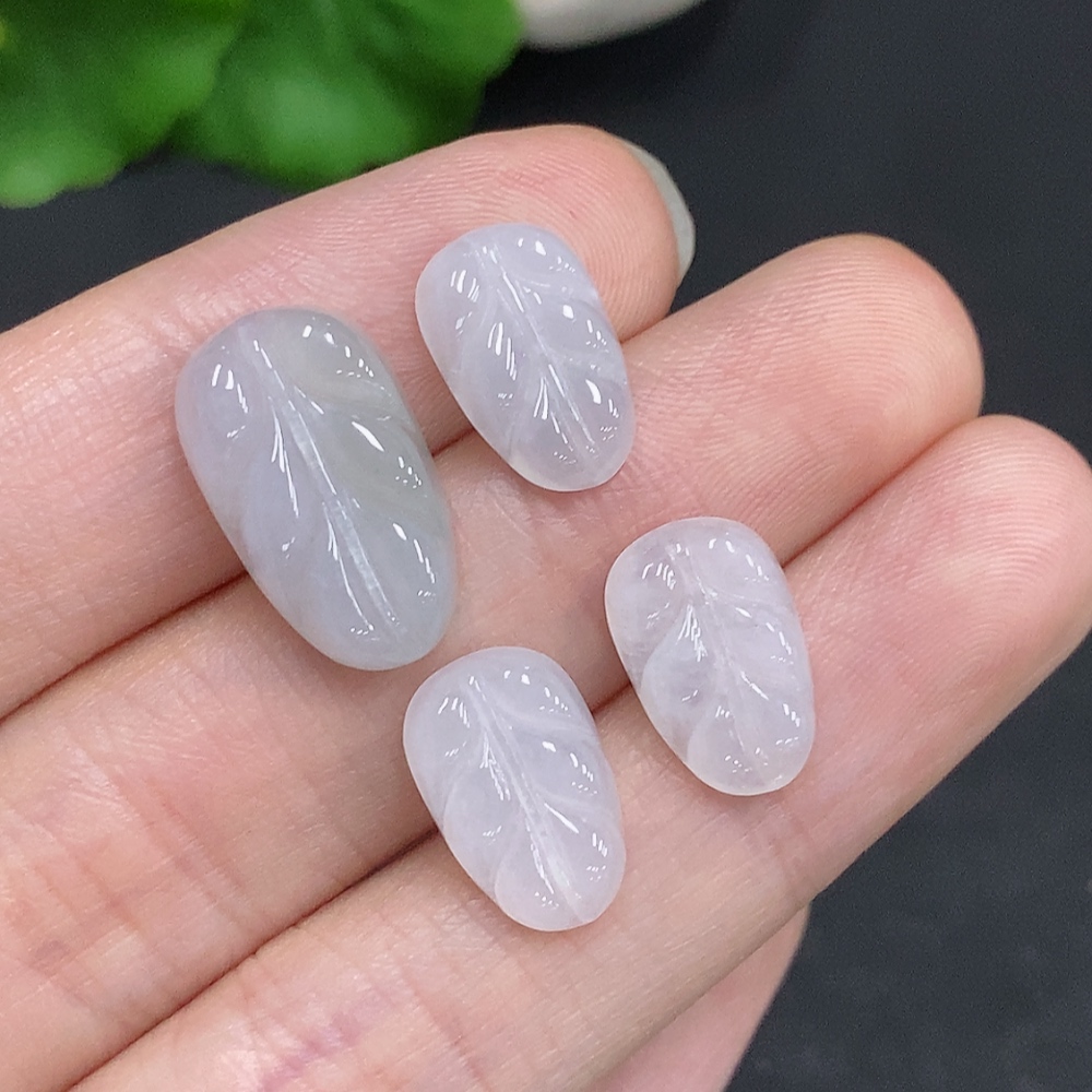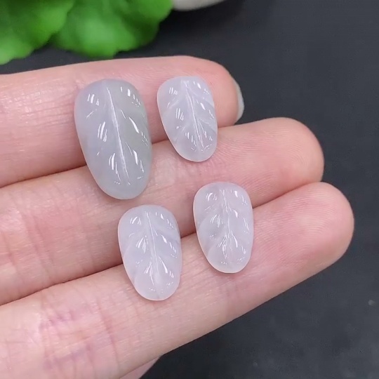 Jadeite Leaf Inlaid Pieces Sell as a Lot