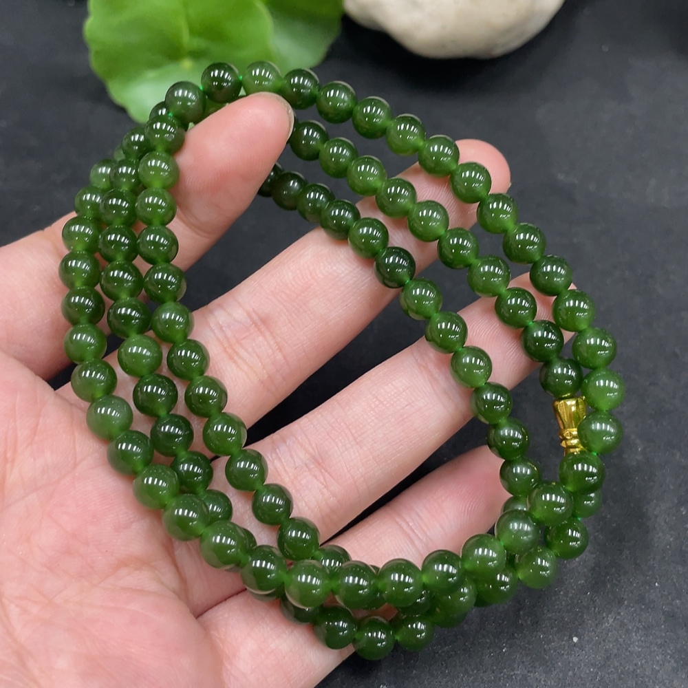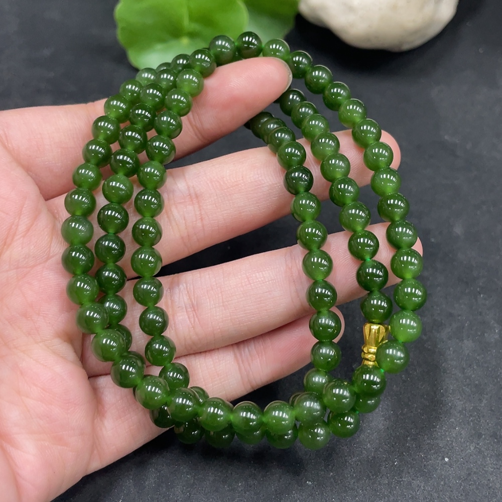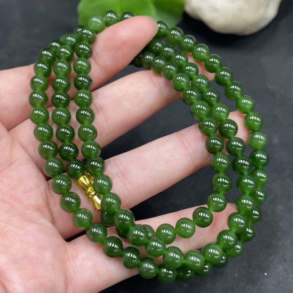Hetian Jade Jasper Bead Necklace, Approx. 5.6mm, Total Weight Approx. 35.8g