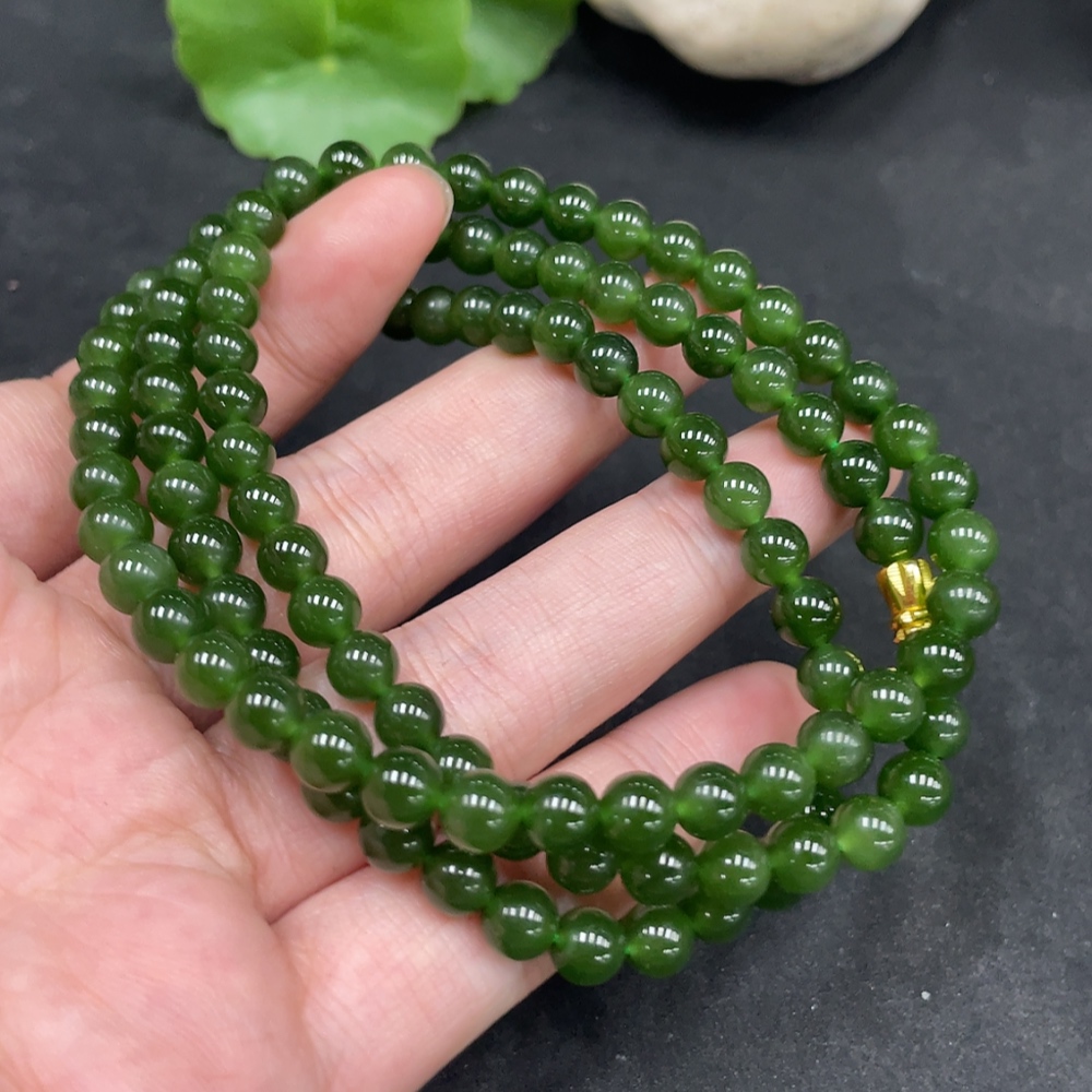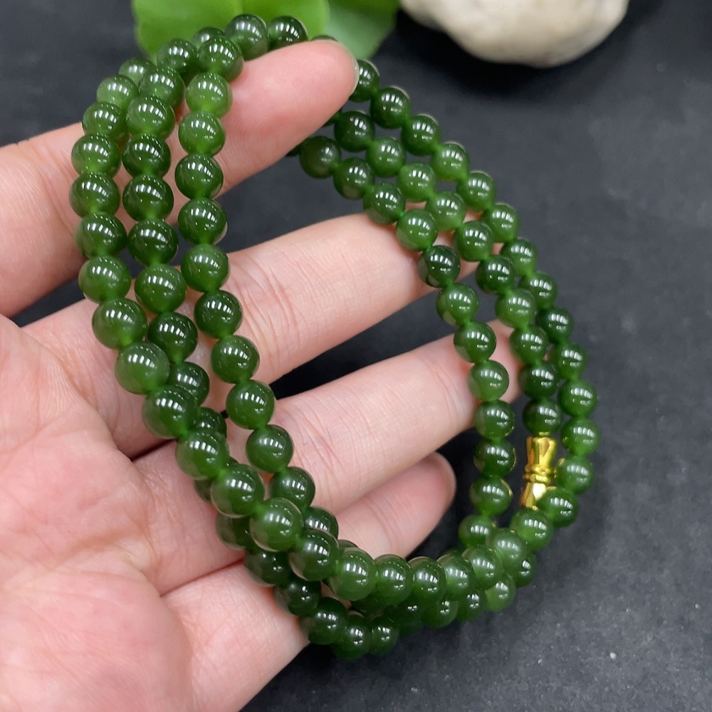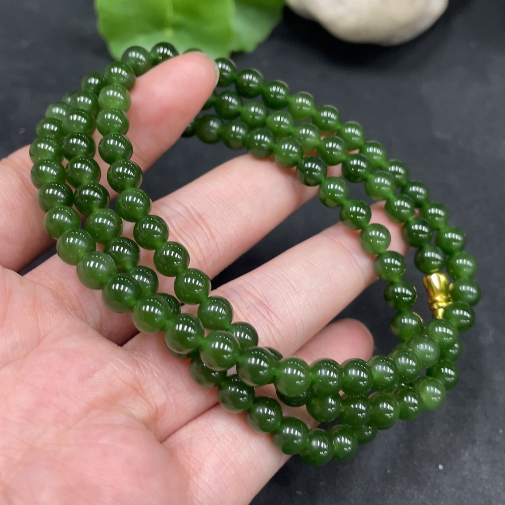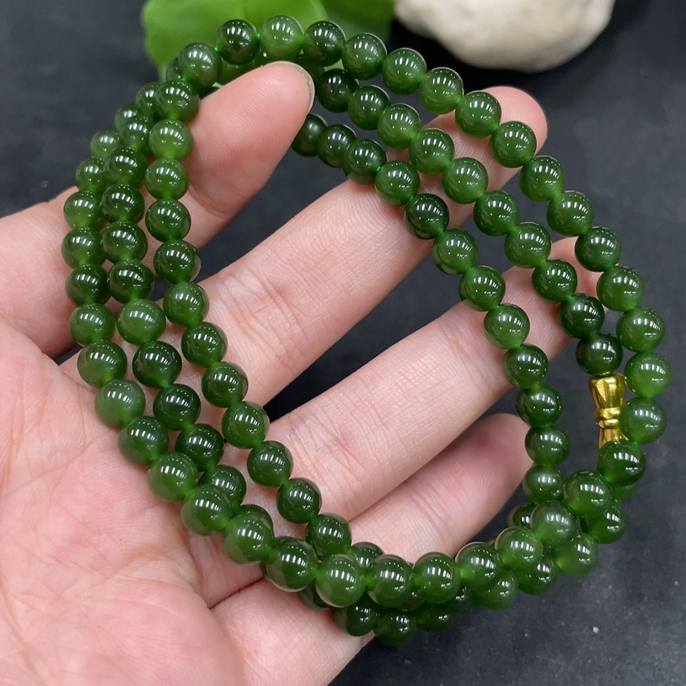 Hetian Jade Jasper Bead Necklace, Approx. 5.6mm, Total Weight Approx. 35.8g
