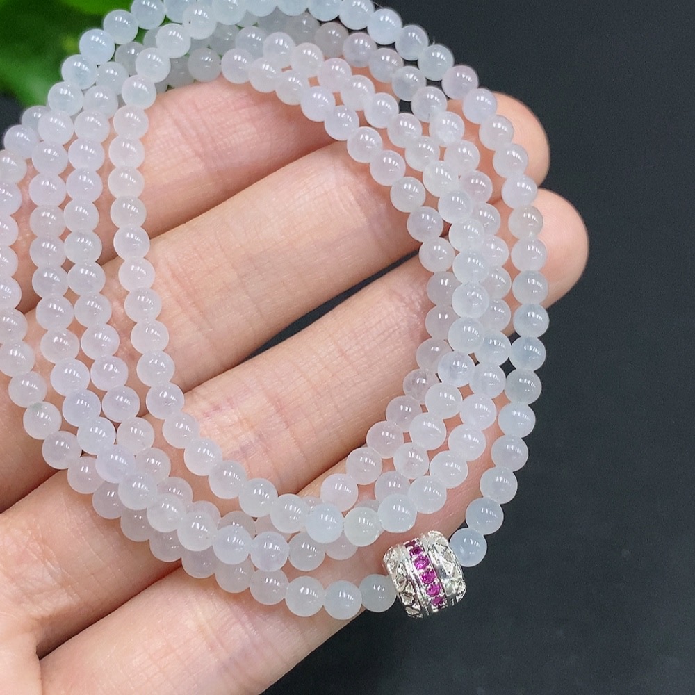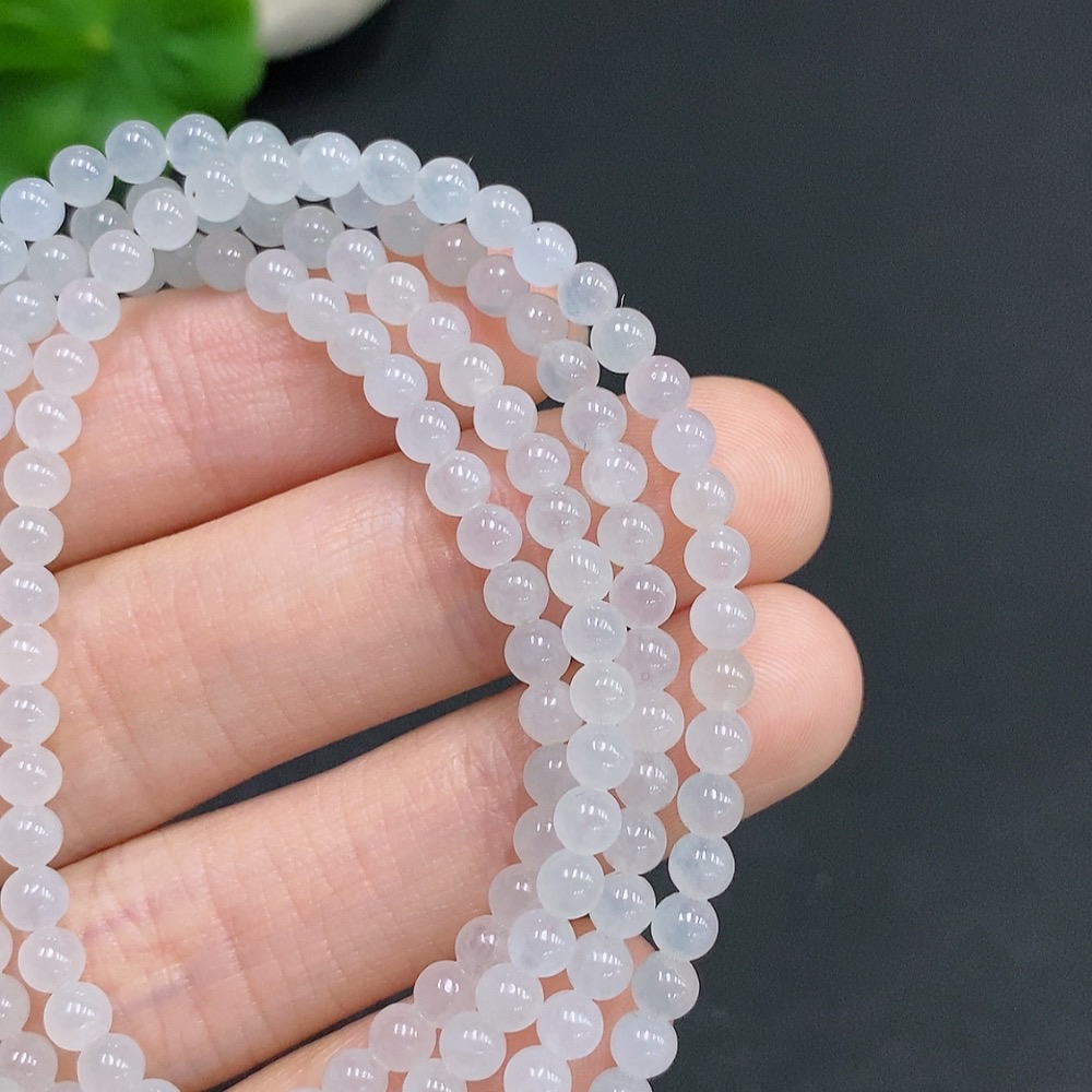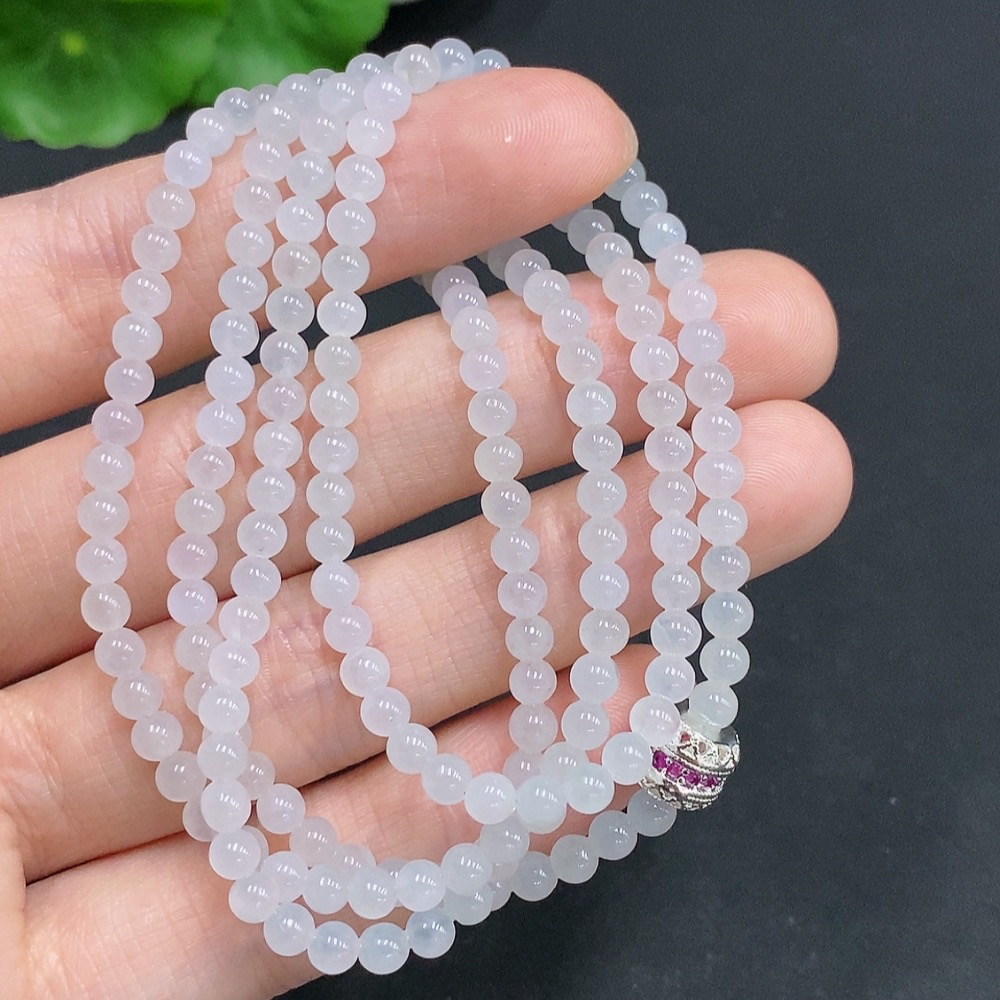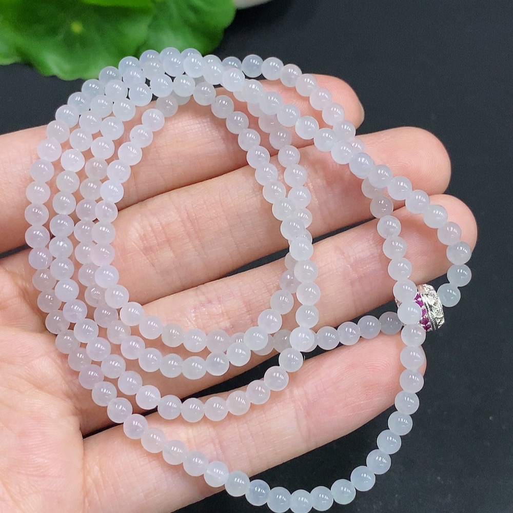 Jadeite Bead Necklace Non-Gold Inlaid Total Weight Approx. 17.4g Size About 3.7mm