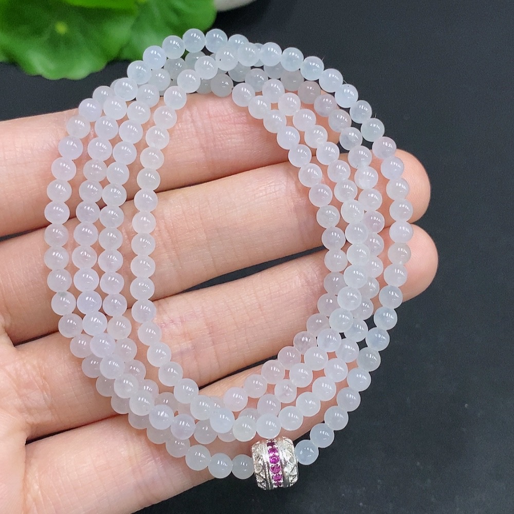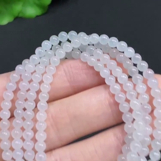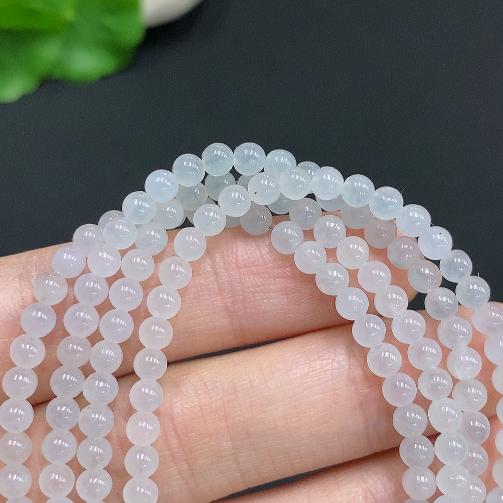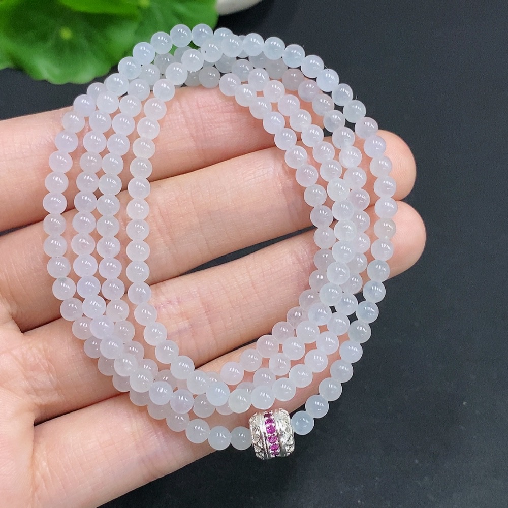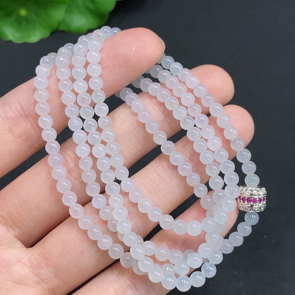 Jadeite Bead Necklace Non-Gold Inlaid Total Weight Approx. 17.4g Size About 3.7mm