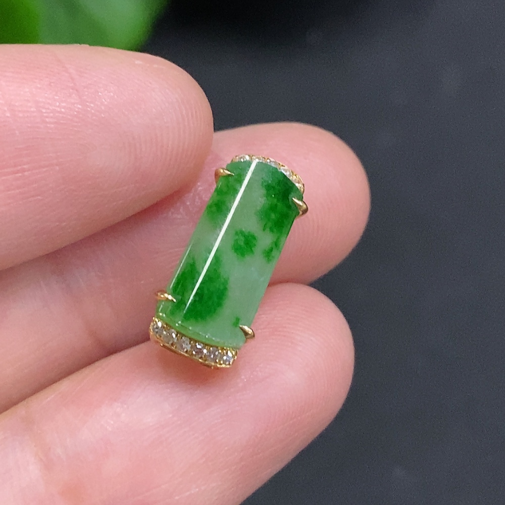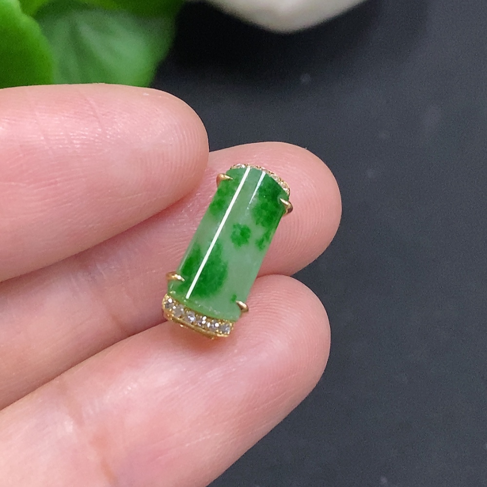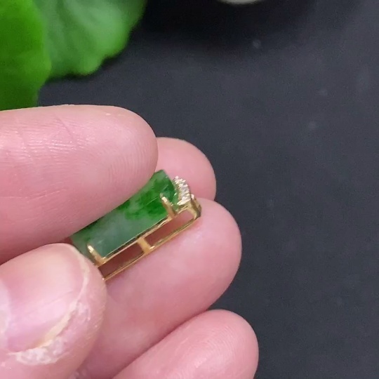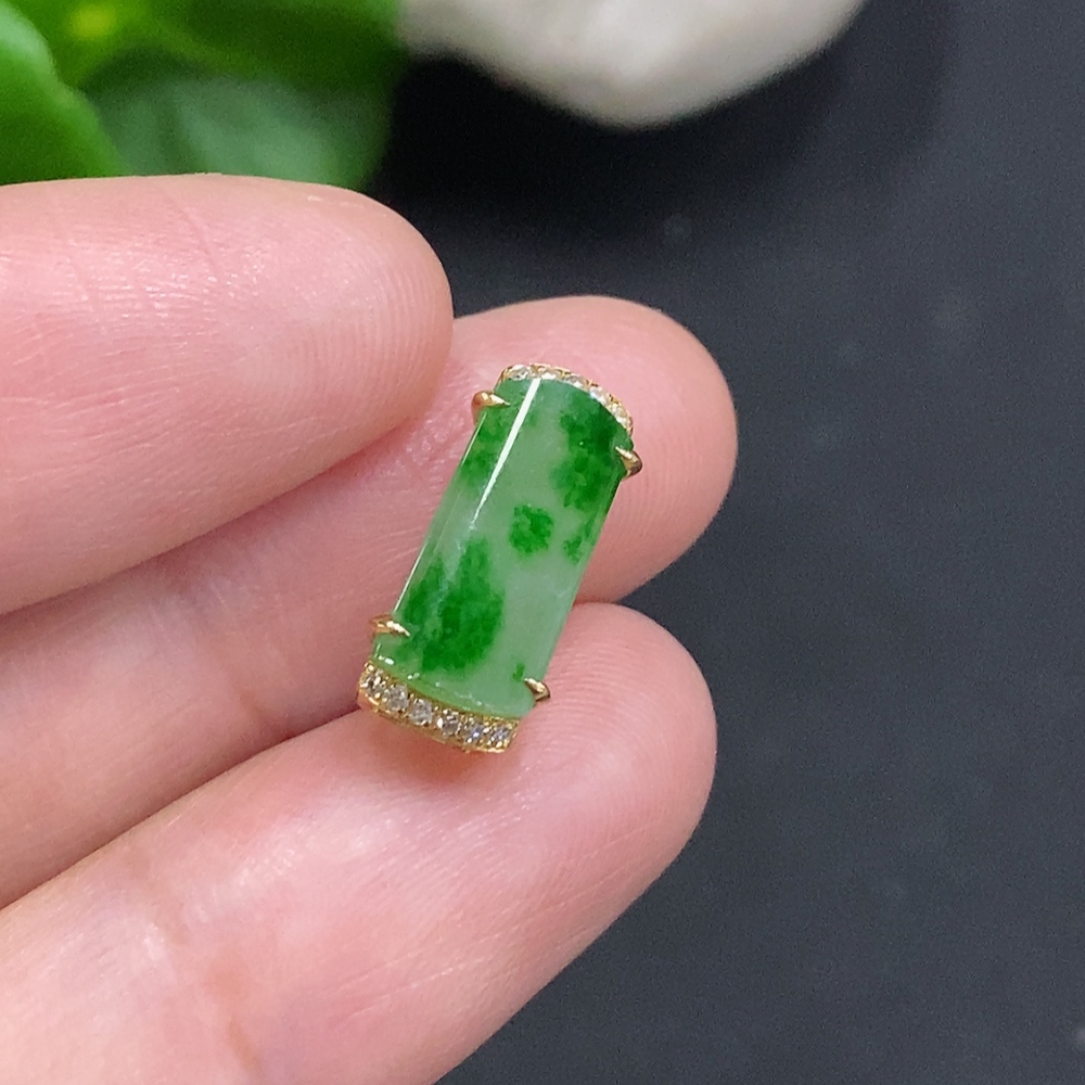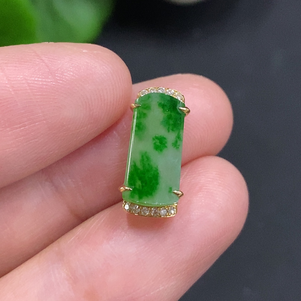 Jadeite Pendant with 18K Gold Setting Total Weight Approx. 1.1g (Accented with Diamonds)