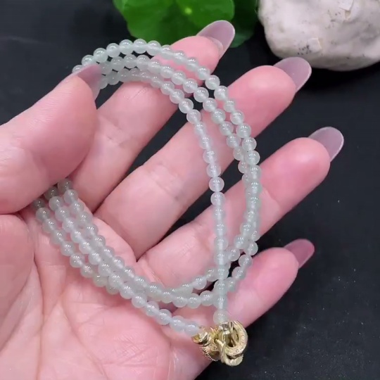 Jadeite Bead Necklace Approx. 3.6mm Total Weight Approx. 16.3g (Non-Gold Inlaid)
