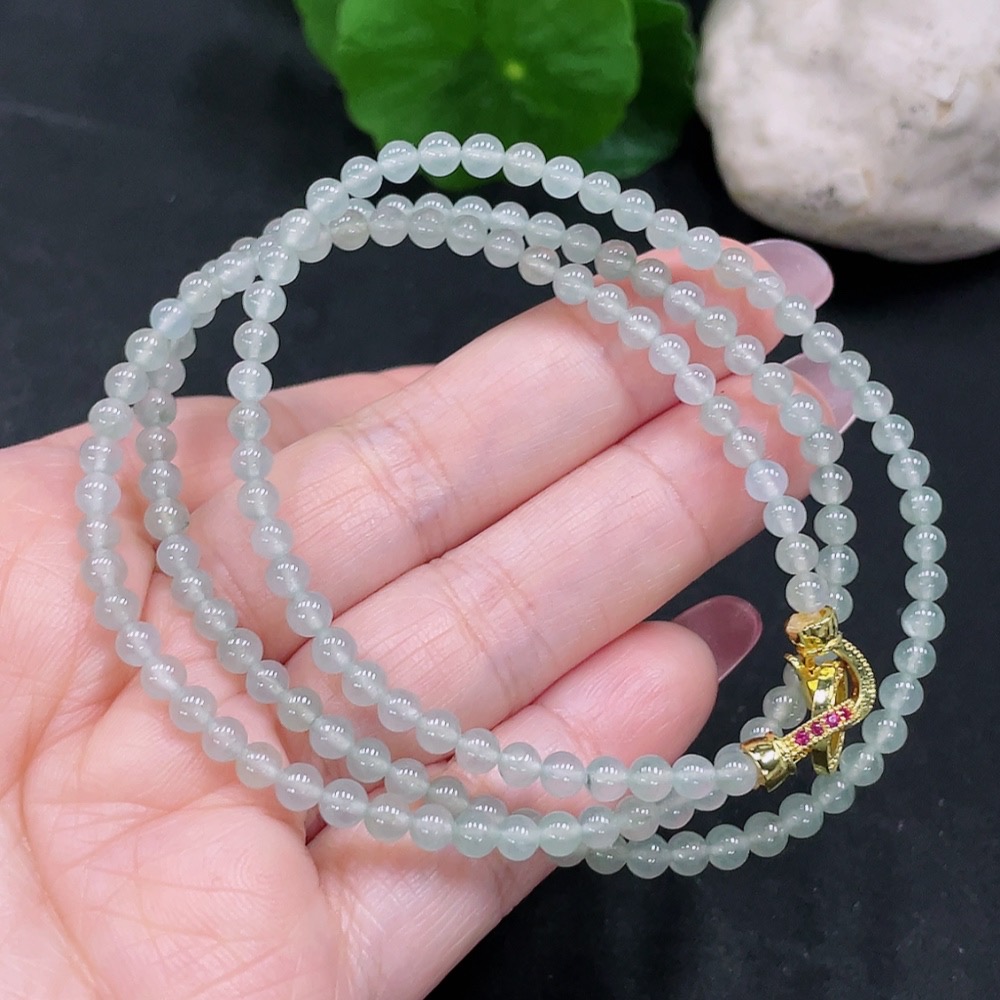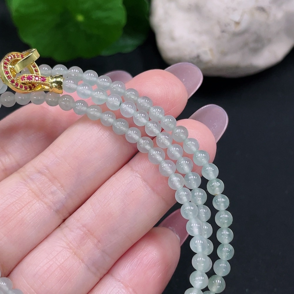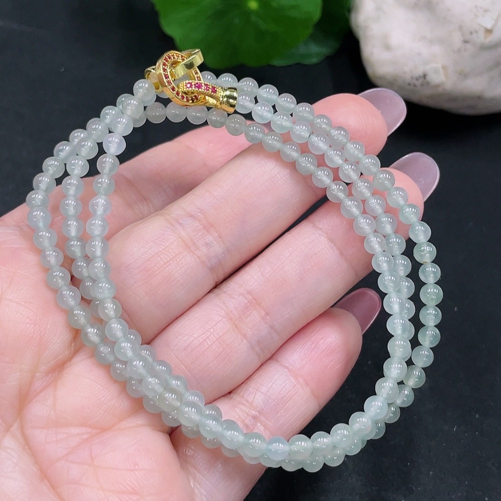 Trezaar - Jadeite Bead Necklace Approx. 3.8mm Total Weight Approx. 15.7g (Non-gold Inlaid)