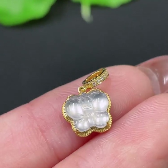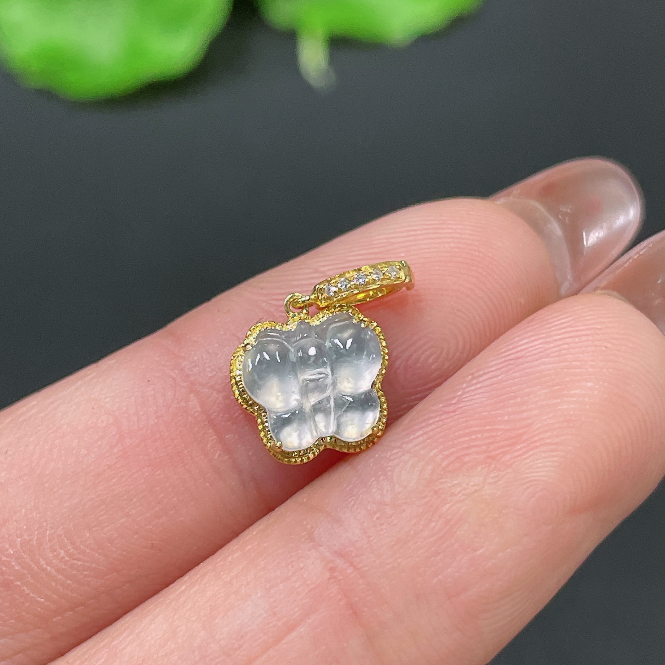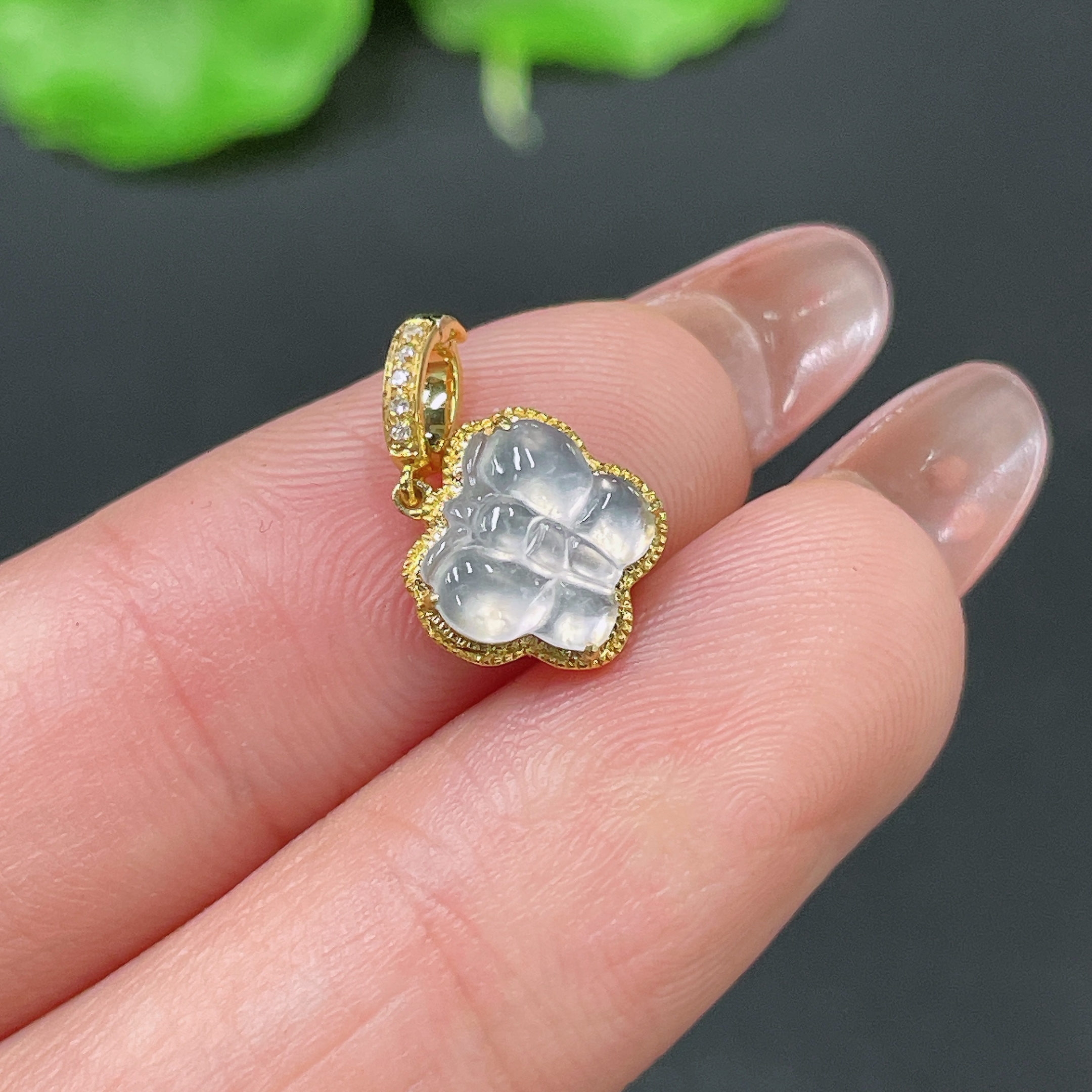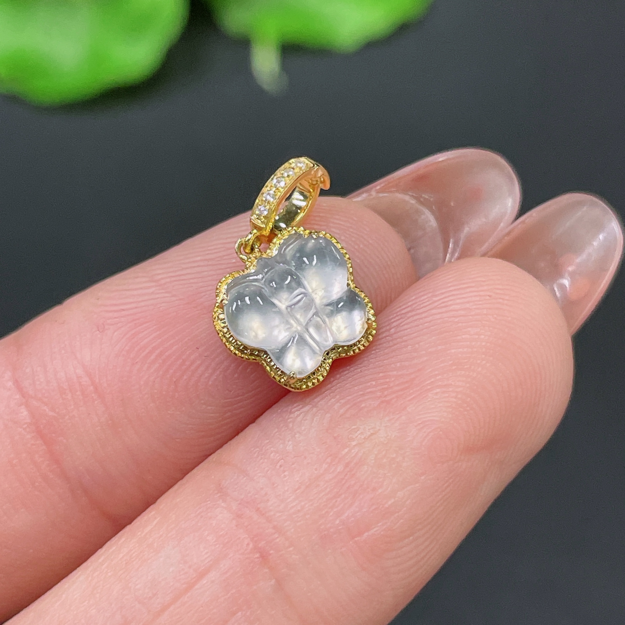 Jadeite Pendant 18k Gold Inlaid with Diamonds Total Weight Approx. 0.73g
