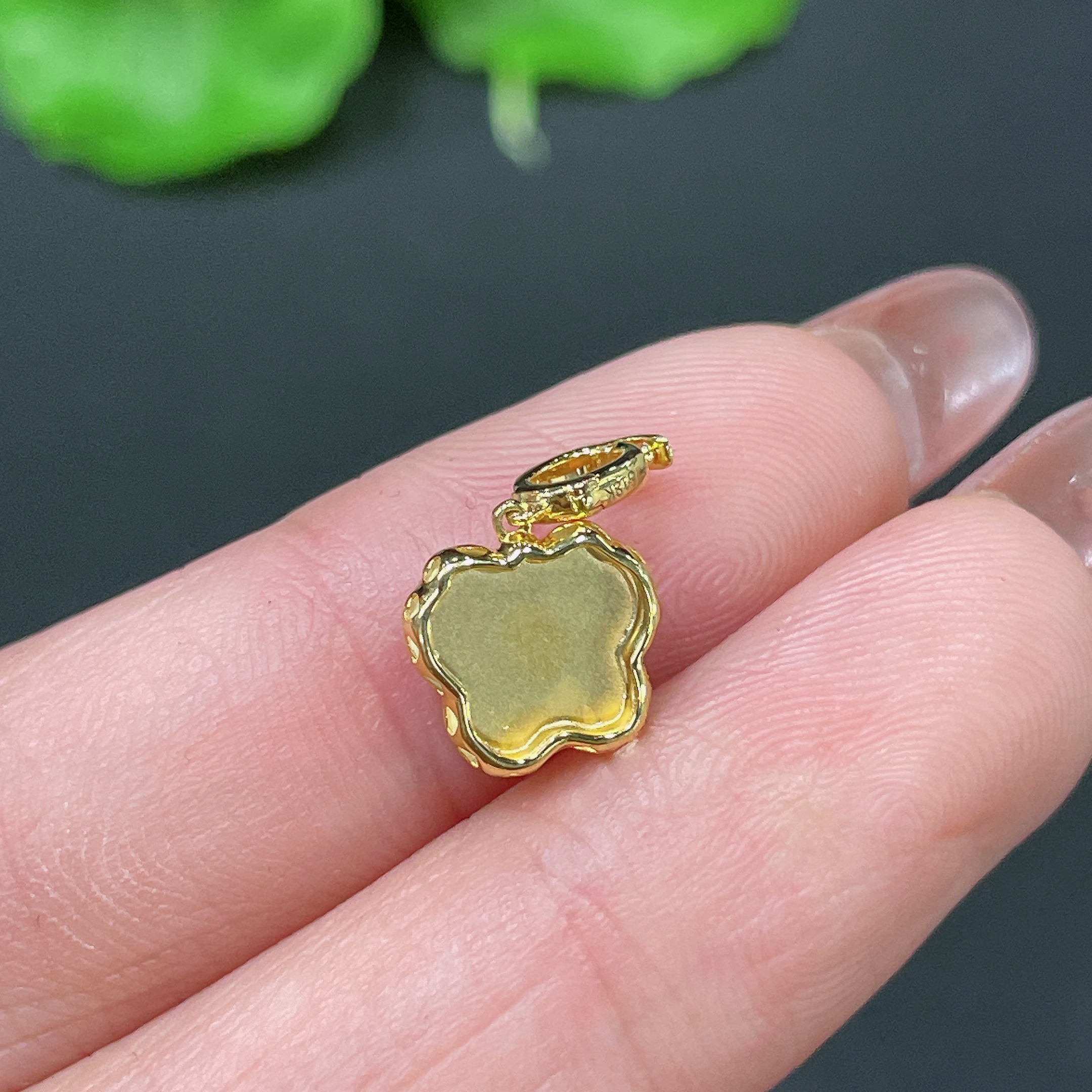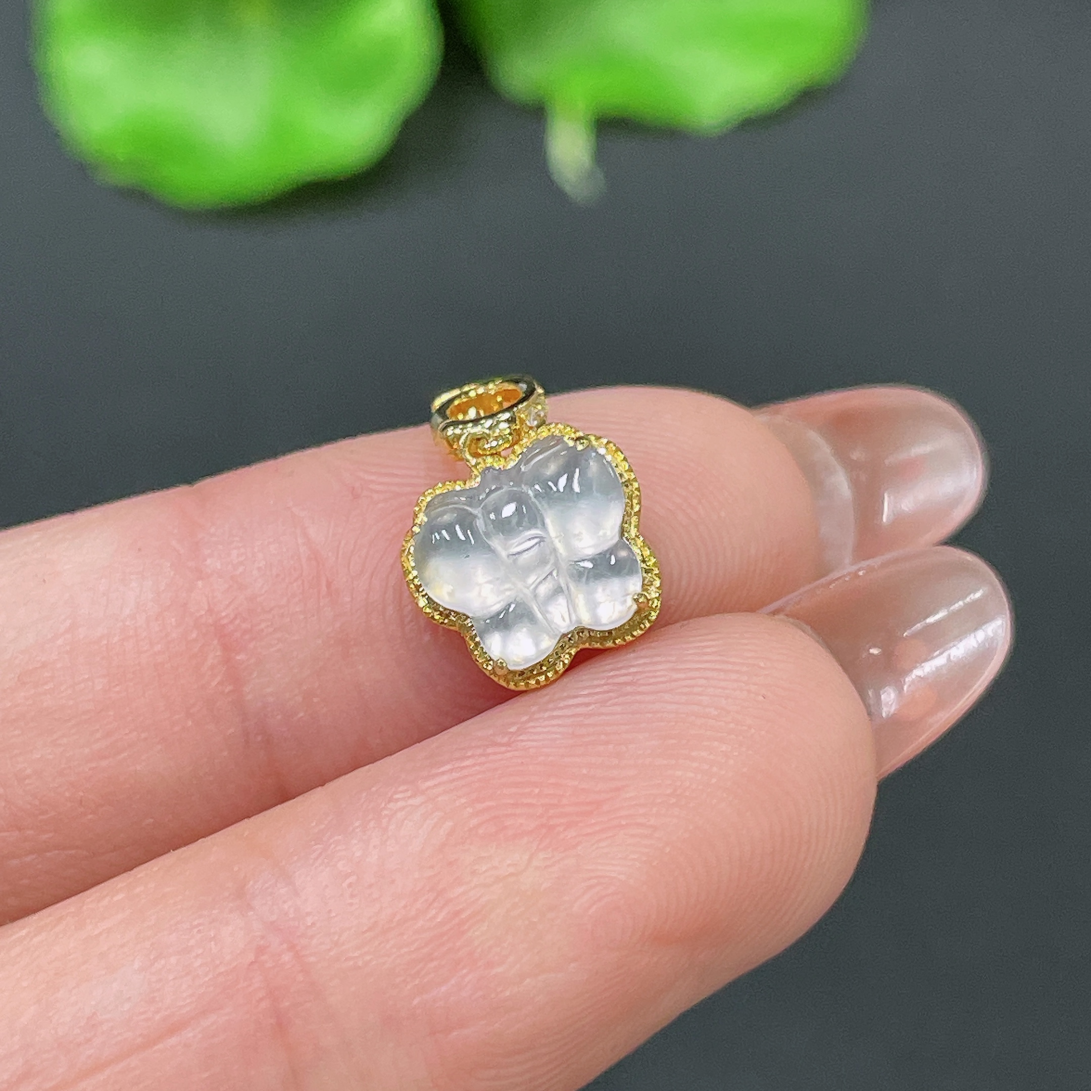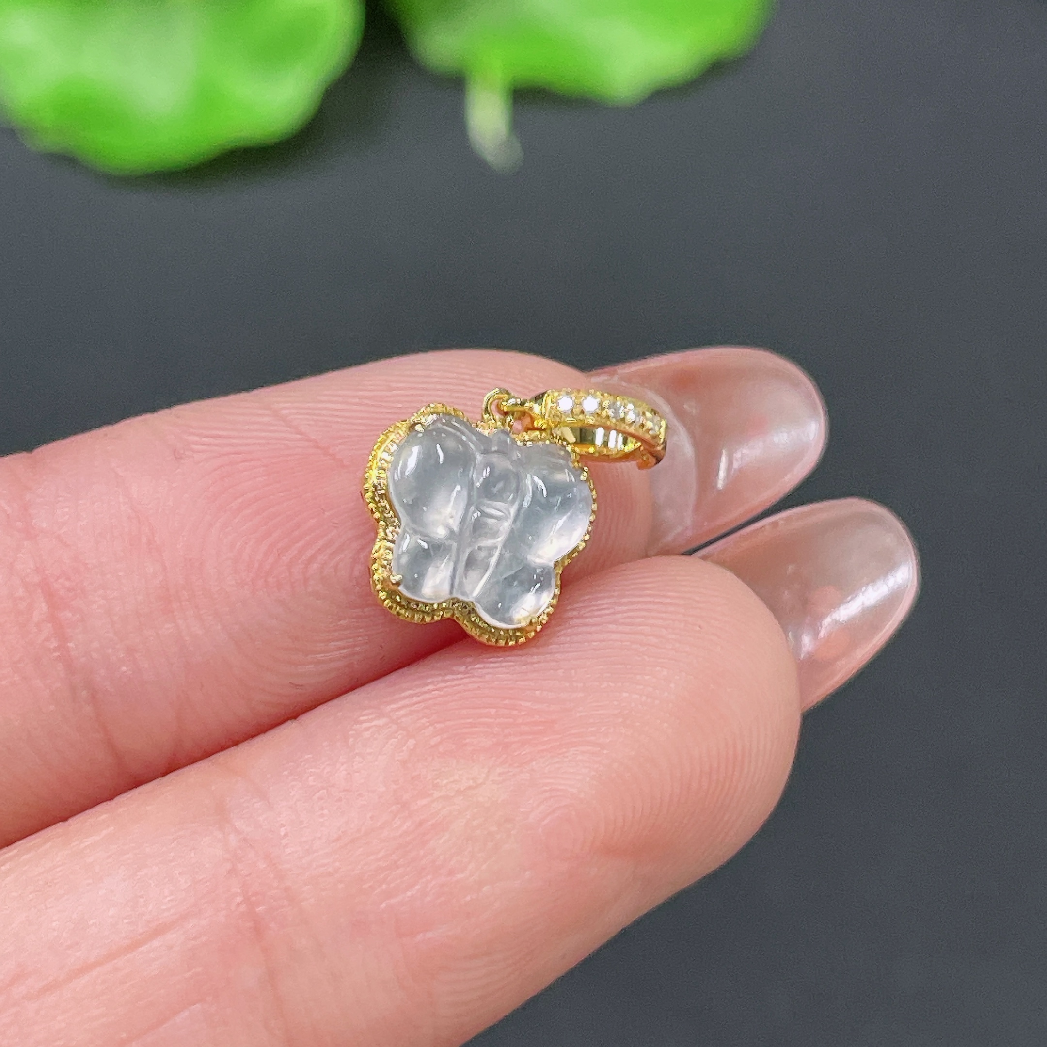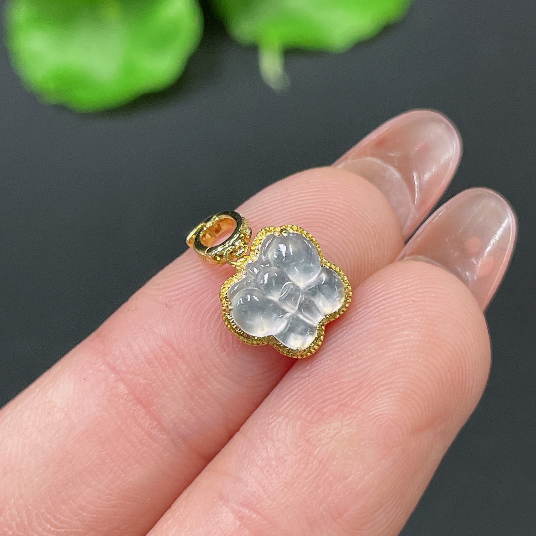 Jadeite Pendant 18k Gold Inlaid with Diamonds Total Weight Approx. 0.73g