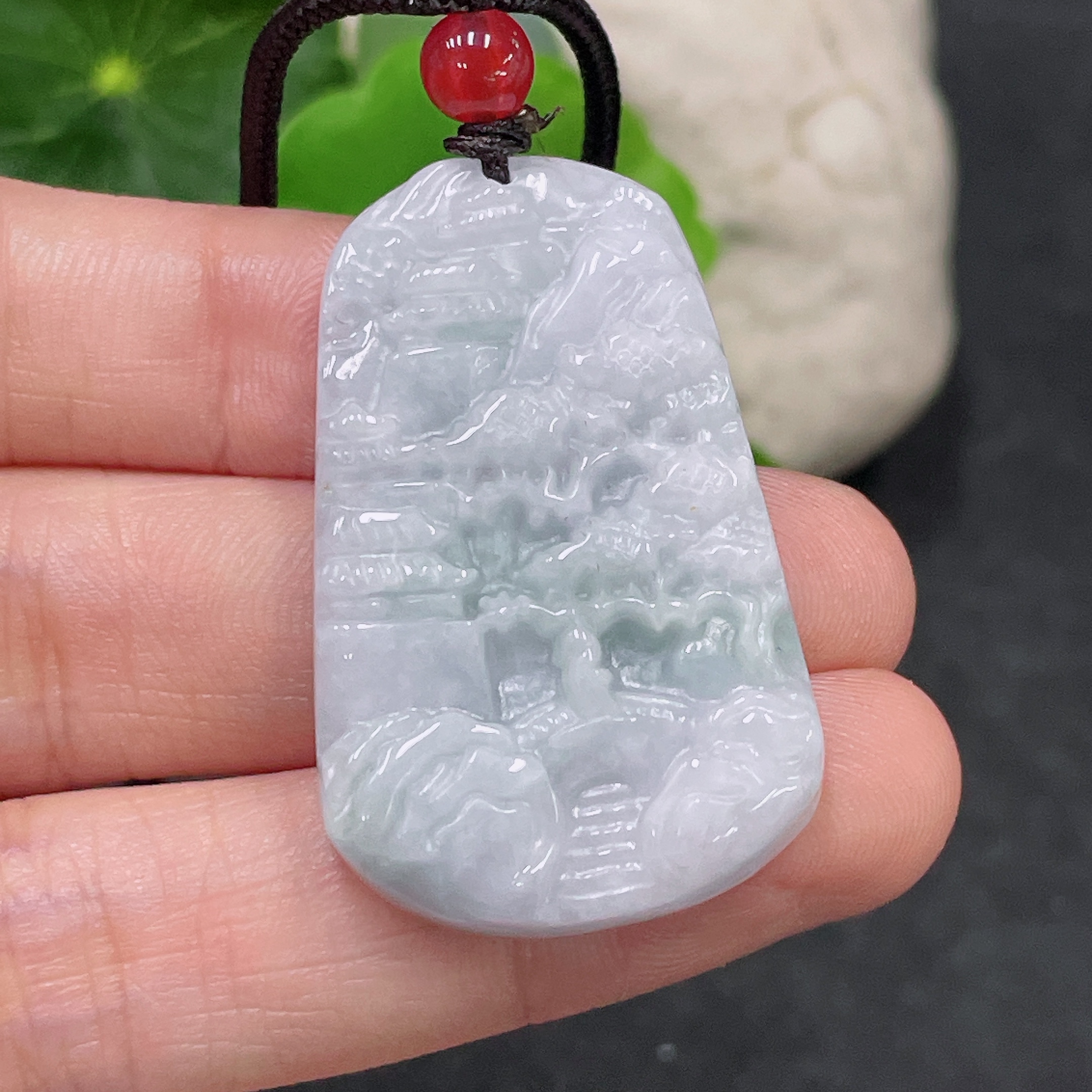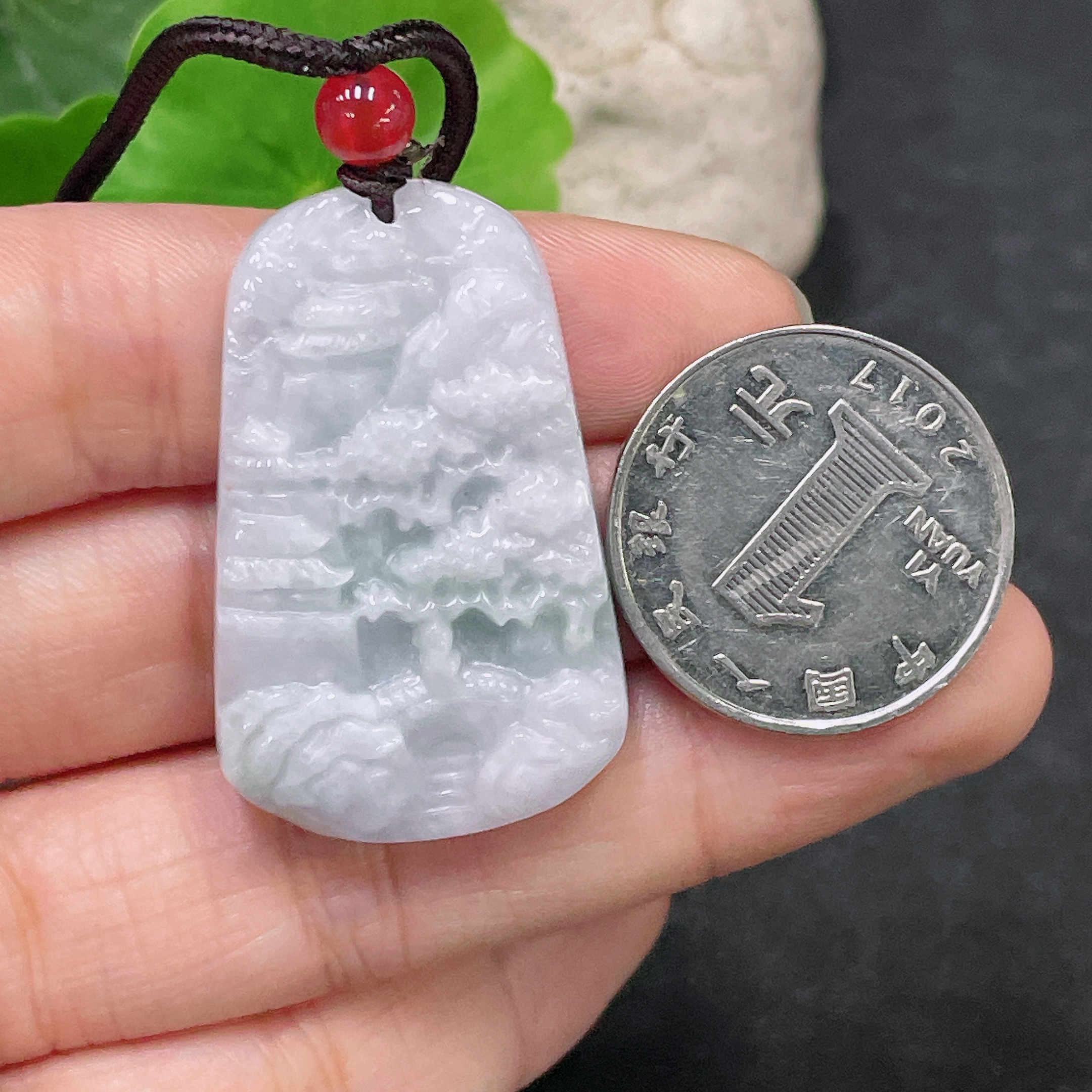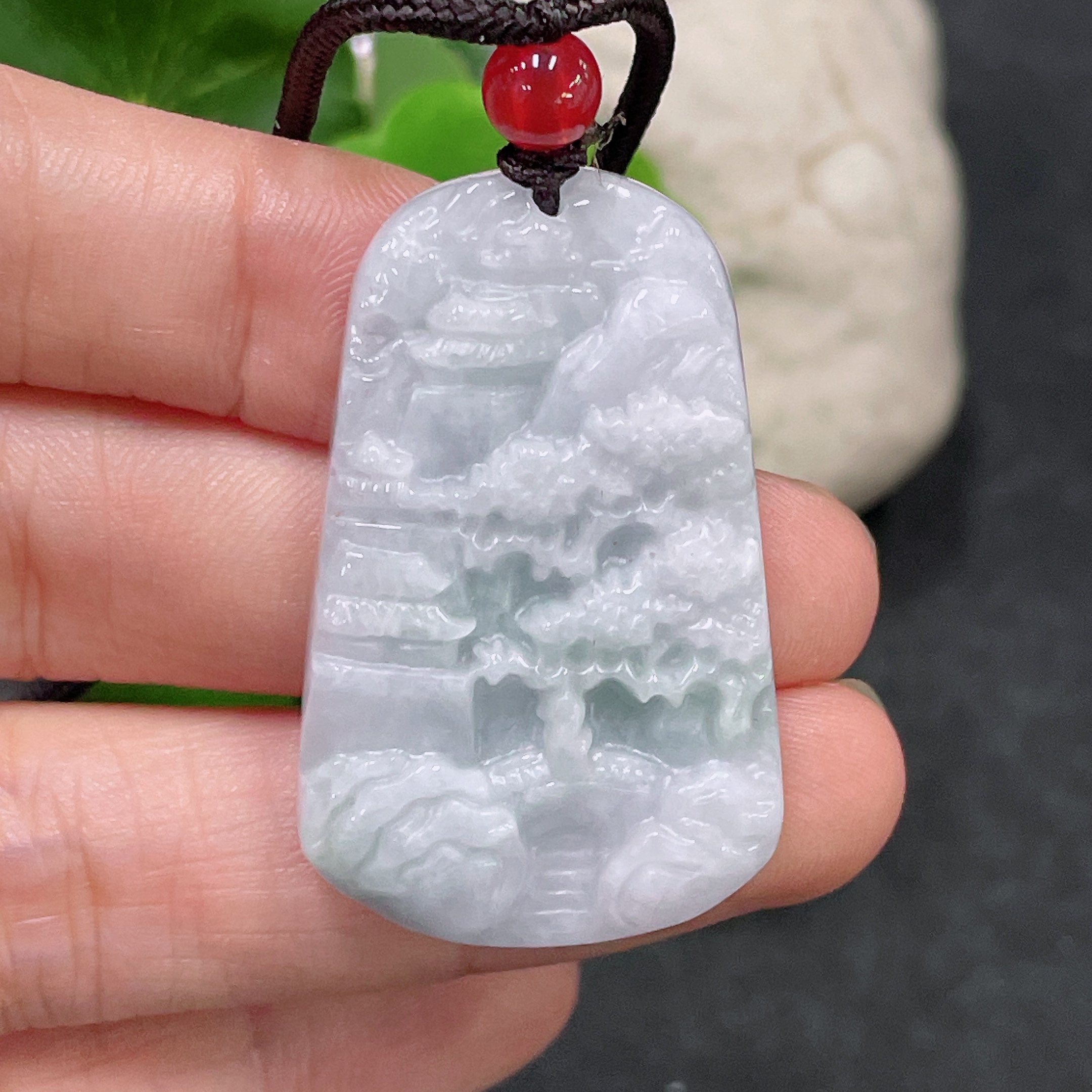 Jadeite Pendant Landscape with Cord Total Weight Approx. 17.4g