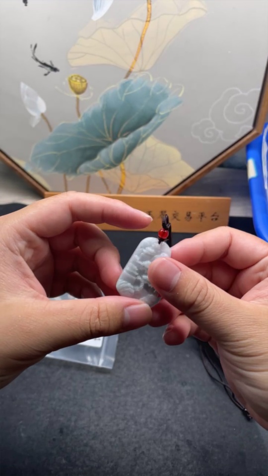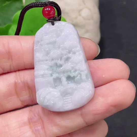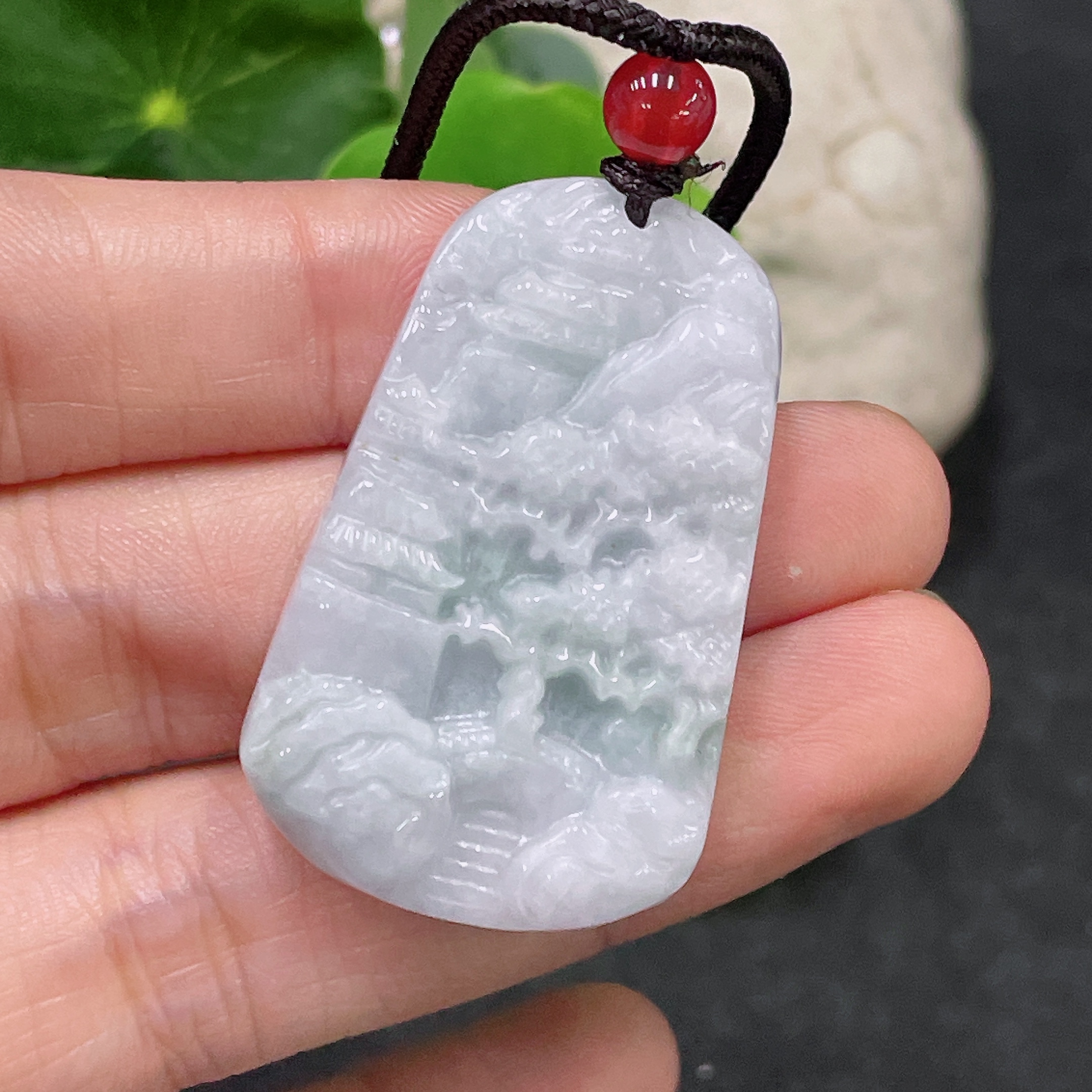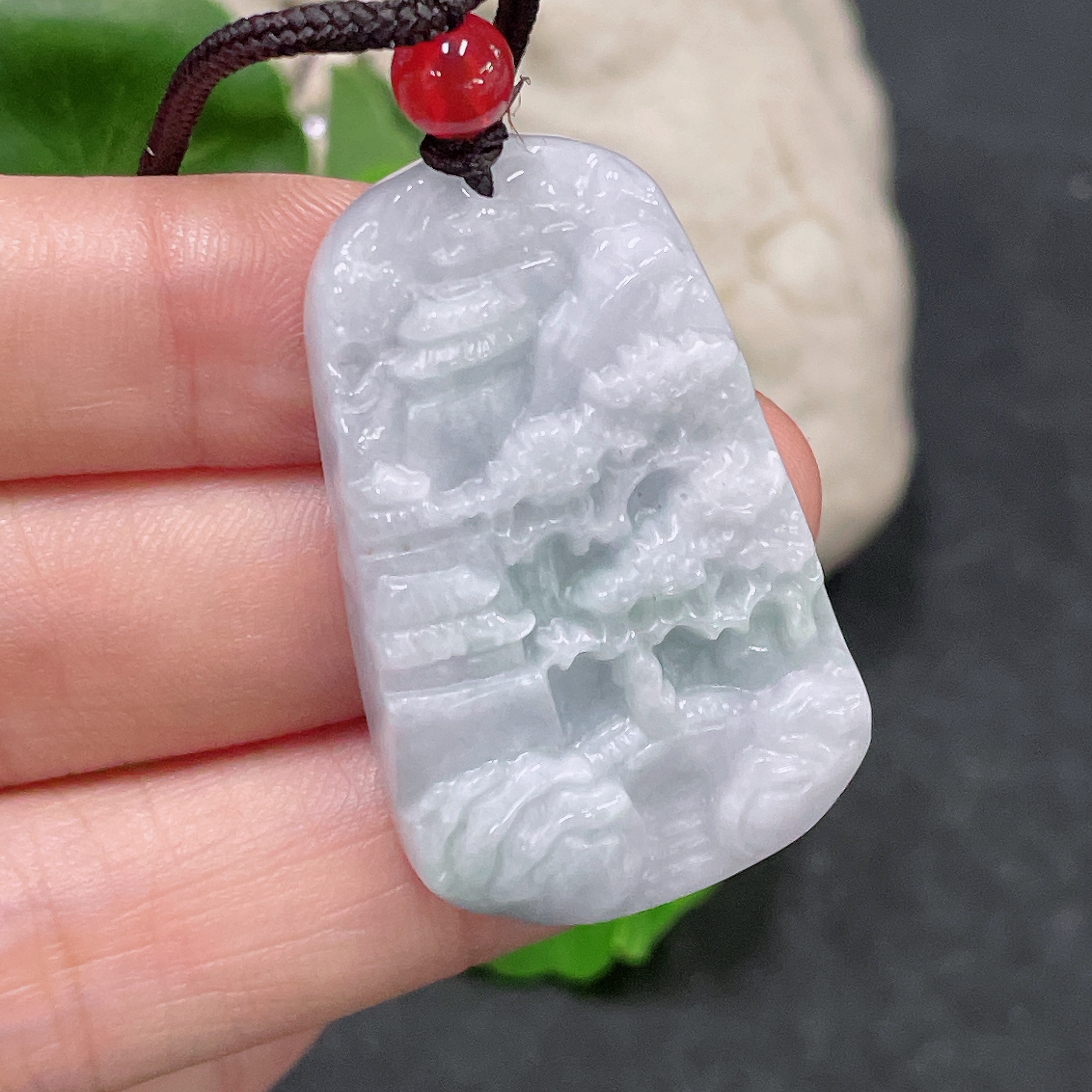 Jadeite Pendant Landscape with Cord Total Weight Approx. 17.4g