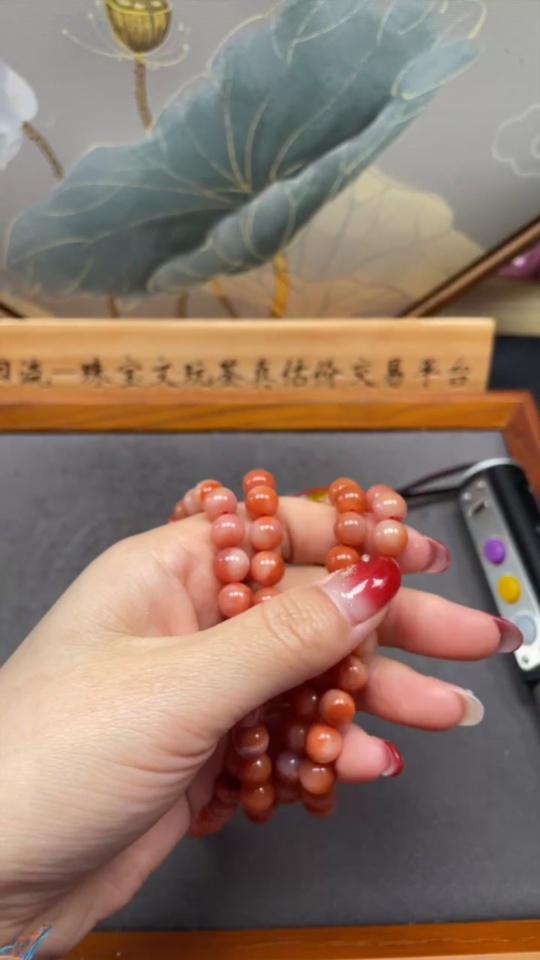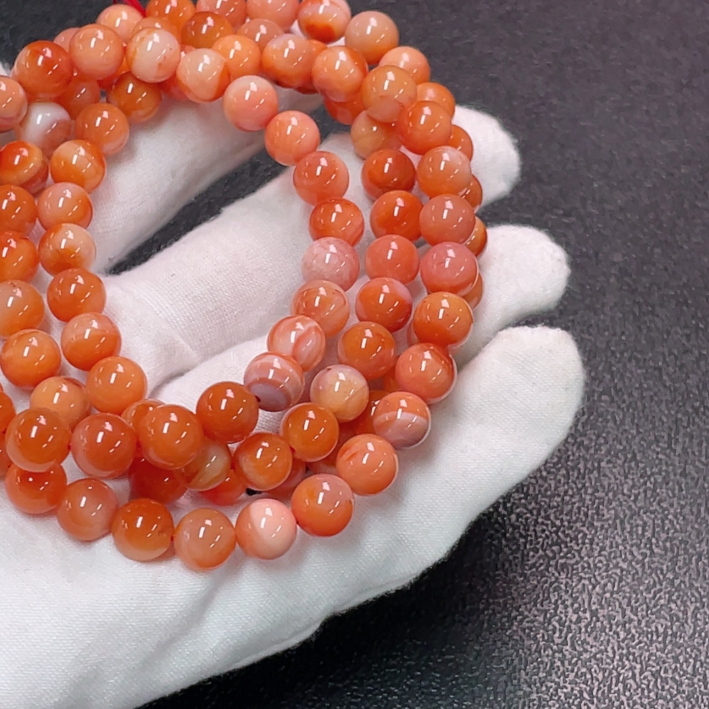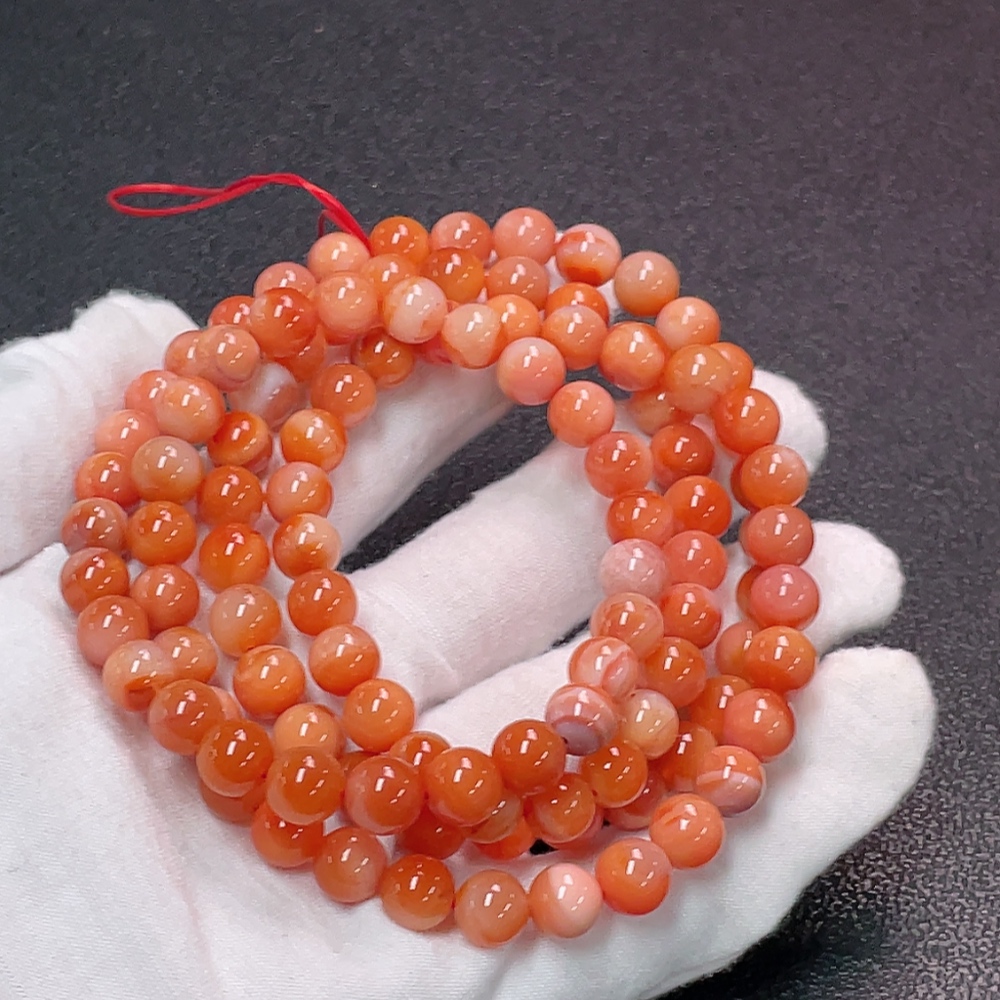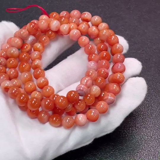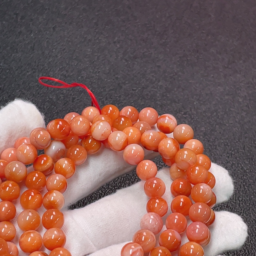 Red Agate Bead Strand with Visible Organic Matter, Total Weight Approx. 79.4g, Size ca. 8.2mm