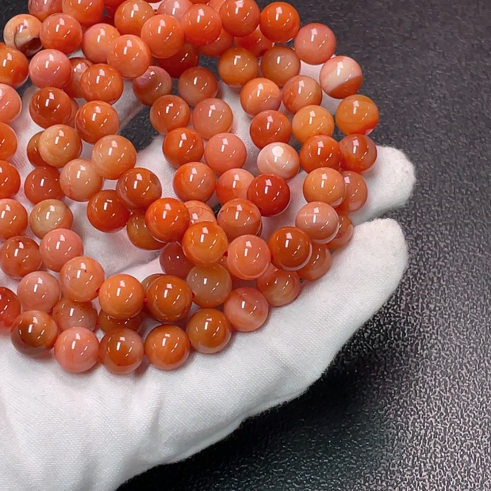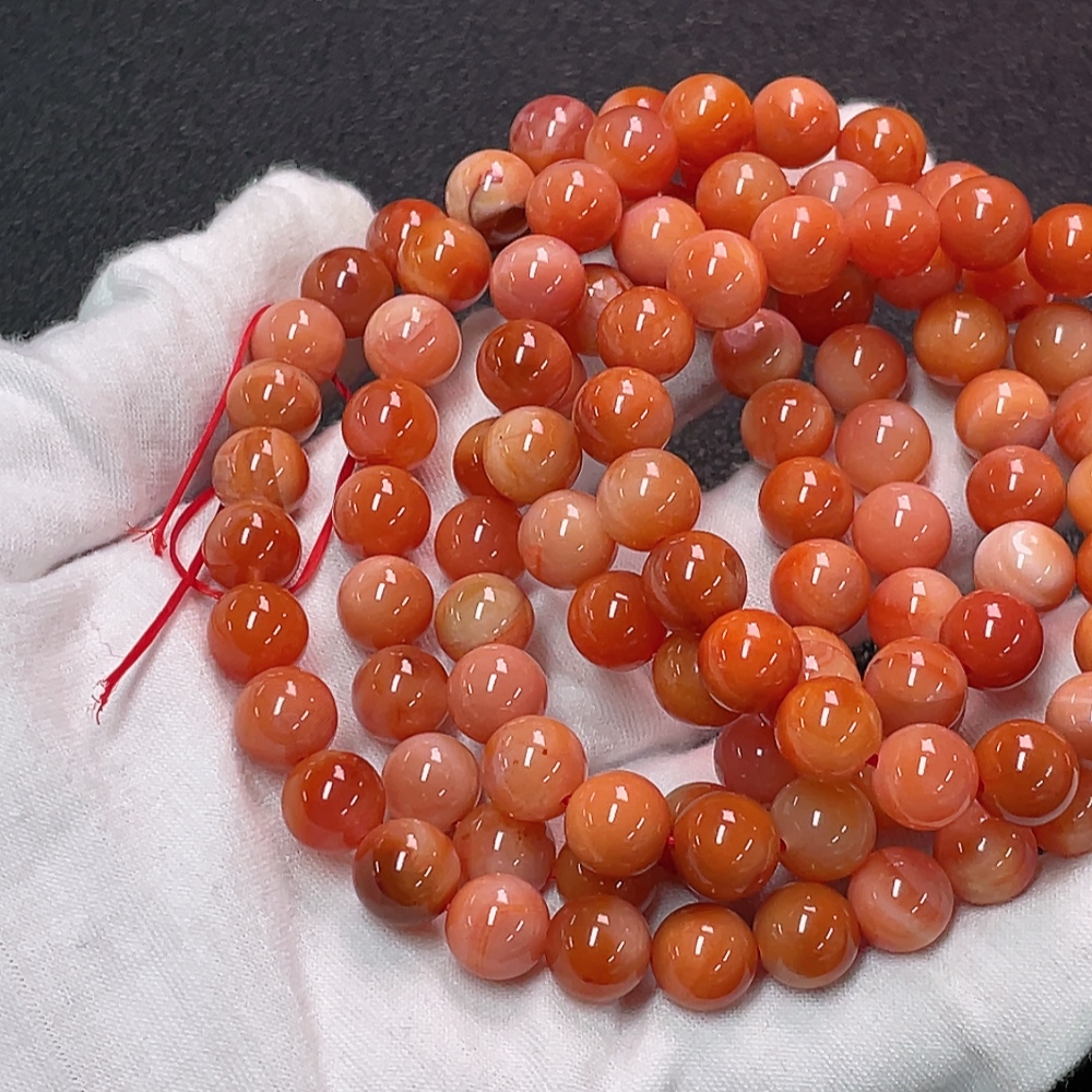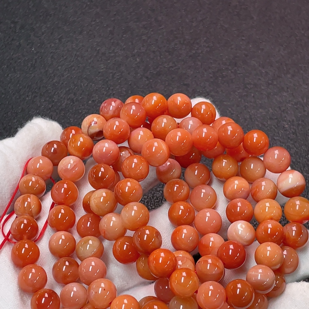 South Red Agate Bead Strand with Visible Organic Matter, Total Weight Approx. 110.82g, Size Approx. 8.9mm