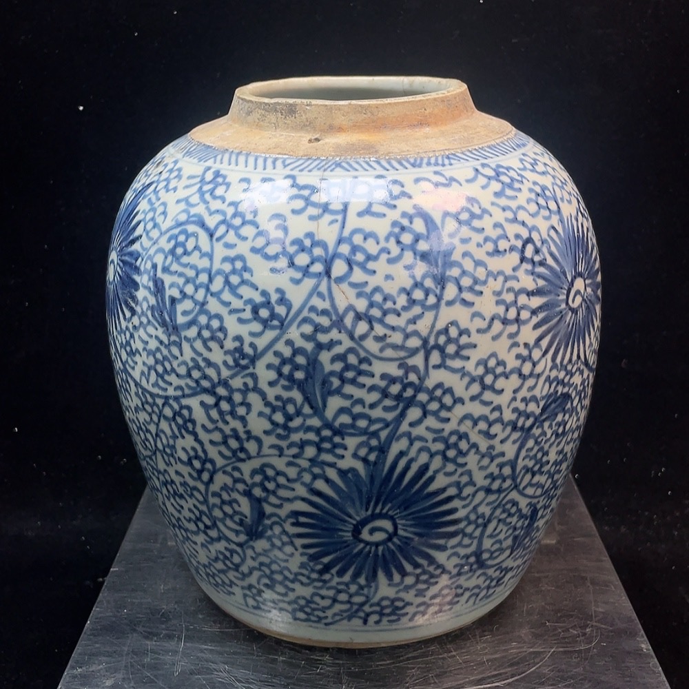 Ceramic Blue and White Jar from the Late Qing Dynasty