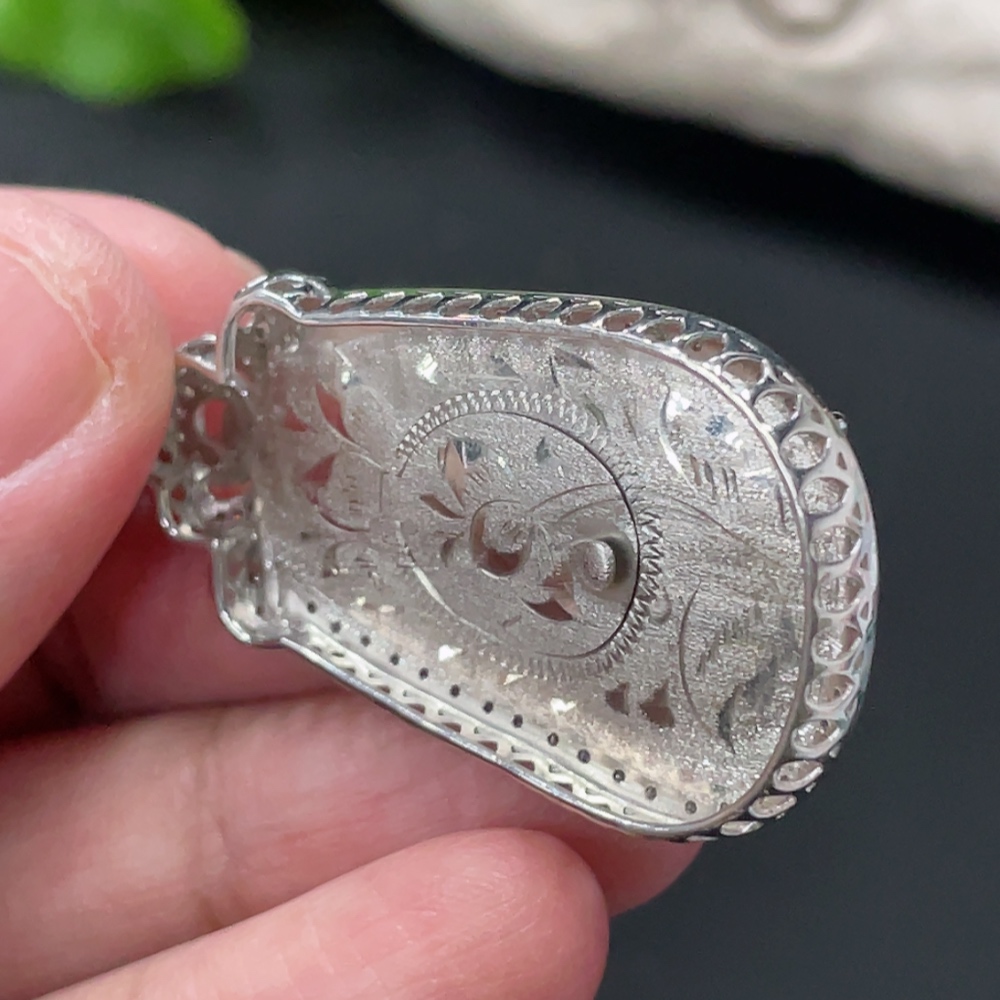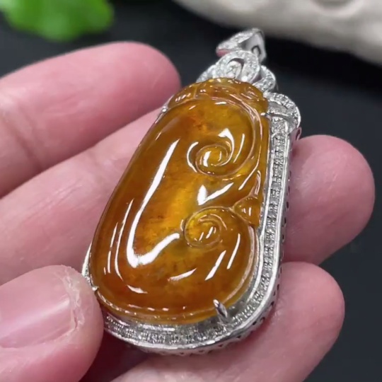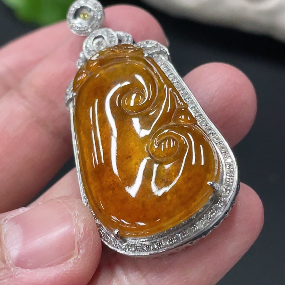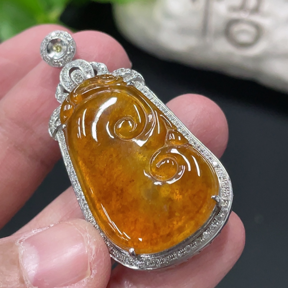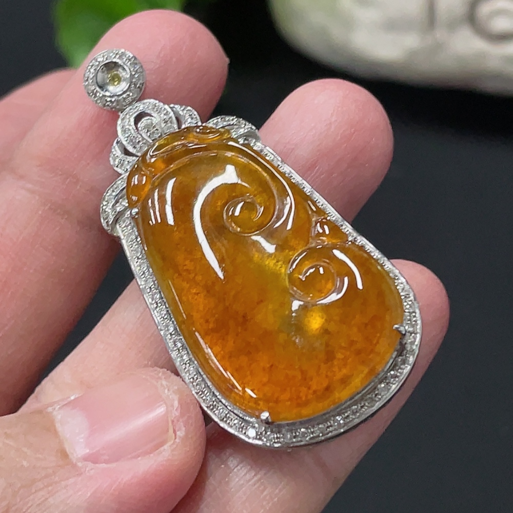 Jadeite Ruyi Inlaid Pendant, 18K Gold Setting with Diamond Accents, Total Weight Approx. 8.8g