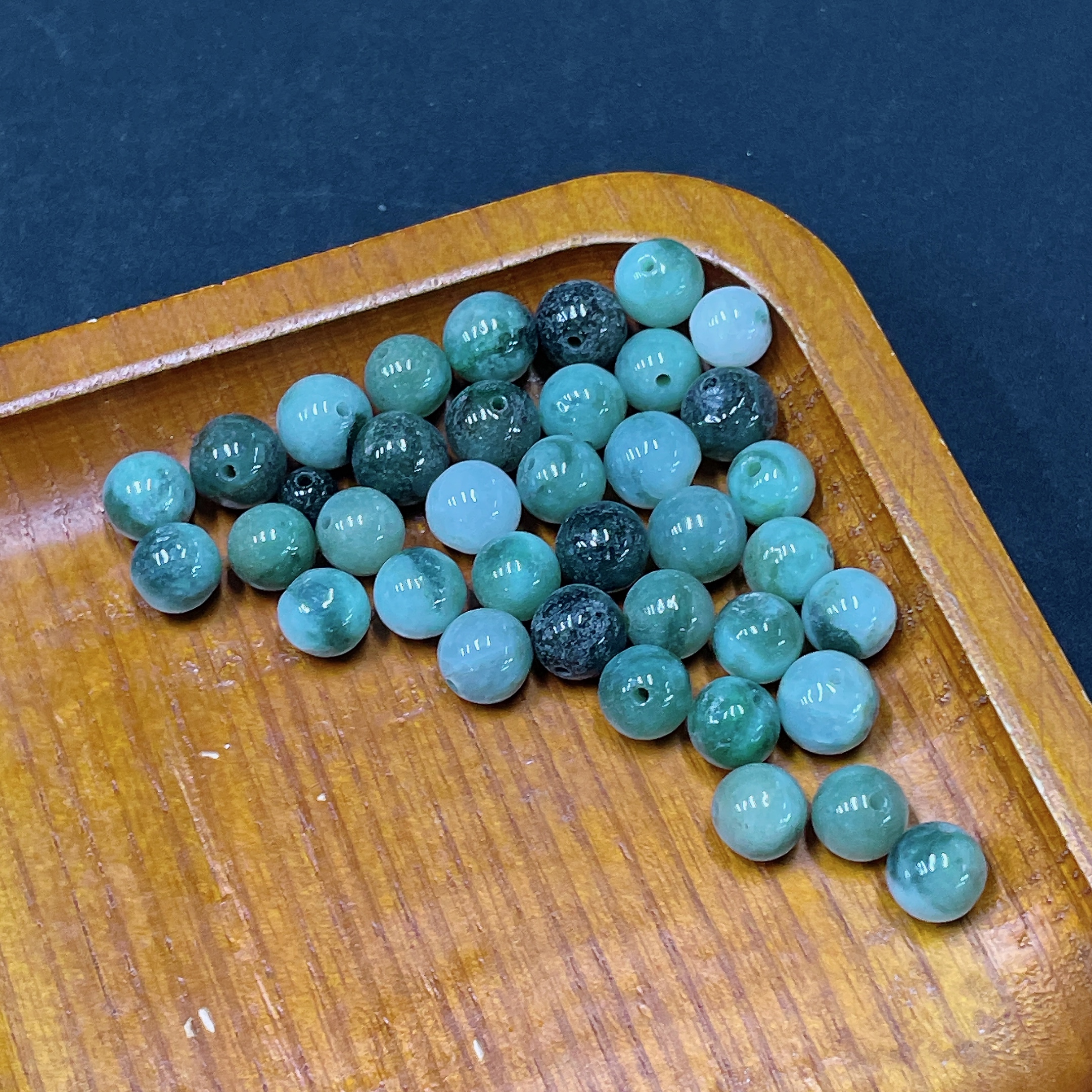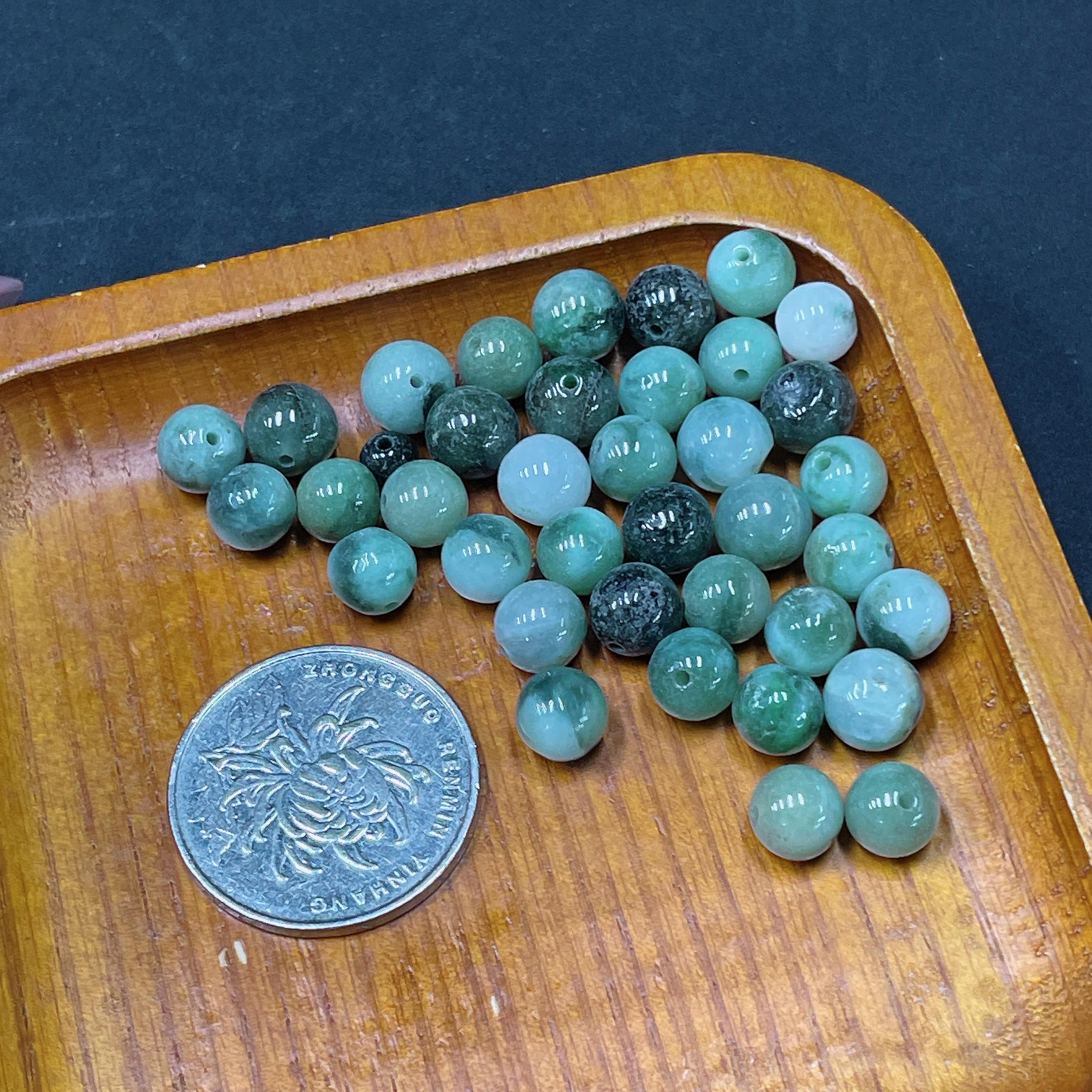Jadeite Round Beads 30+ Total Weight Approx. 30.63g (Including Bag Weight) Containing Other Mineral Components