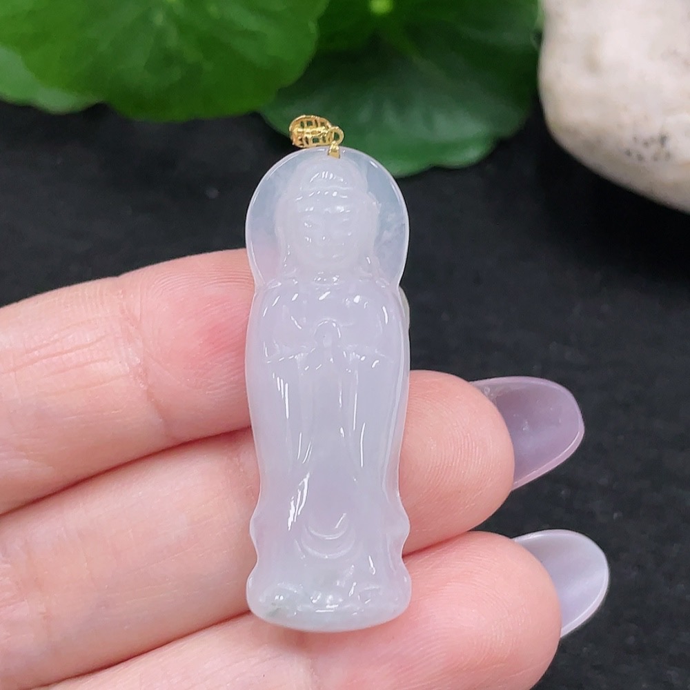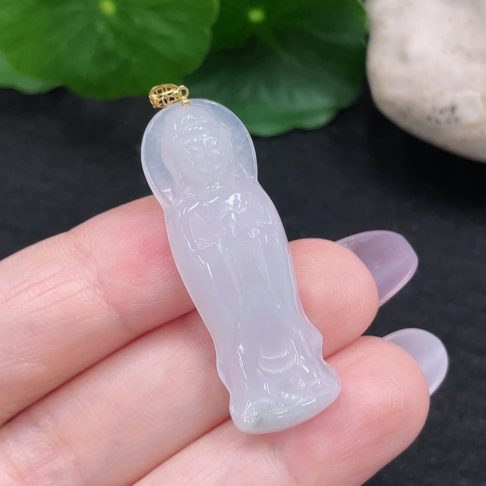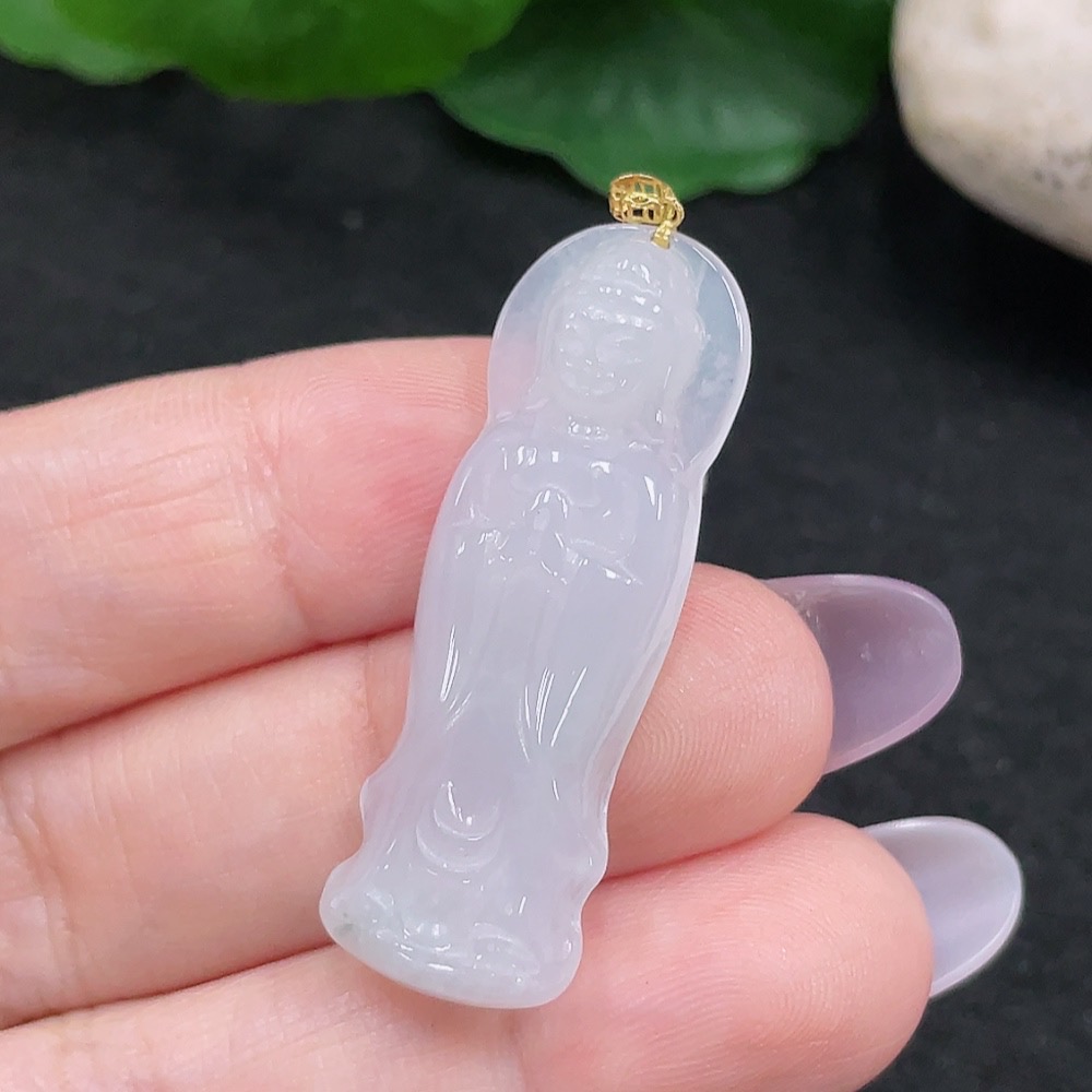 Jadeite Guanyin Pendant 18K Gold Total Weight Approx. 4.6g
