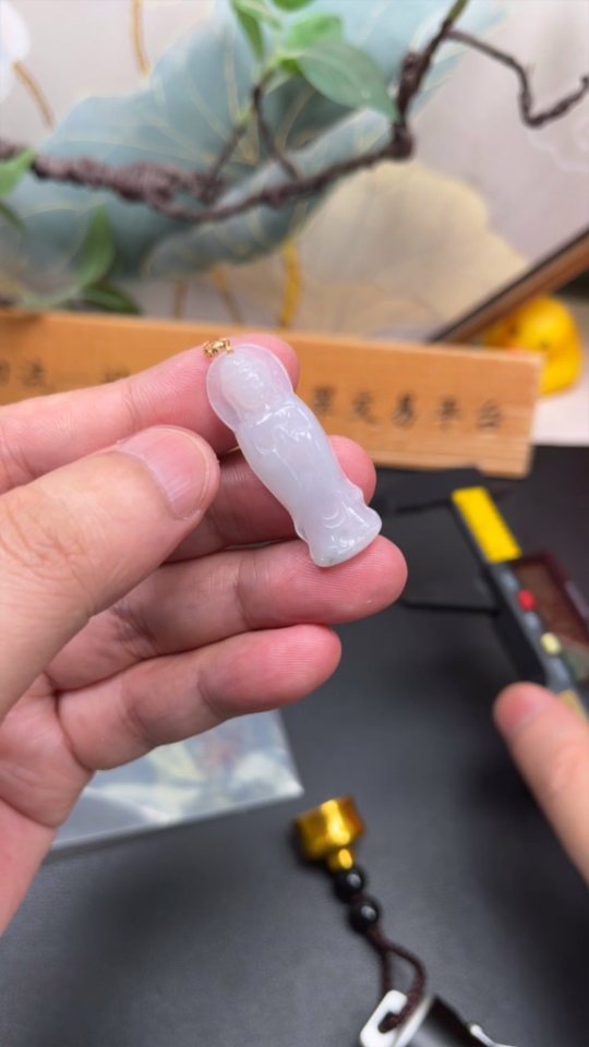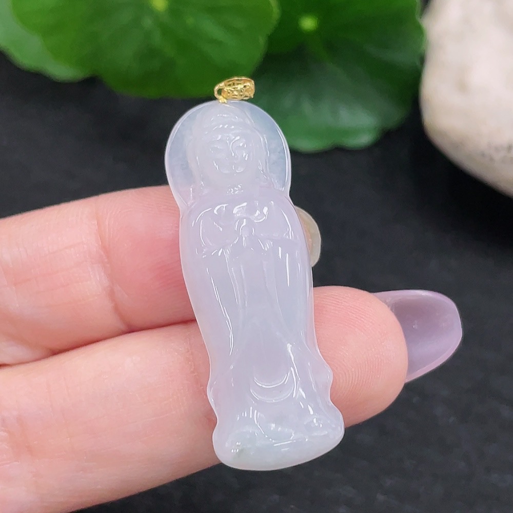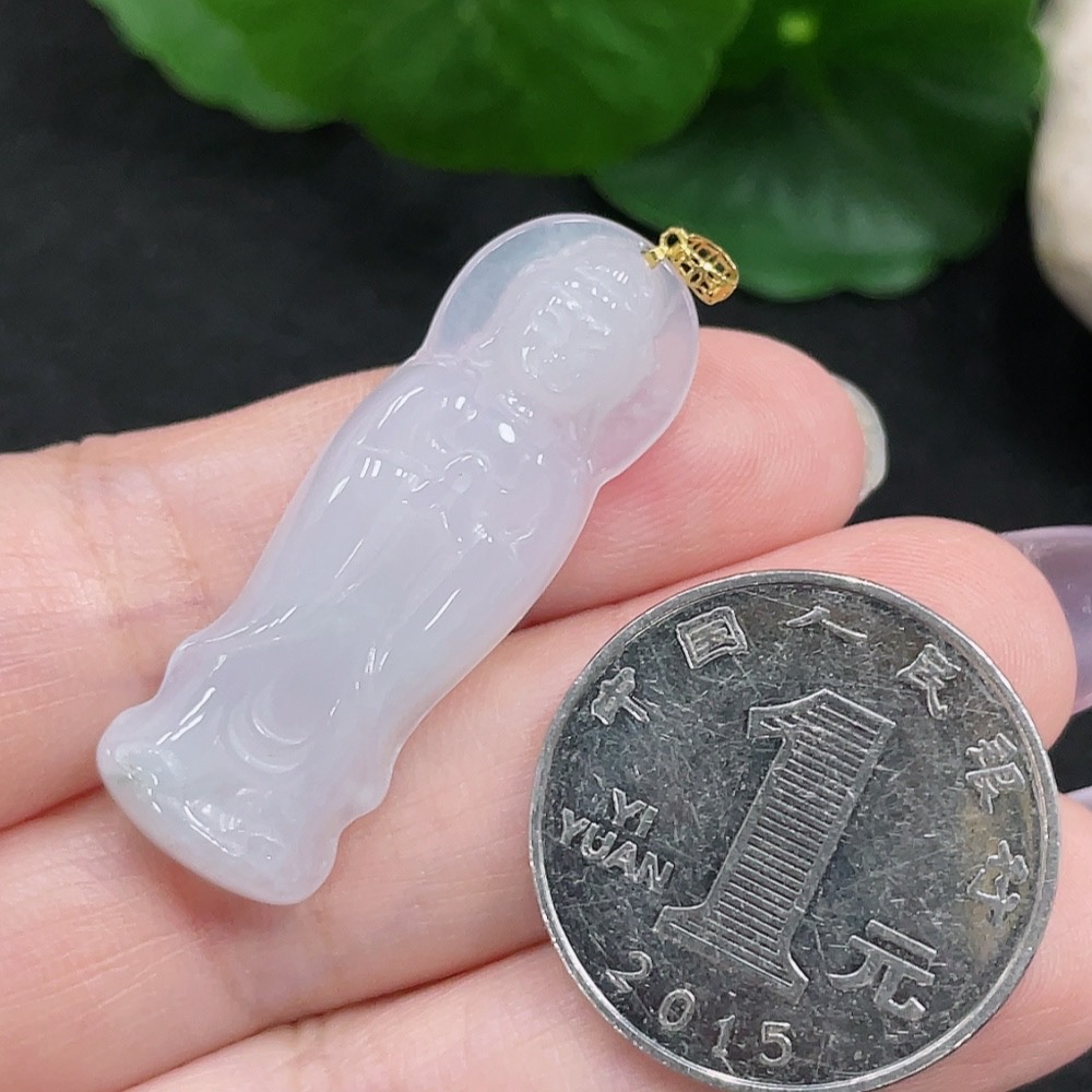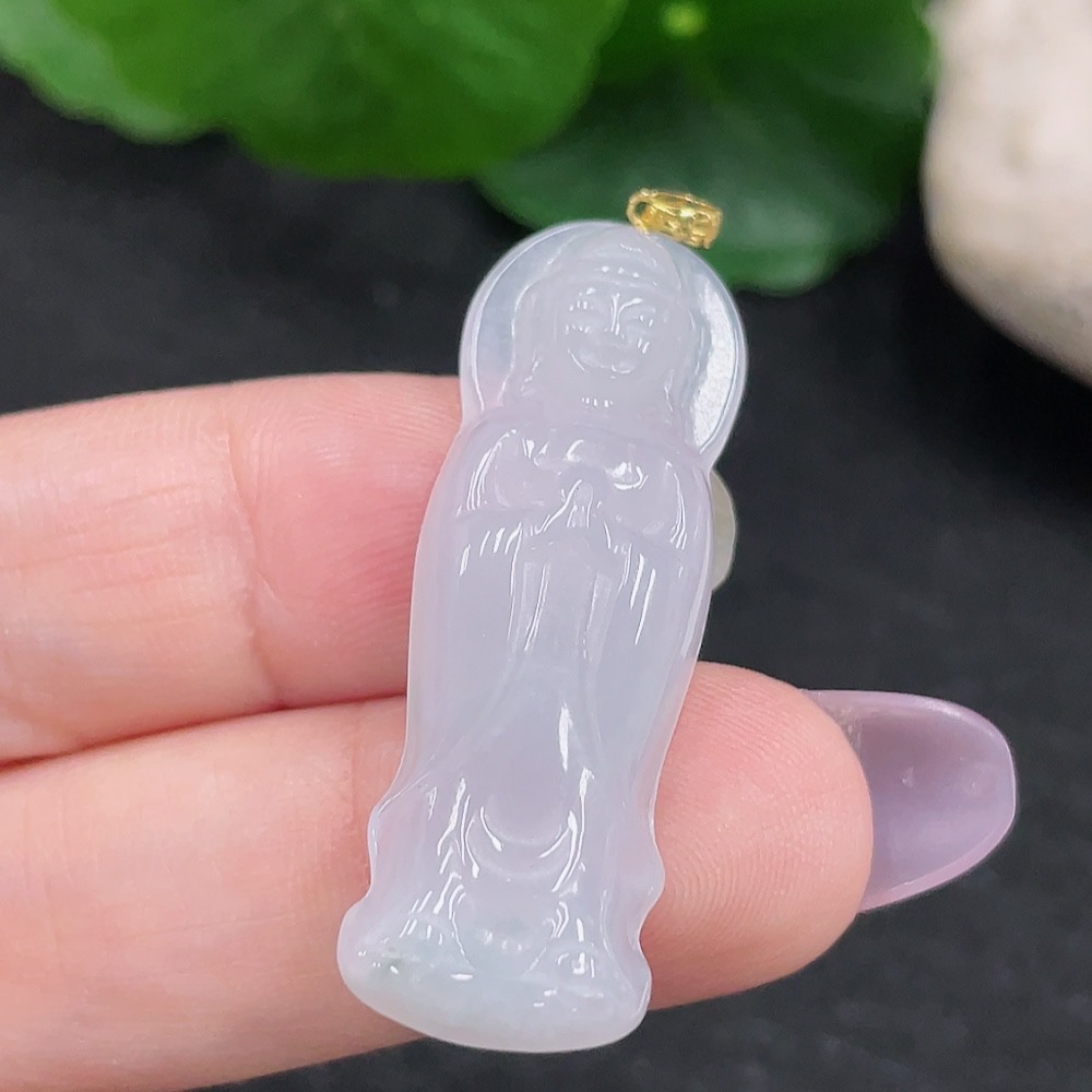 Jadeite Guanyin Pendant 18K Gold Total Weight Approx. 4.6g