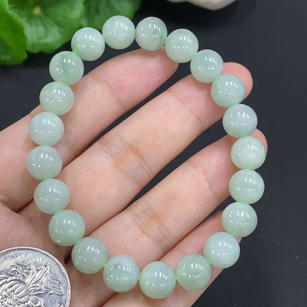 Jadeite Bead Necklace Approx. 9mm Total Weight Approx. 29.5g