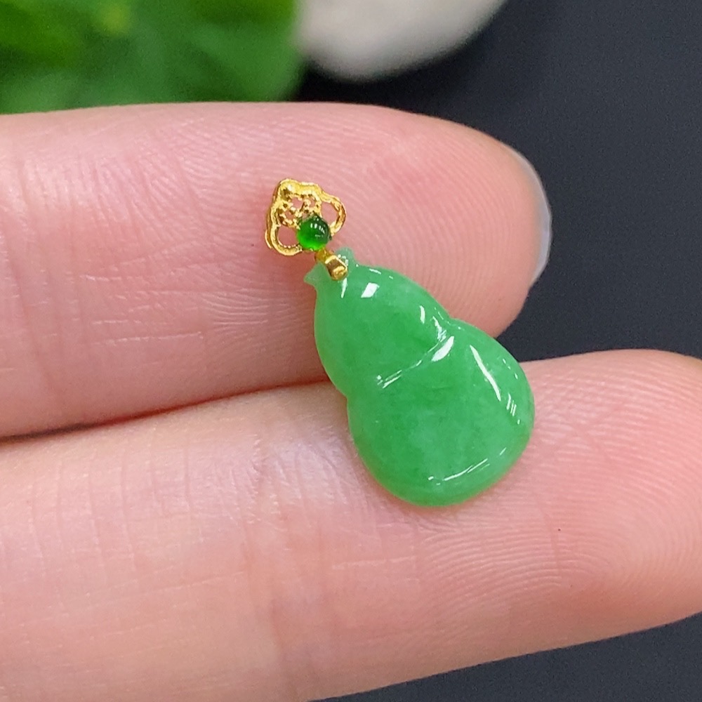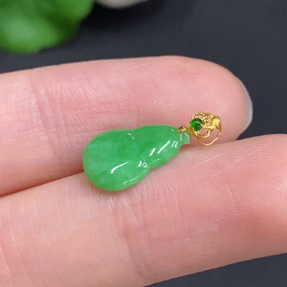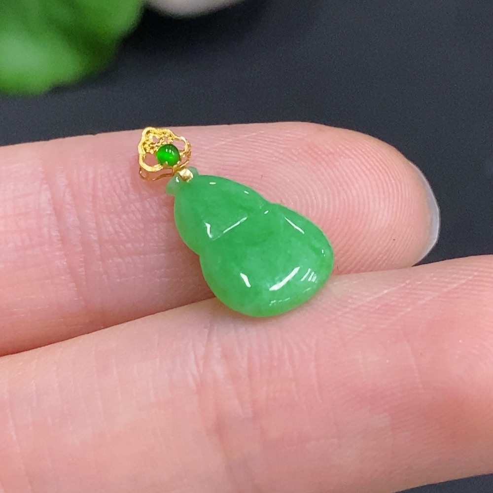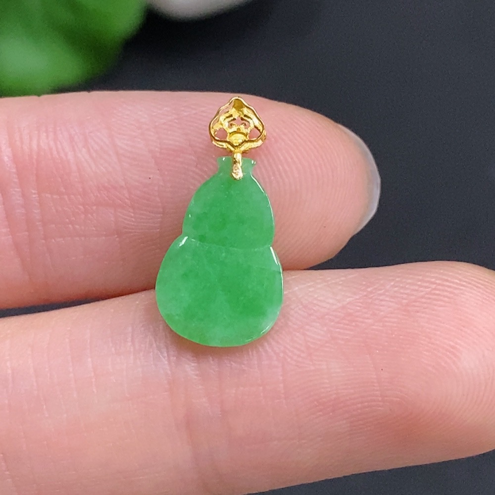 Jadeite Gourd Inlaid Pendant with 18k Gold Clasp, Total Weight Approximately 0.3g