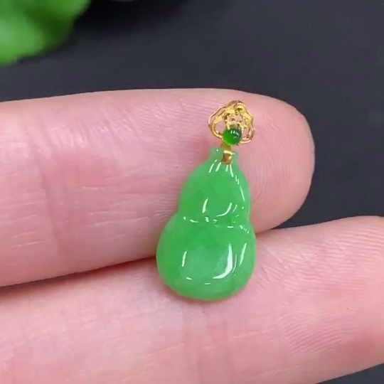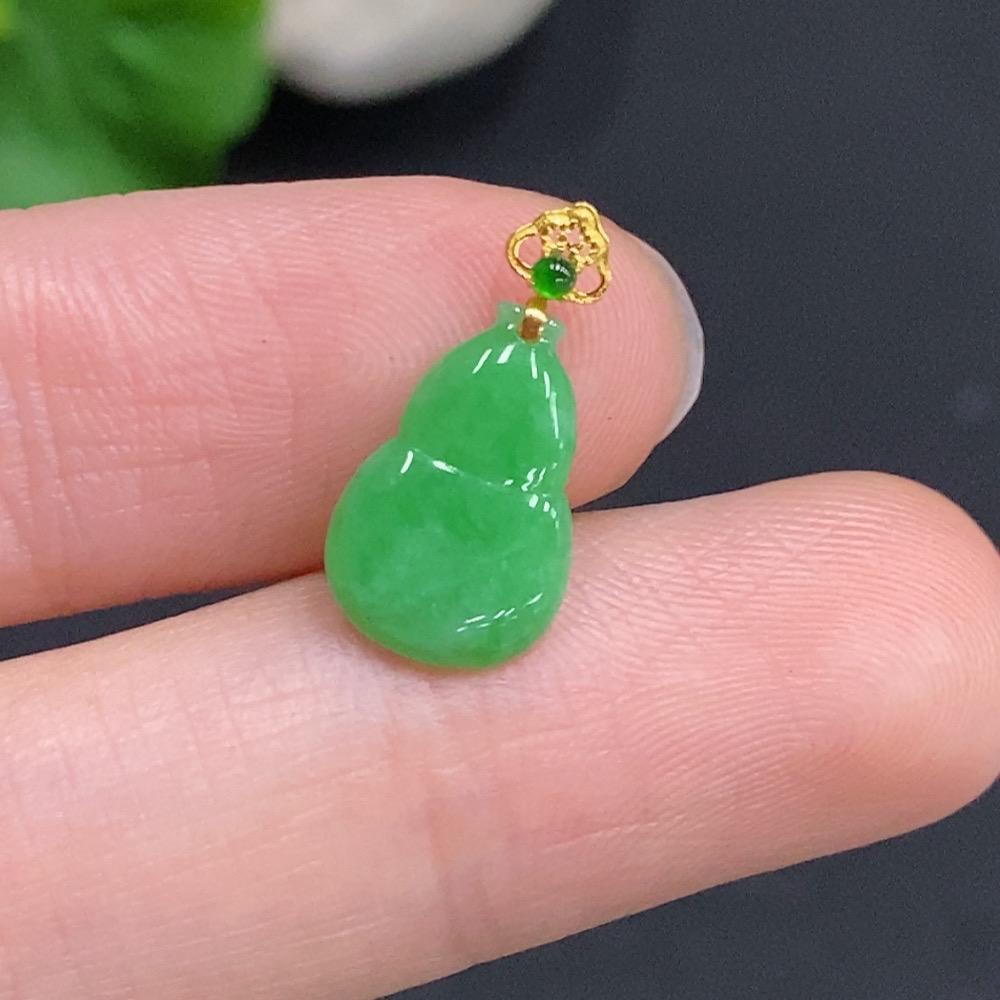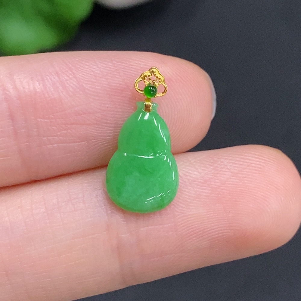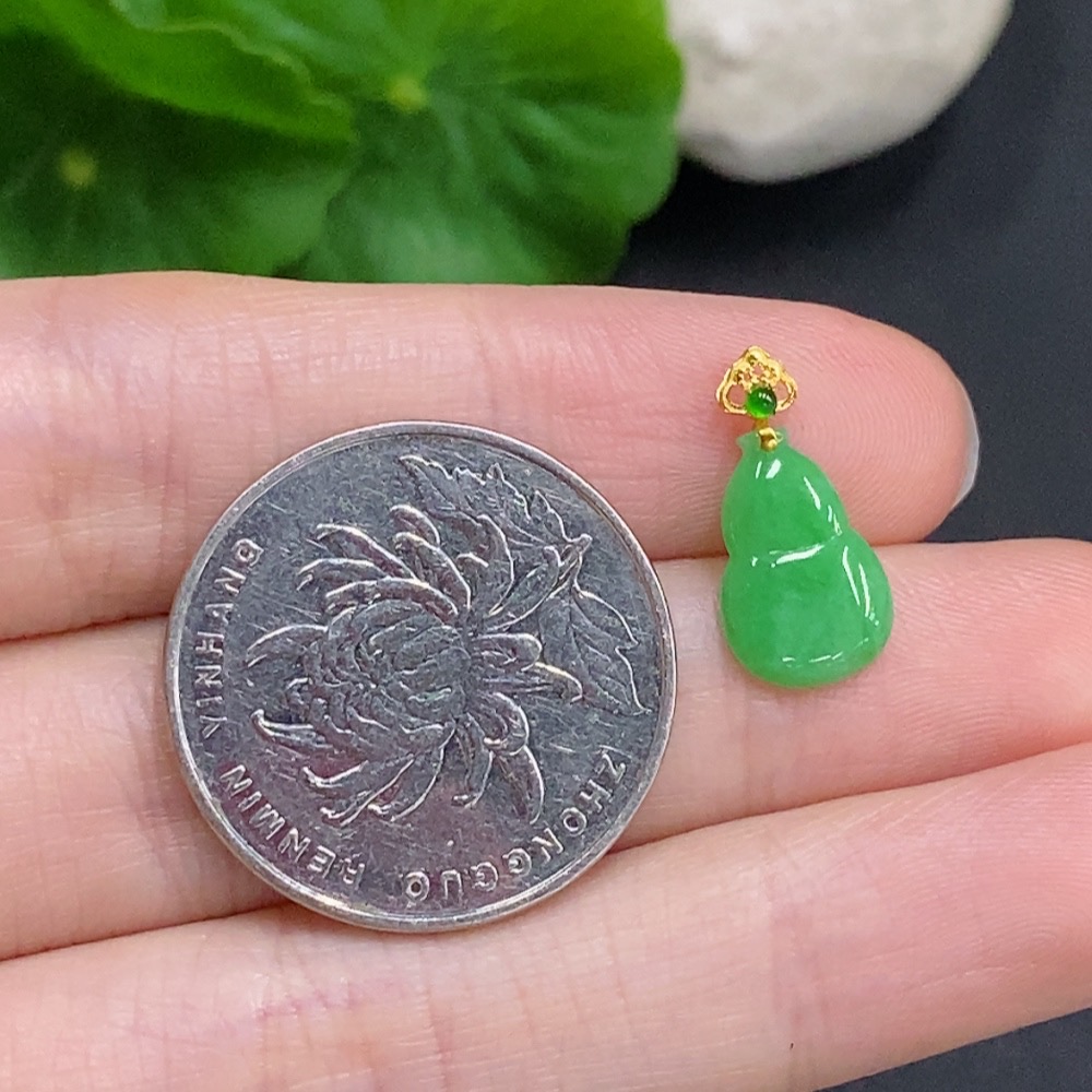 Jadeite Gourd Inlaid Pendant with 18k Gold Clasp, Total Weight Approximately 0.3g