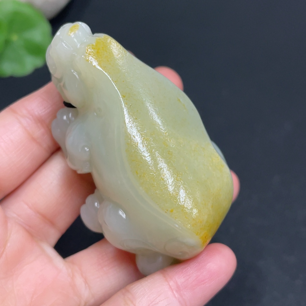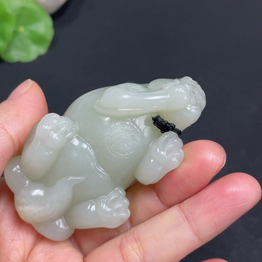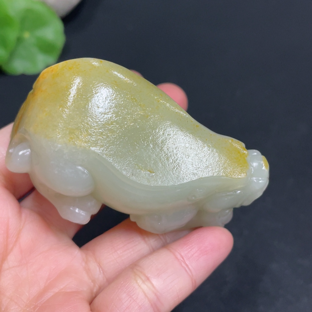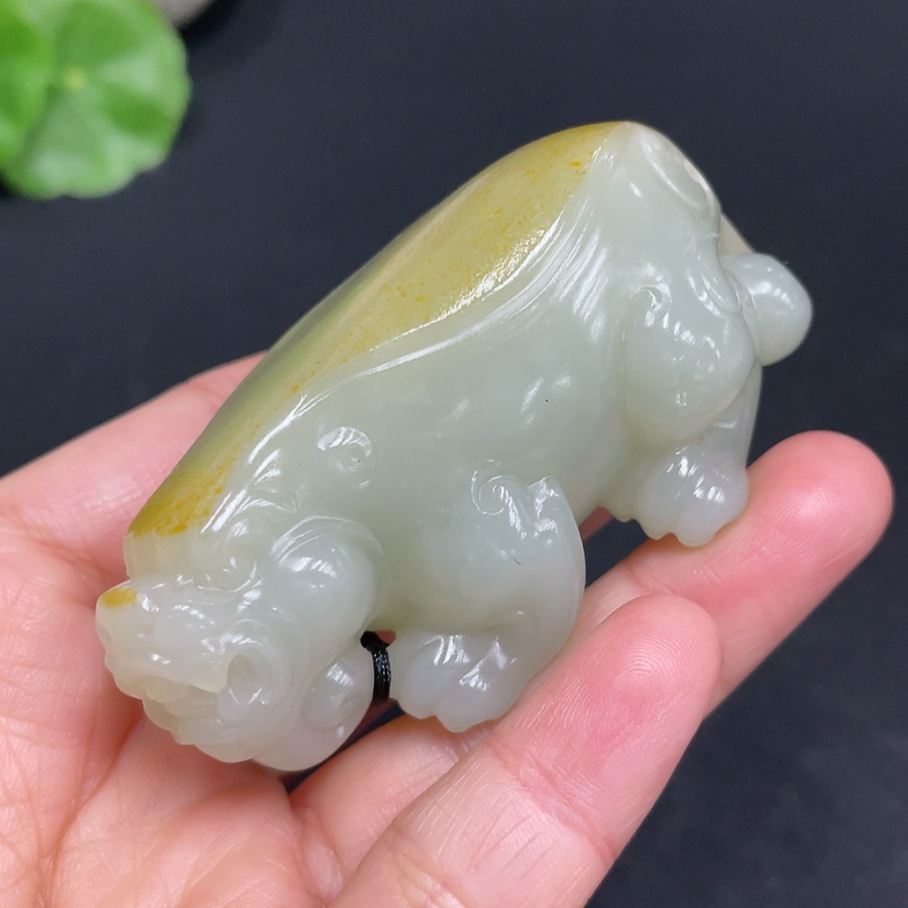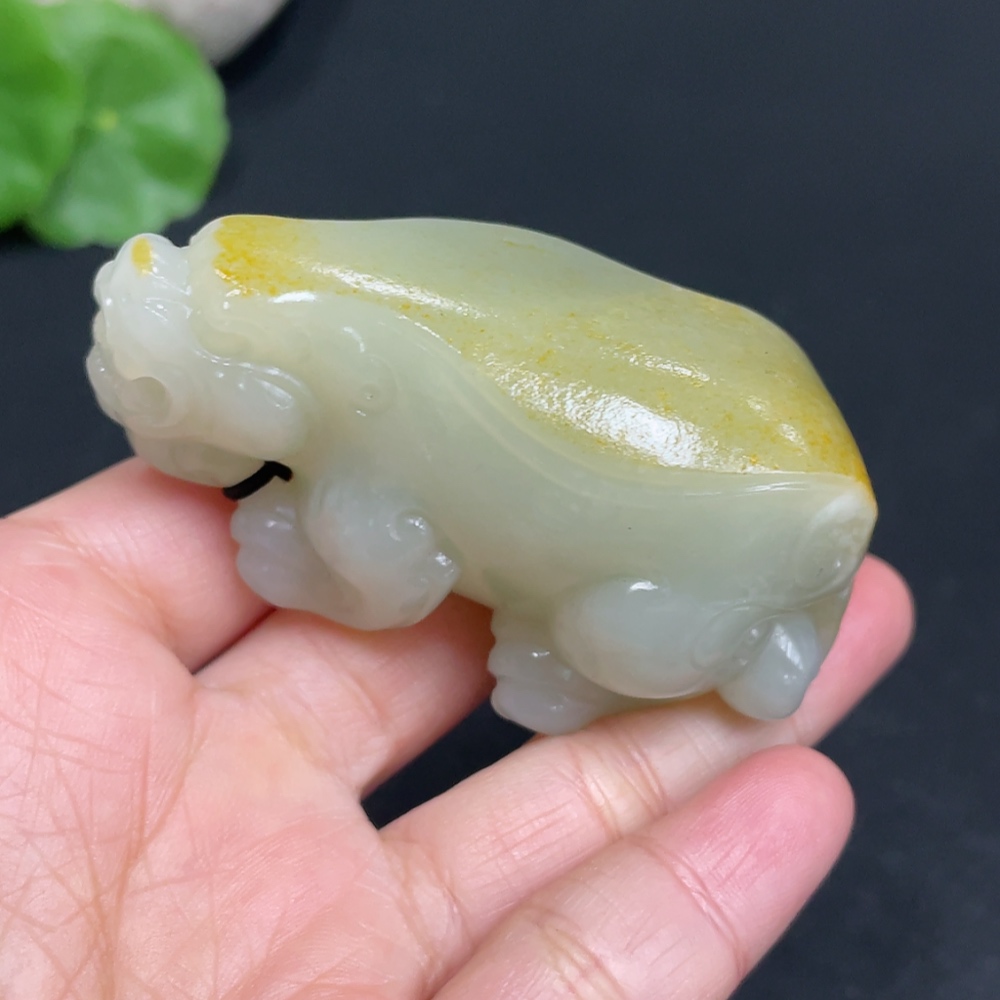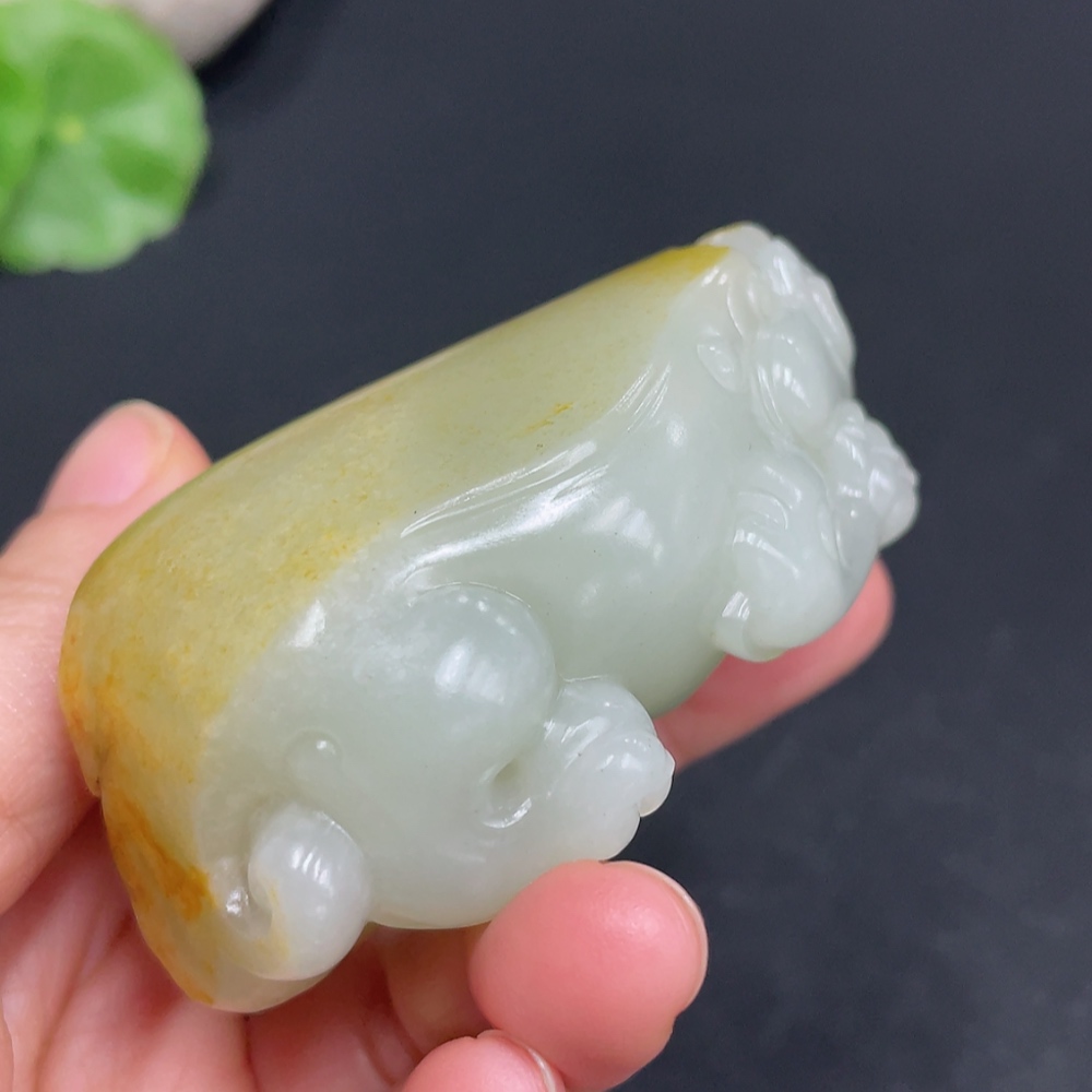 Hetian Jade Handheld Piece Auspicious Beast Total Weight Approx. 102.1g Undetermined Skin Color Origin