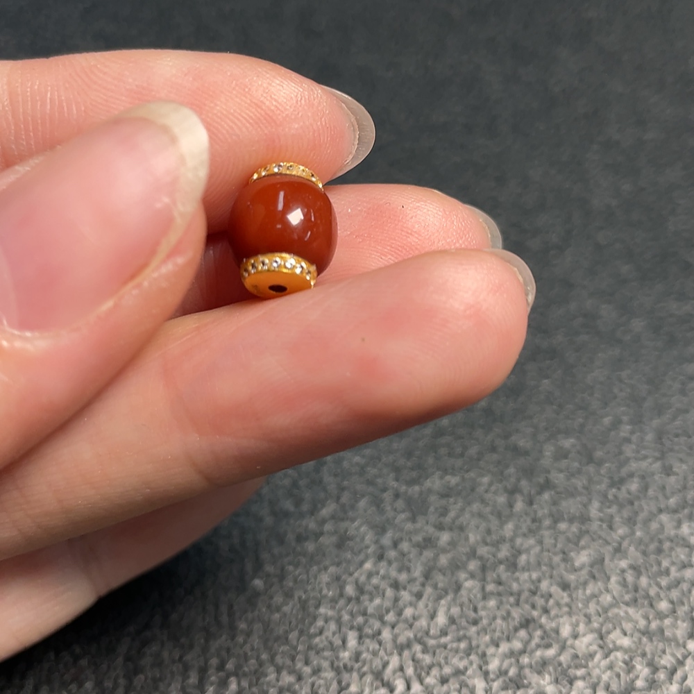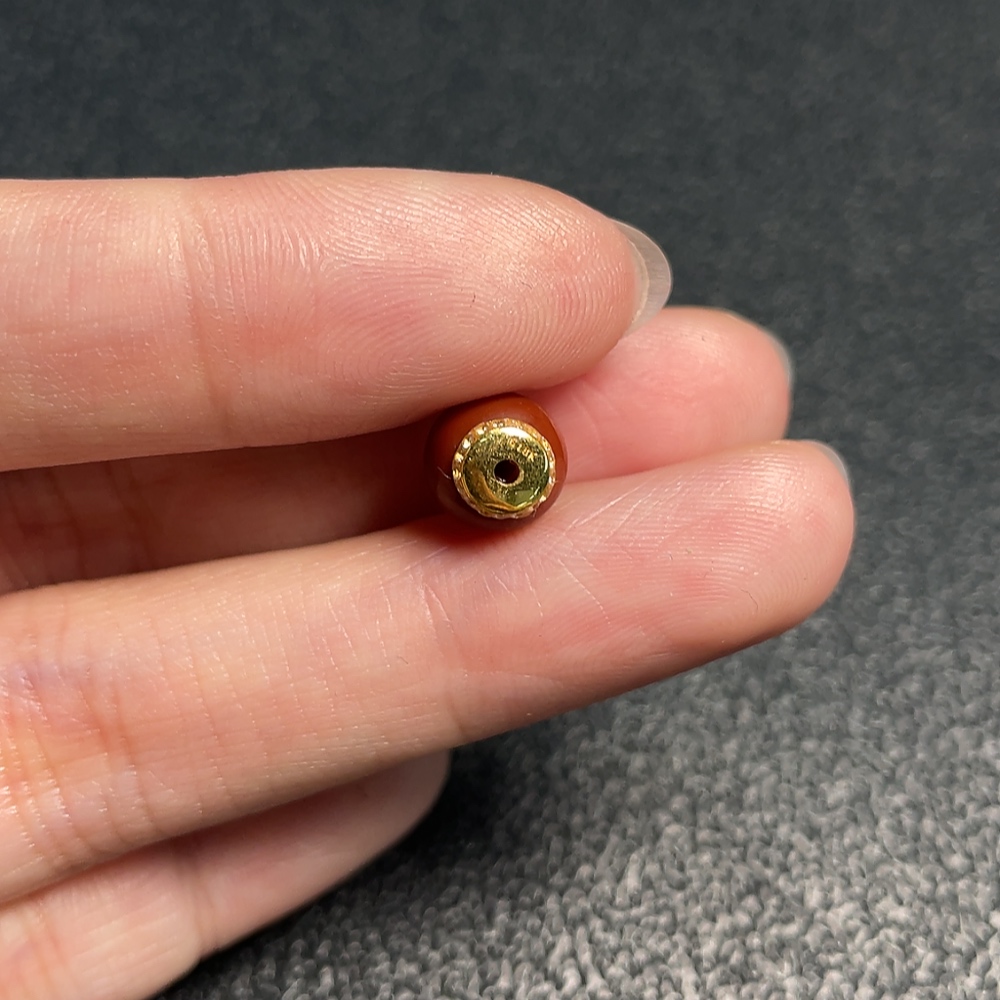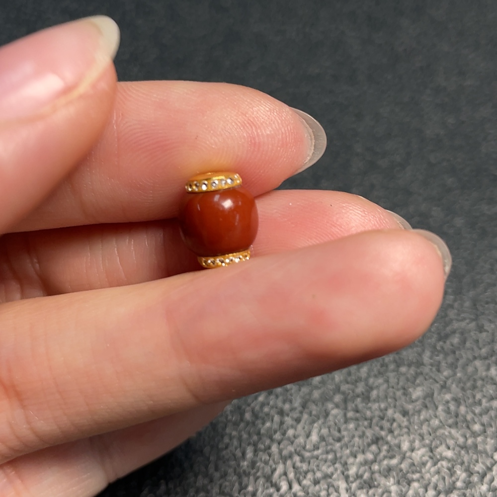Red Agate Pendant with 74% Au Content, Total Weight Approx. 0.99g, Size Around 8mm