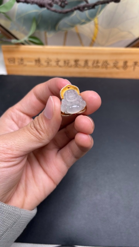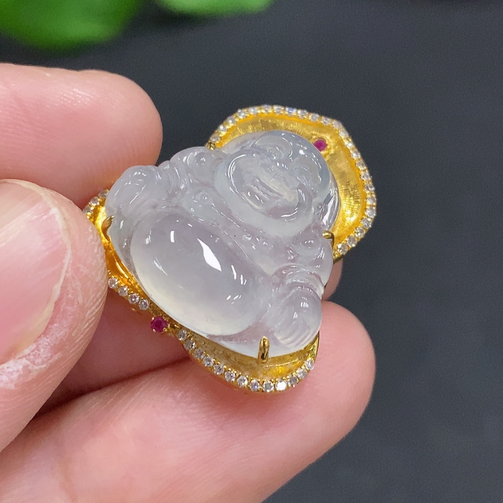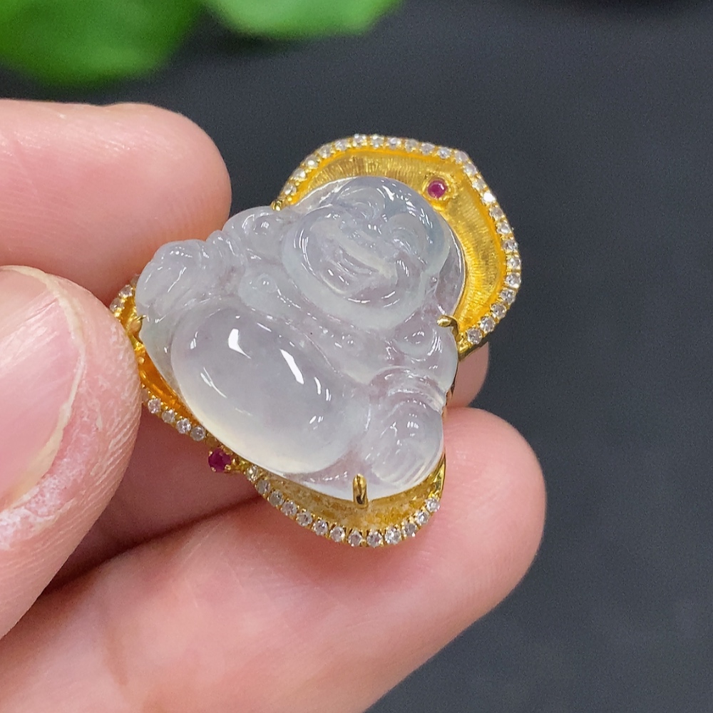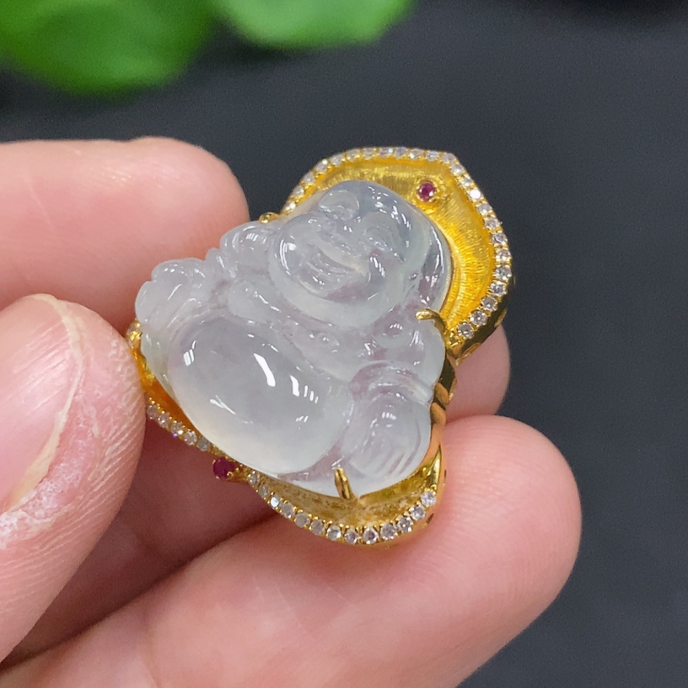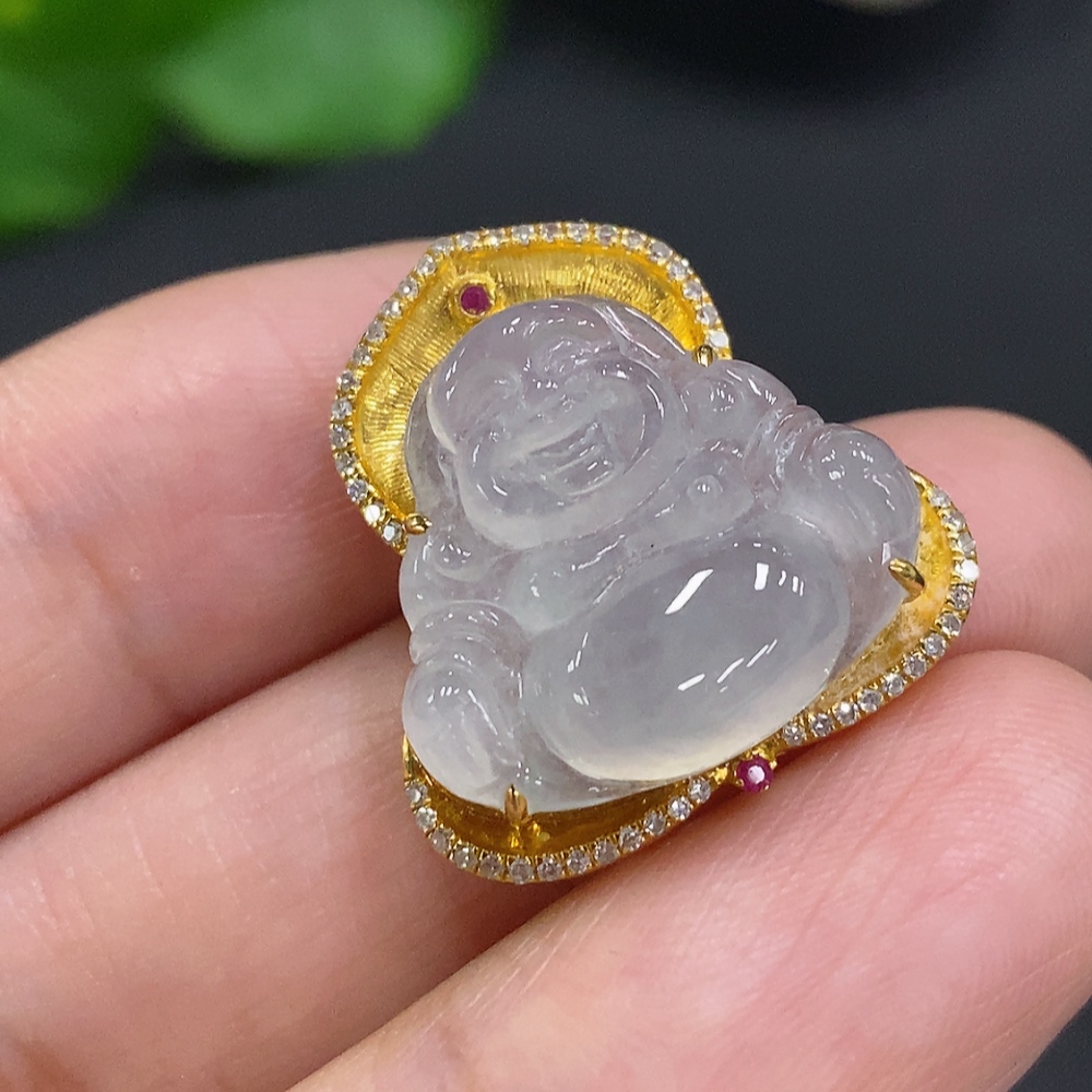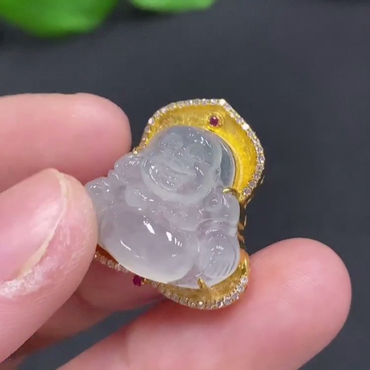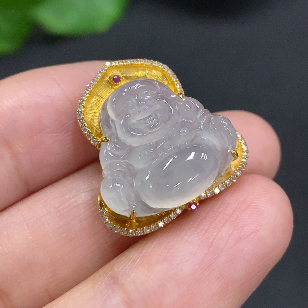 Jadeite Buddha Pendant Set in 18K Gold, Total Weight Approx. 3.8g (Colorless Accent Stones Are Diamonds)