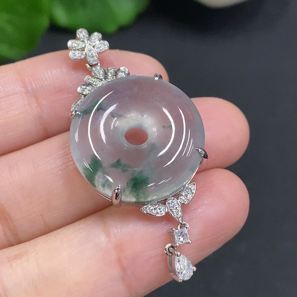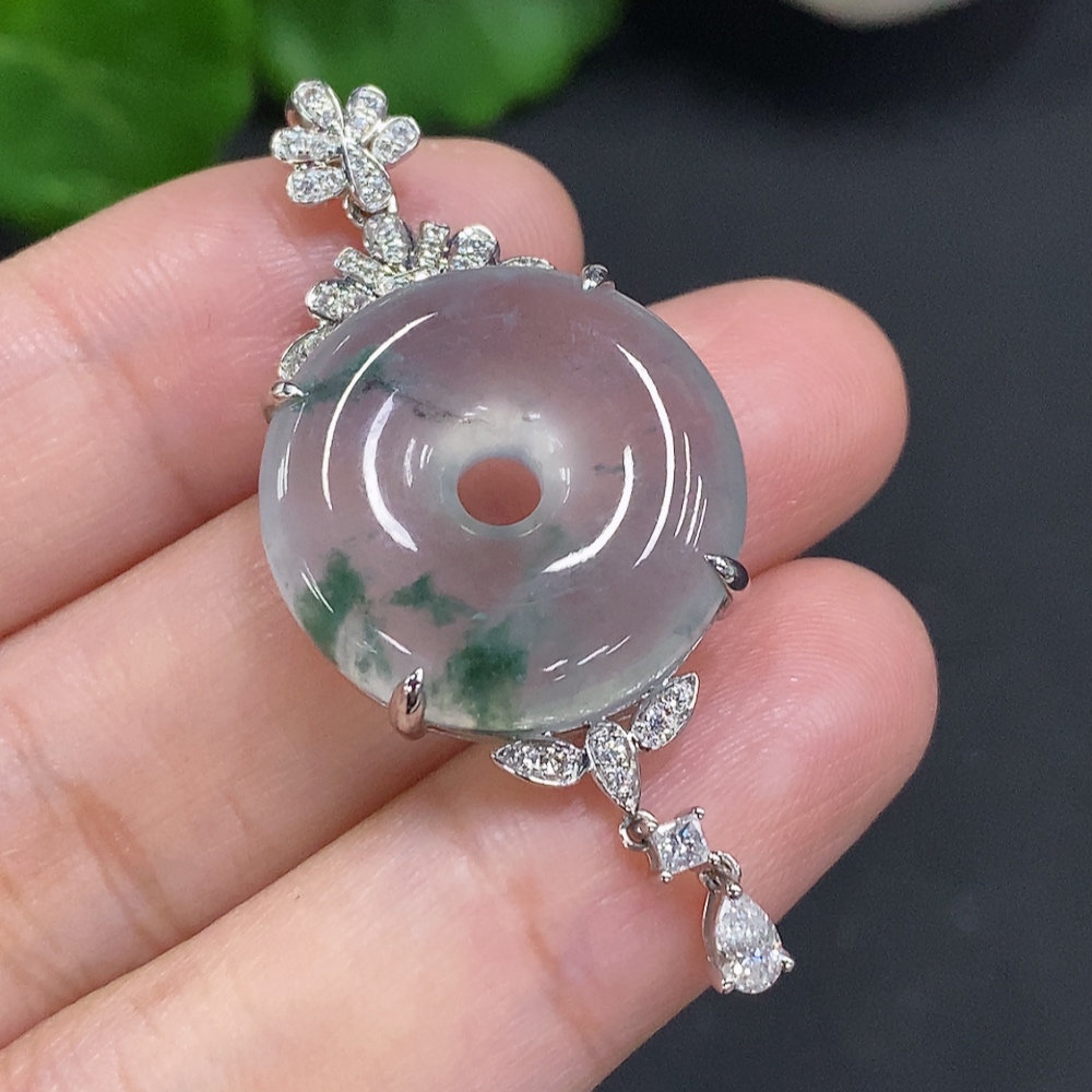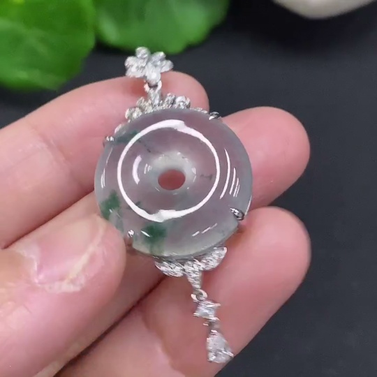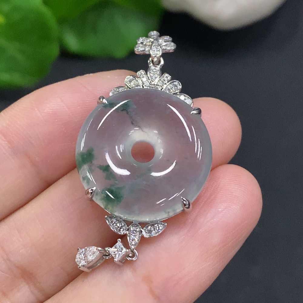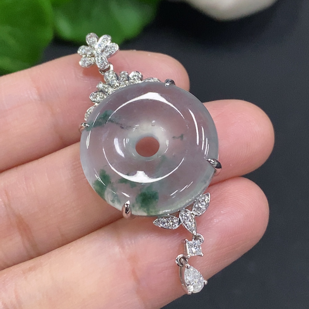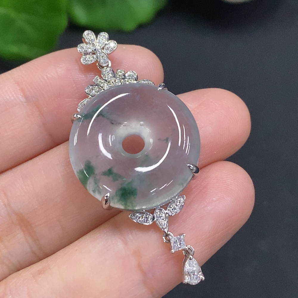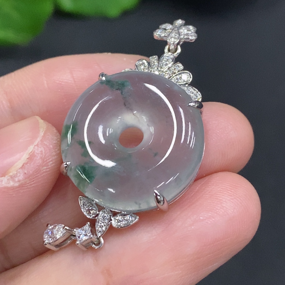 Jadeite Pendant with 18K Gold Setting, Total Weight Approx. 8.3g (Diamond Accents)