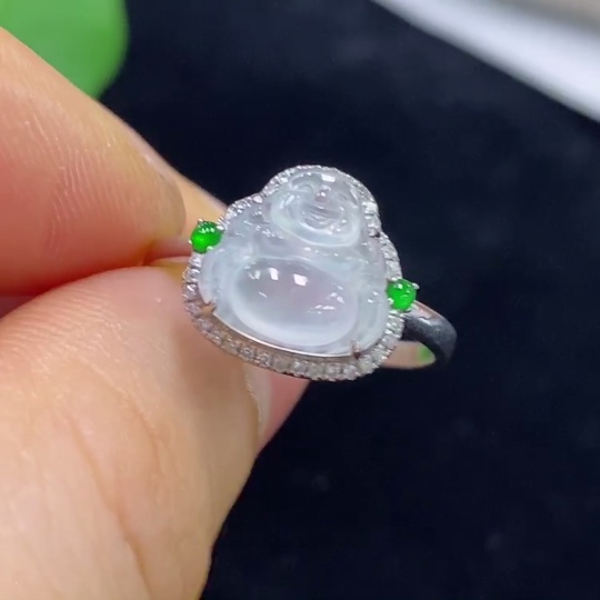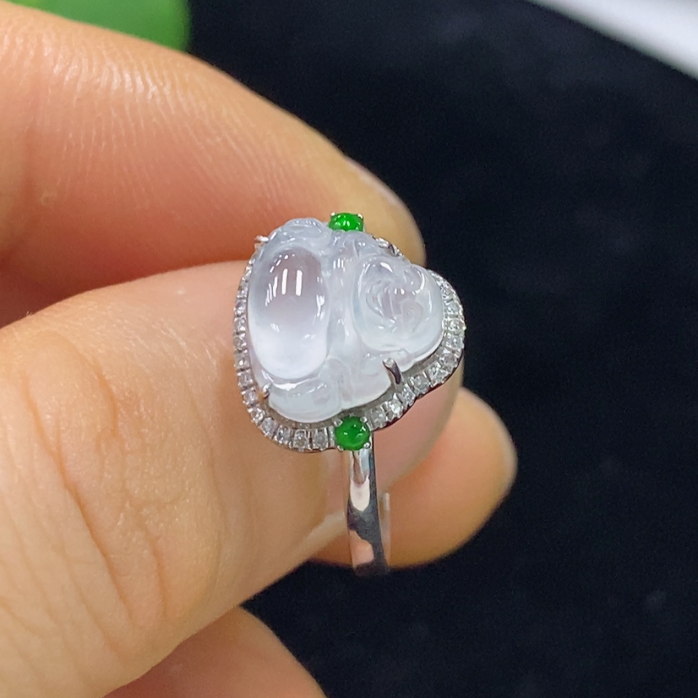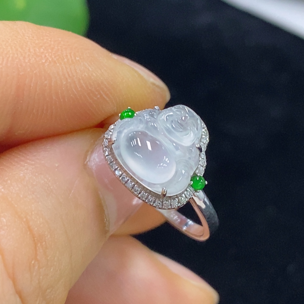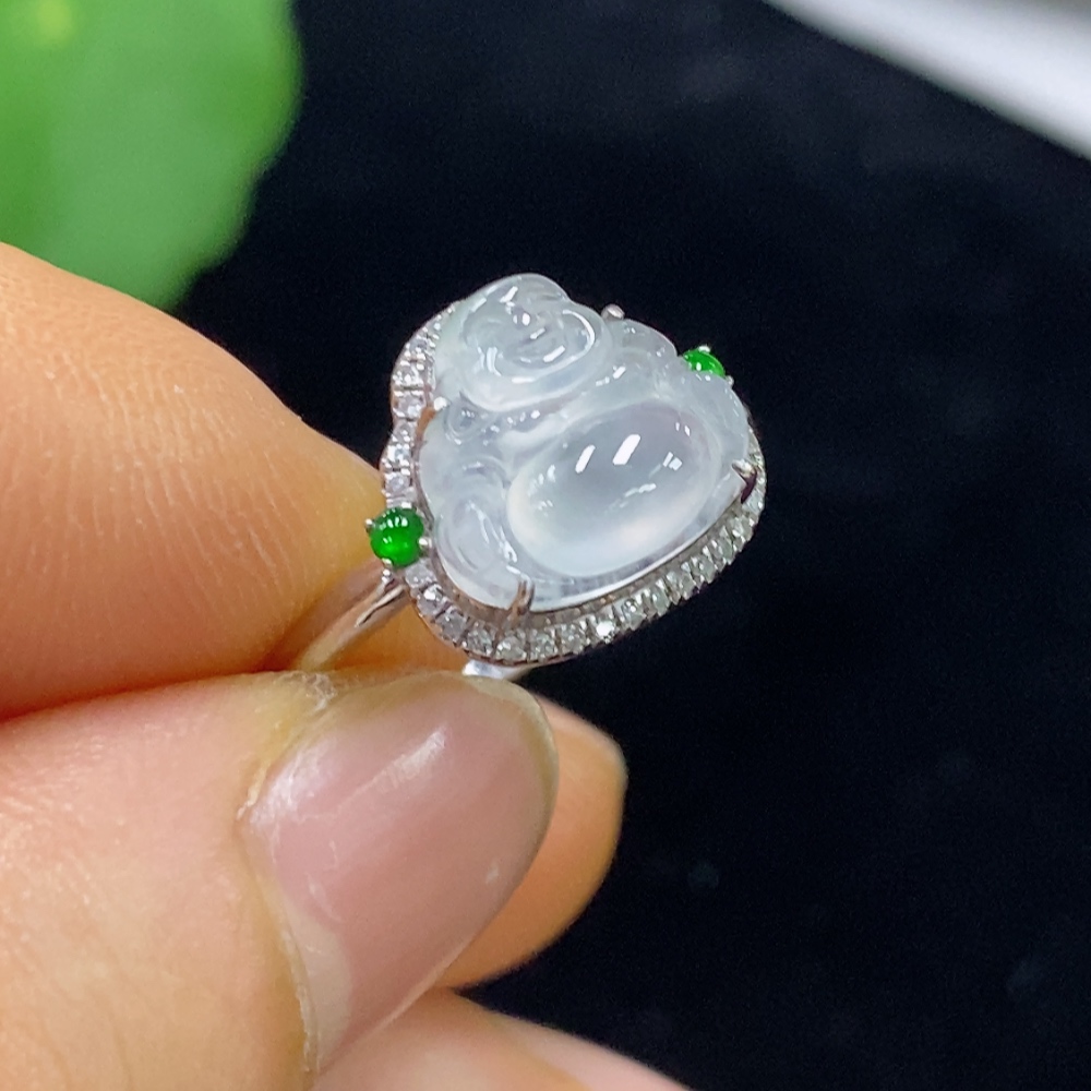 Jadeite ring set in 18k gold with diamond accents, total weight approximately 2.63g, size 15