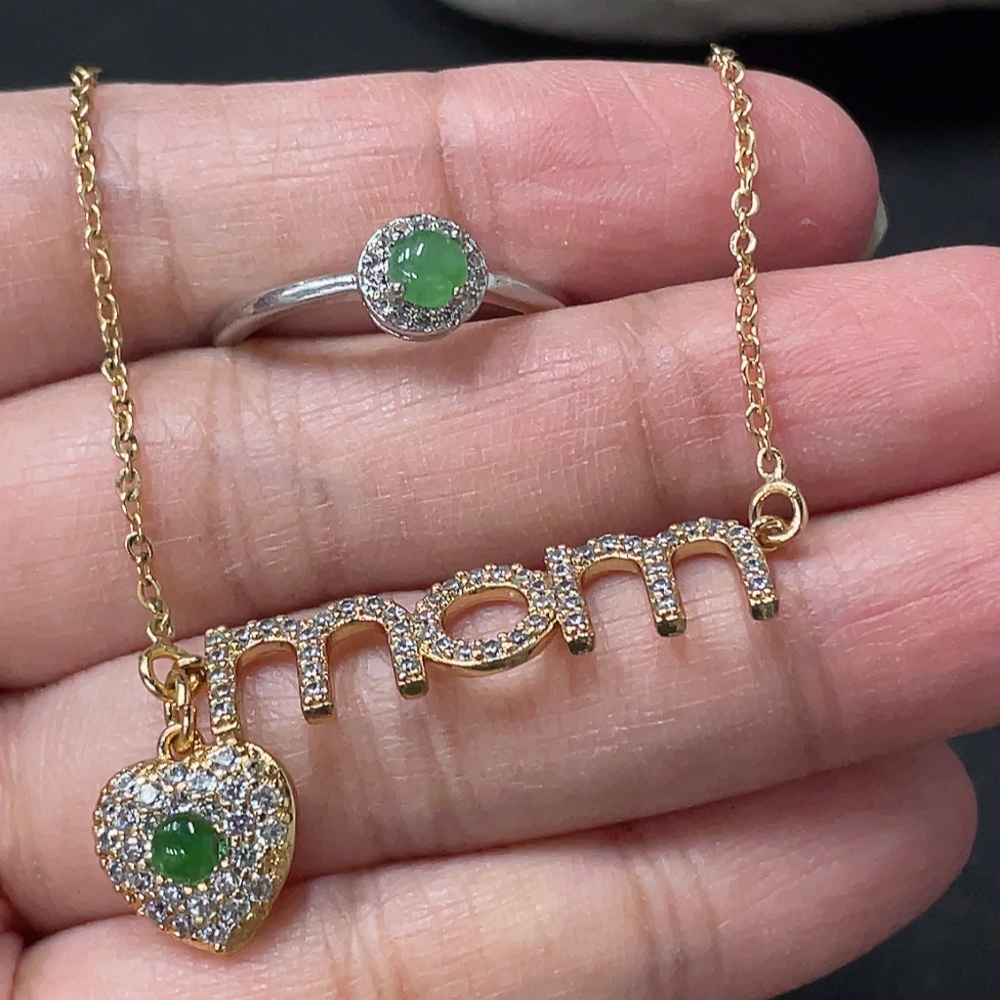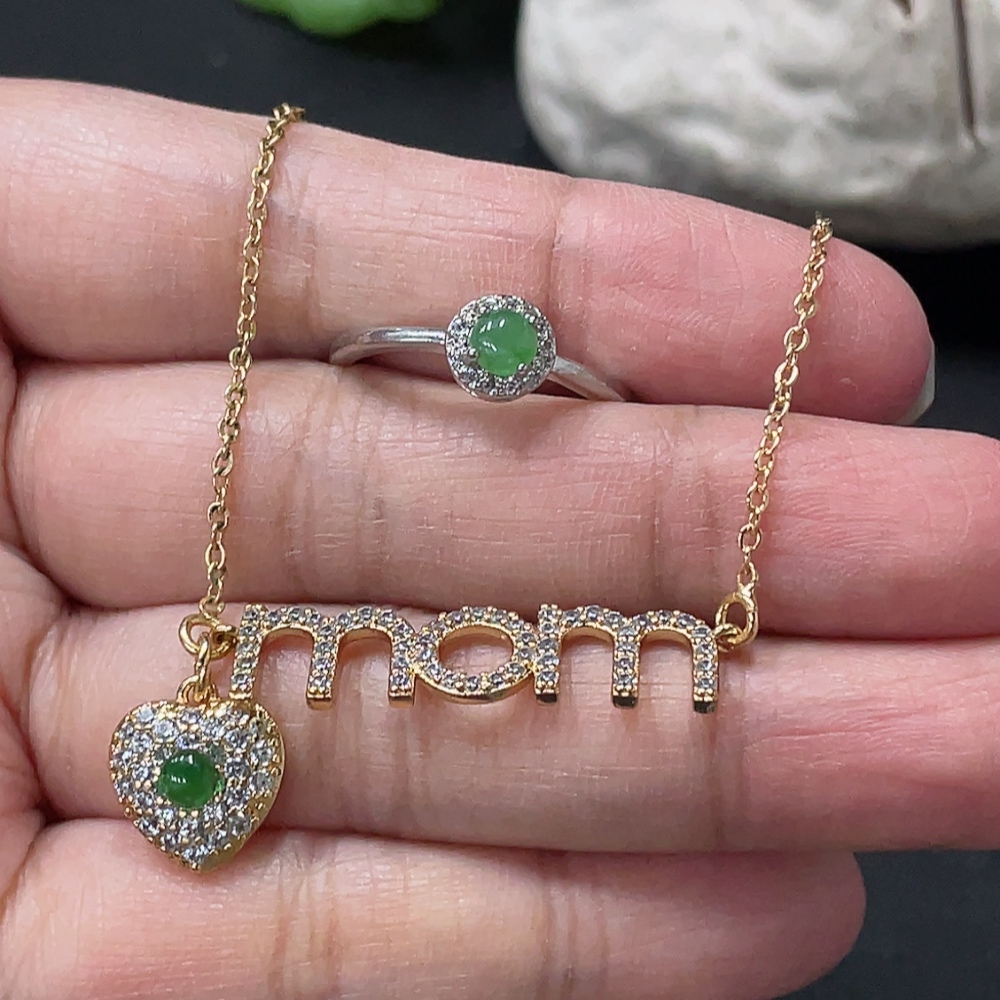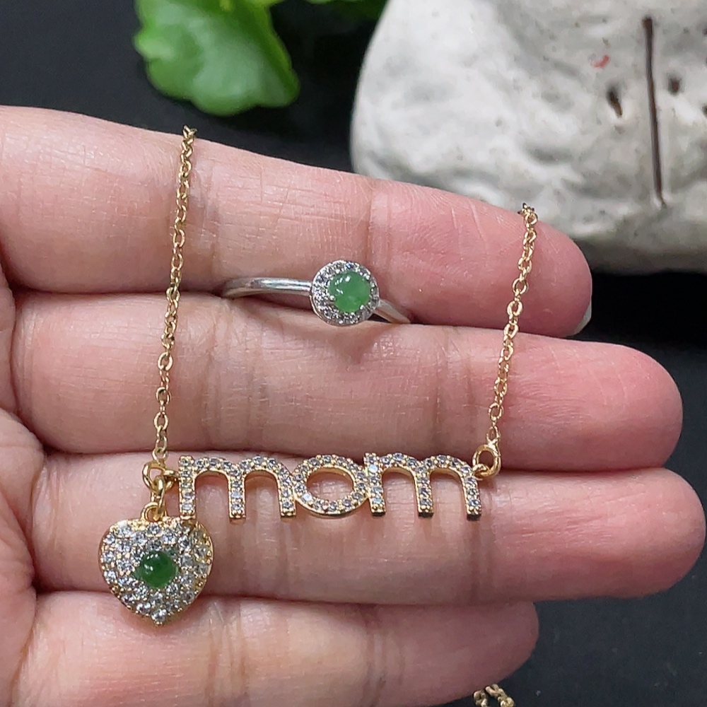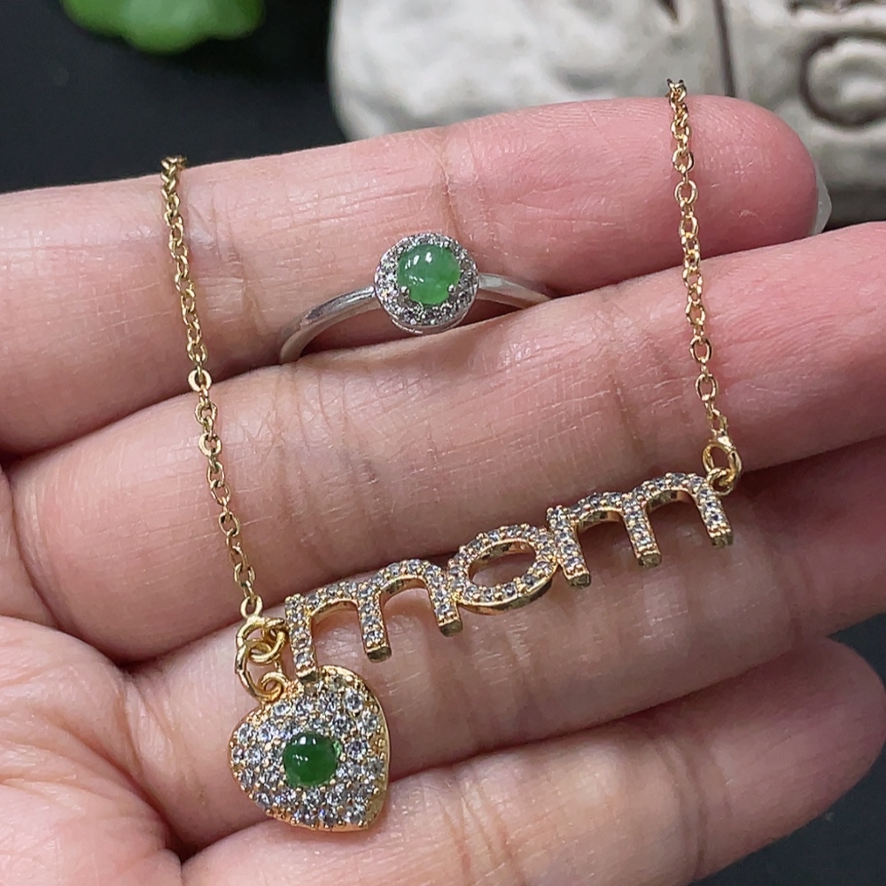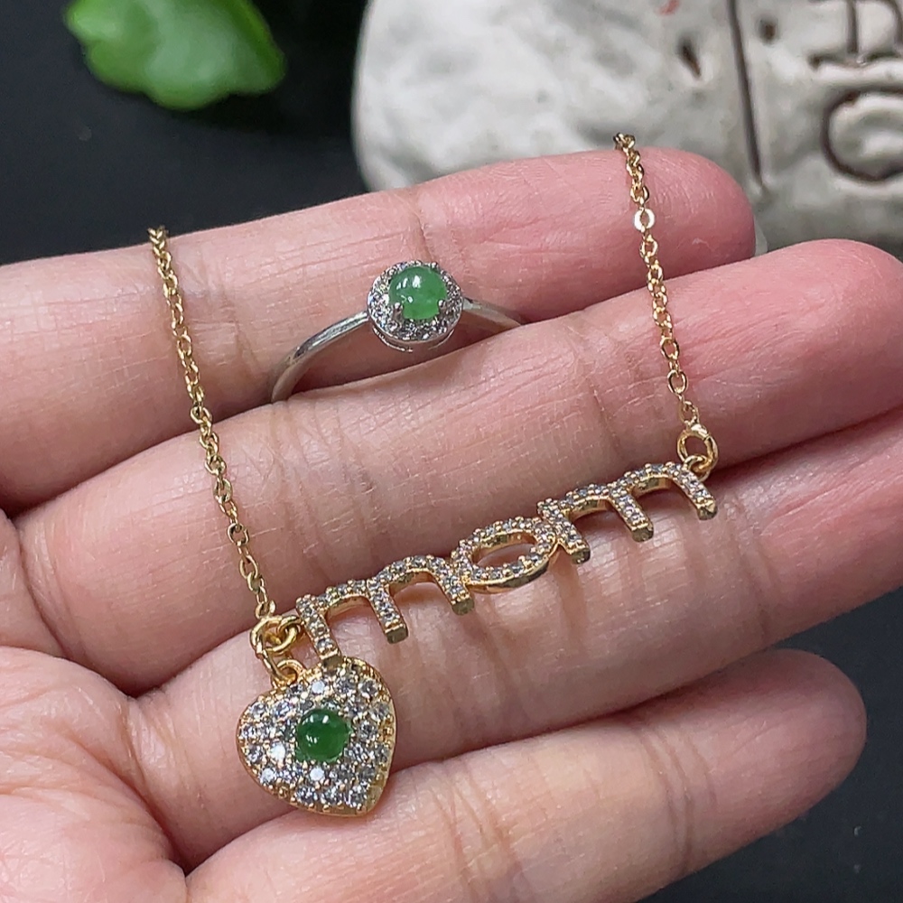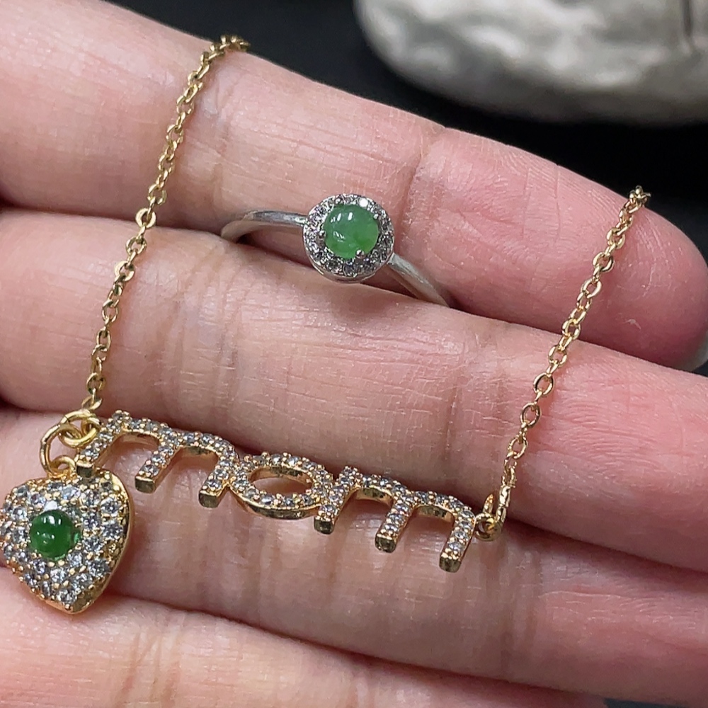 Jadeite Cabochon Pendant + Ring Non-Gold Setting Adjustable Size Total Weight Approx. 5.68g