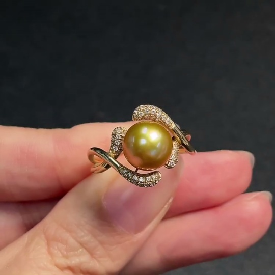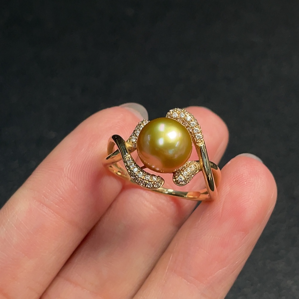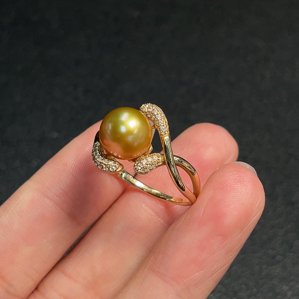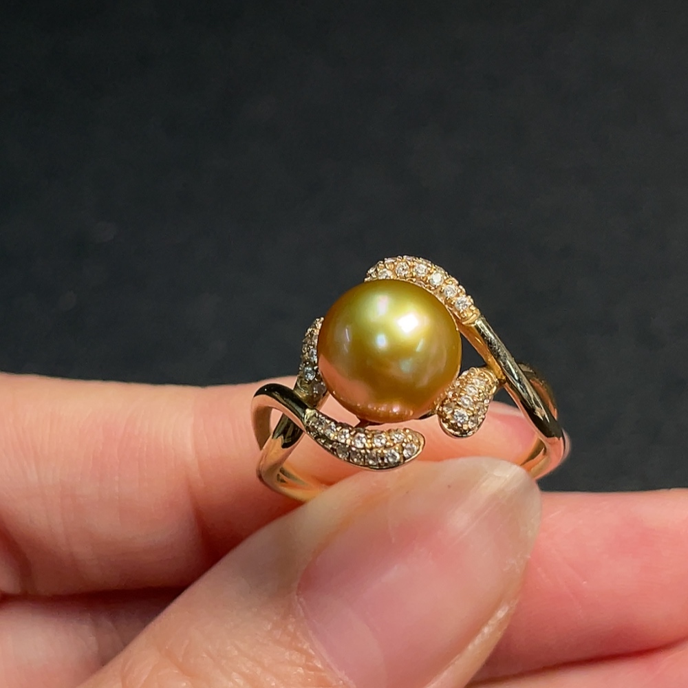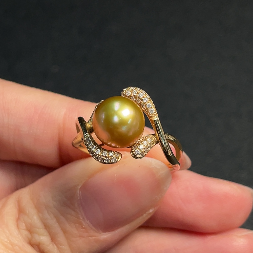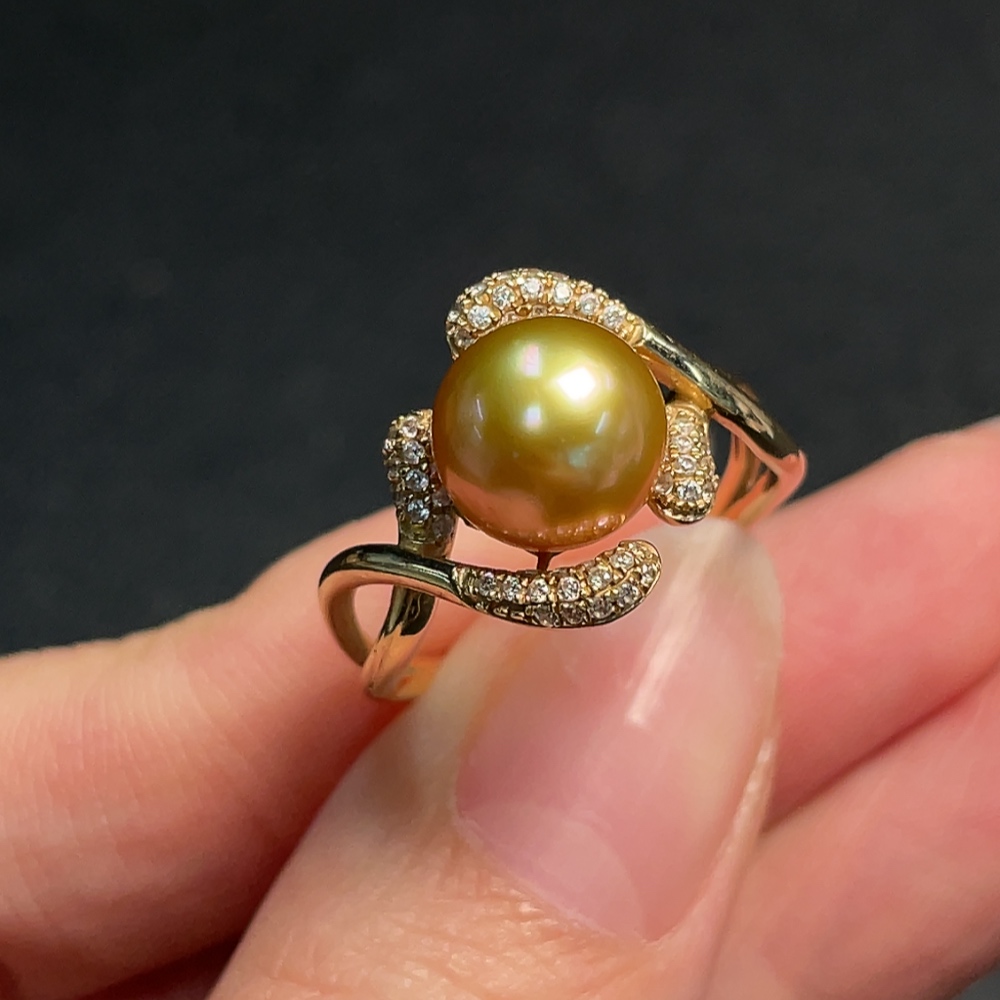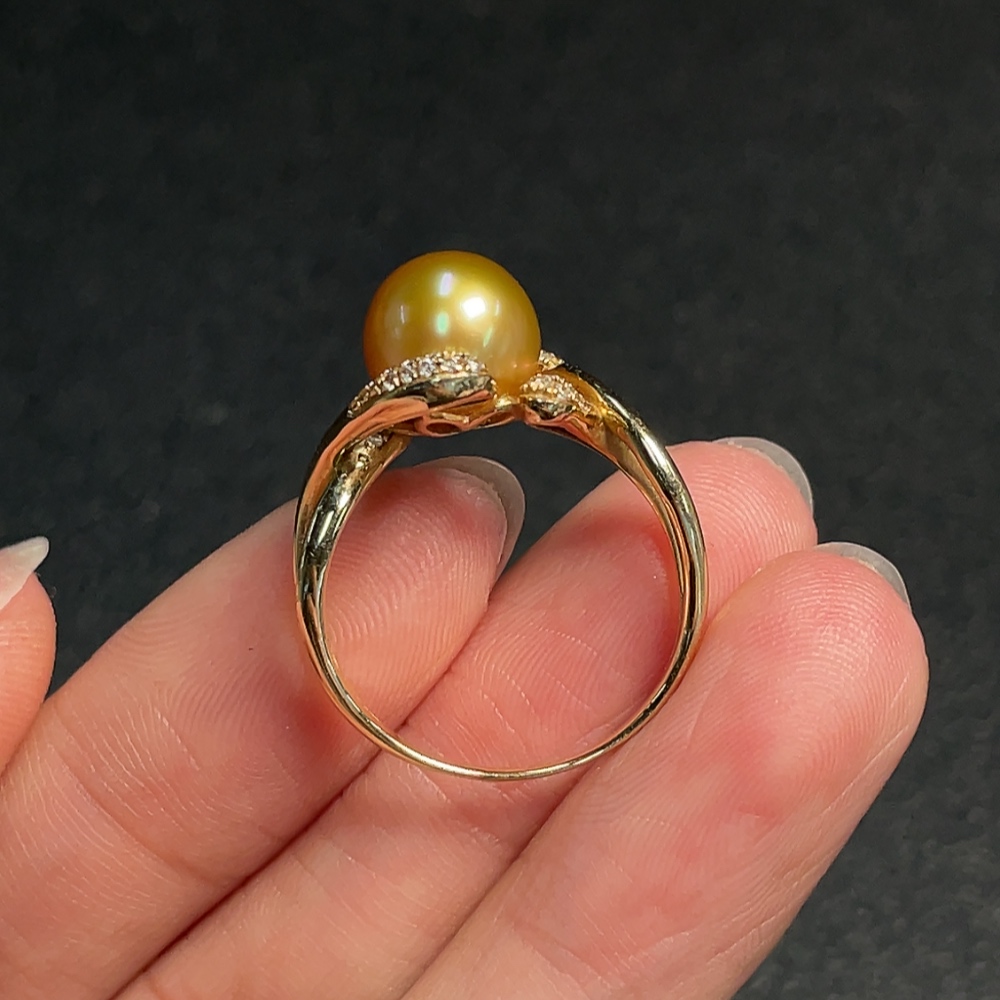 Seawater Pearl Ring, Color Origin Undetermined, Gold Content AU52%, Total Weight Approx. 3.87g, Size 17, Stone 8.9mm