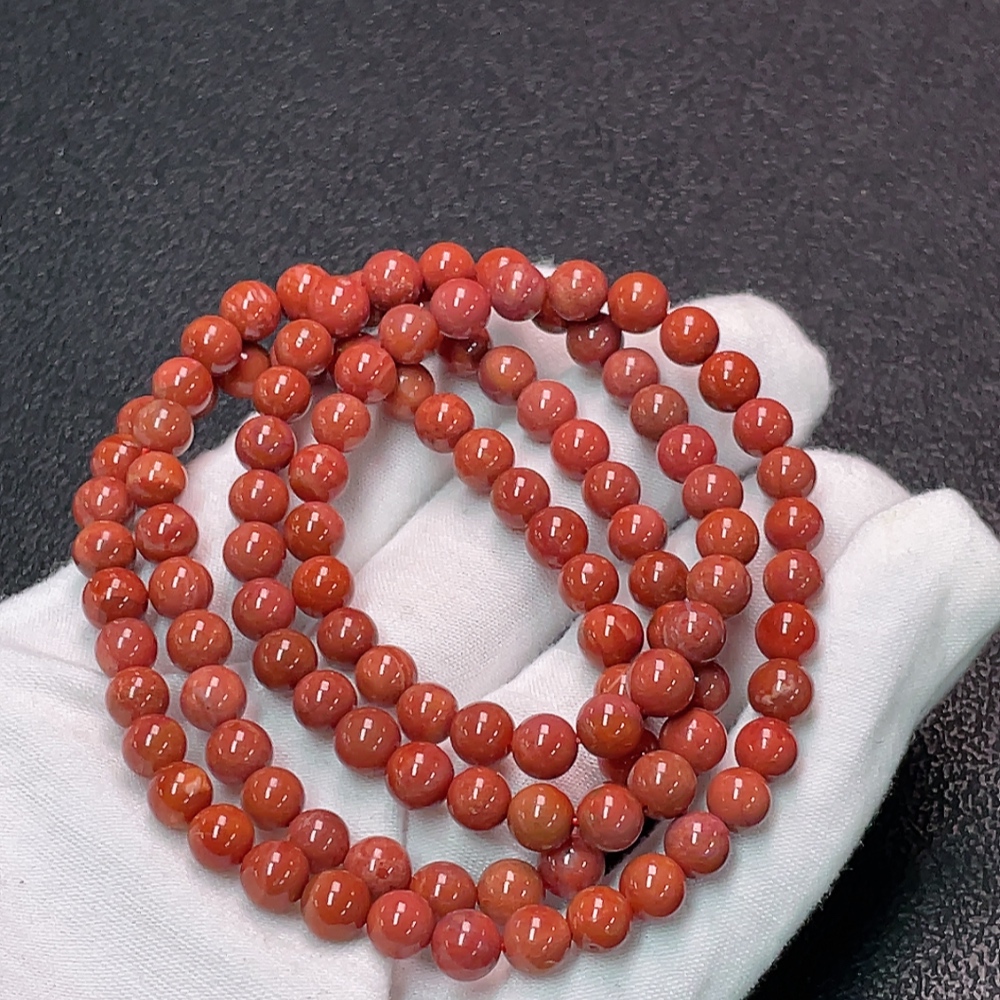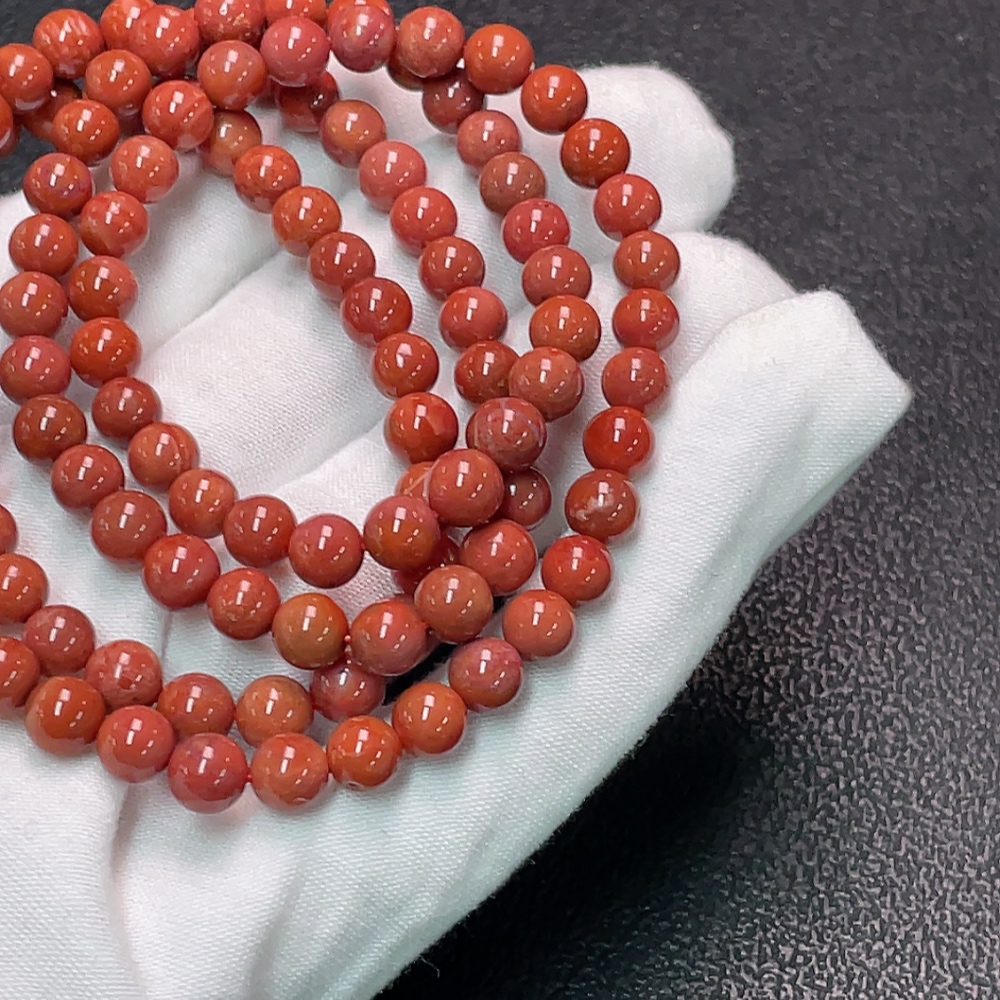 South Red Agate Bead Strand with Visible Organic Matter, Total Weight Approx. 35.46g, Size About 6.3mm