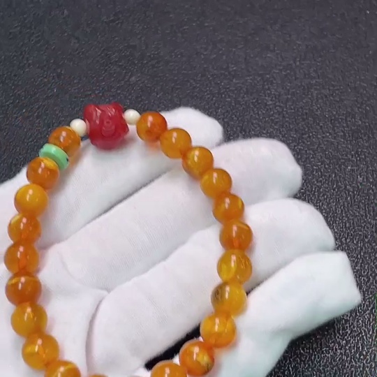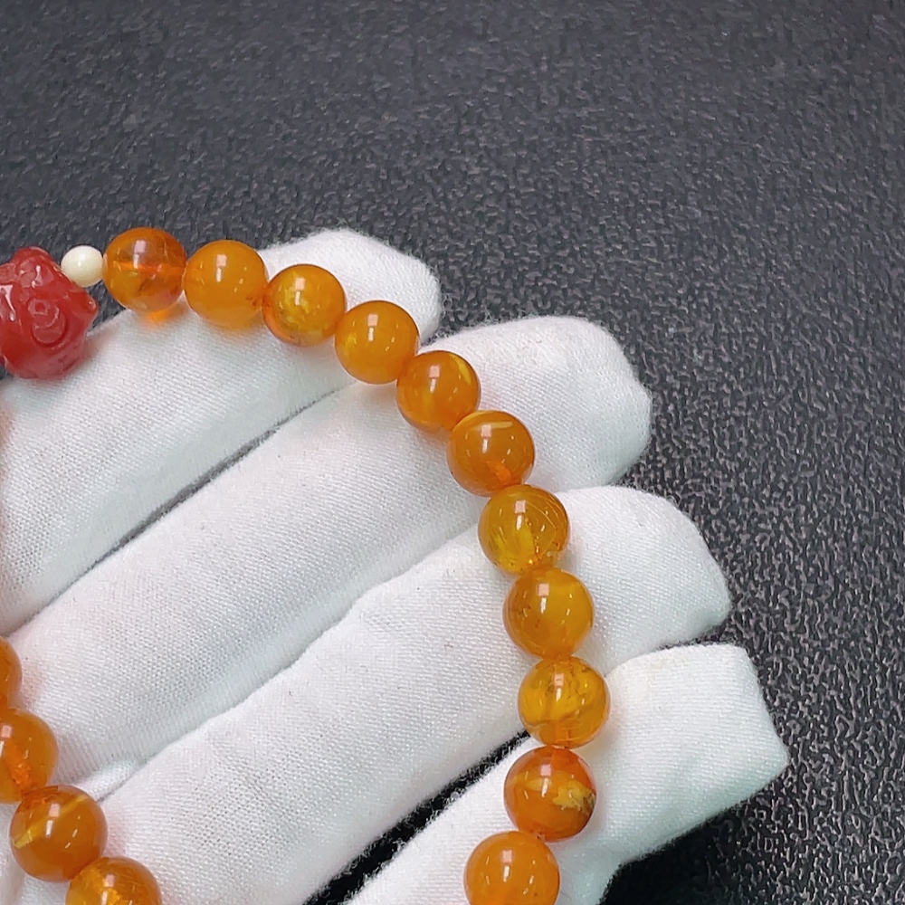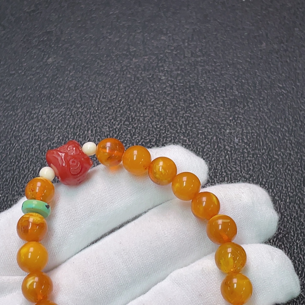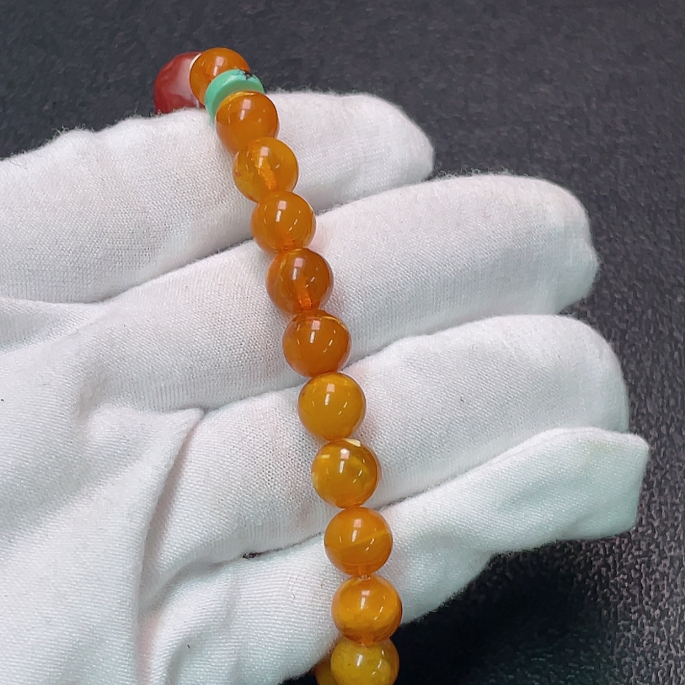 Amber Beeswax Bracelet with Non-Natural Accent Stones, Total Weight Approx. 9.37g, Size About 8.1mm