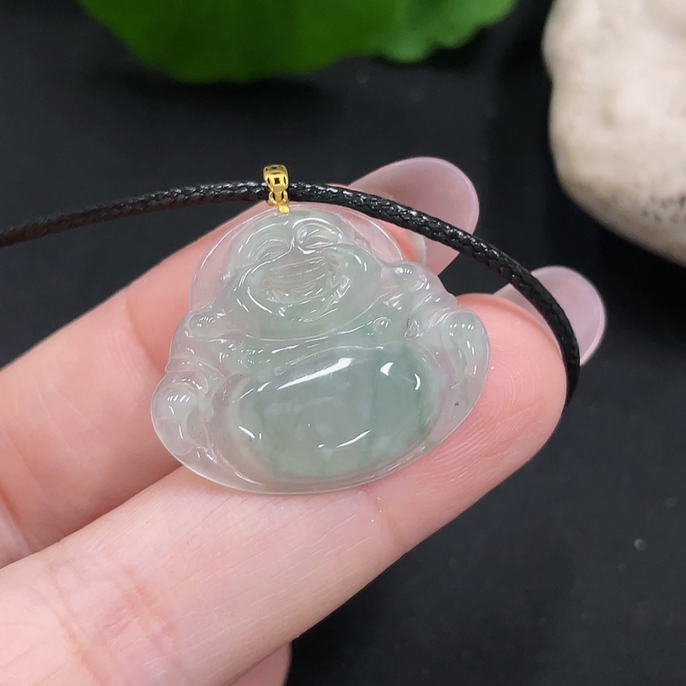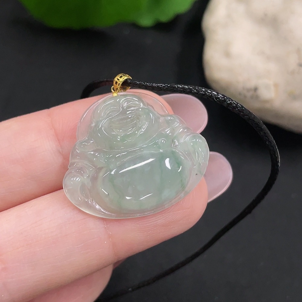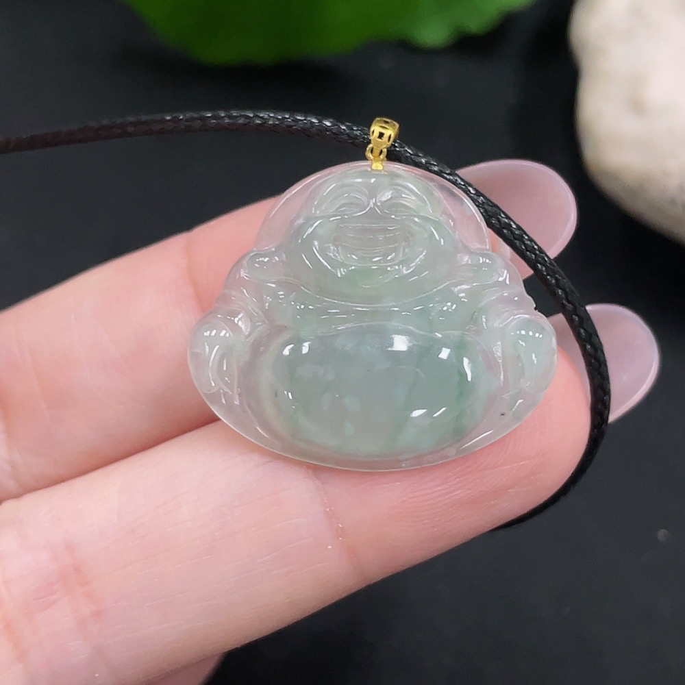 Jadeite Buddha Pendant with 18K Gold, Total Weight Approx. 2.85g (Excluding Rope)