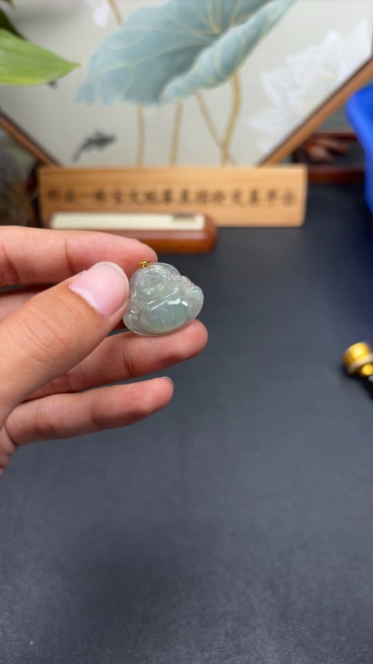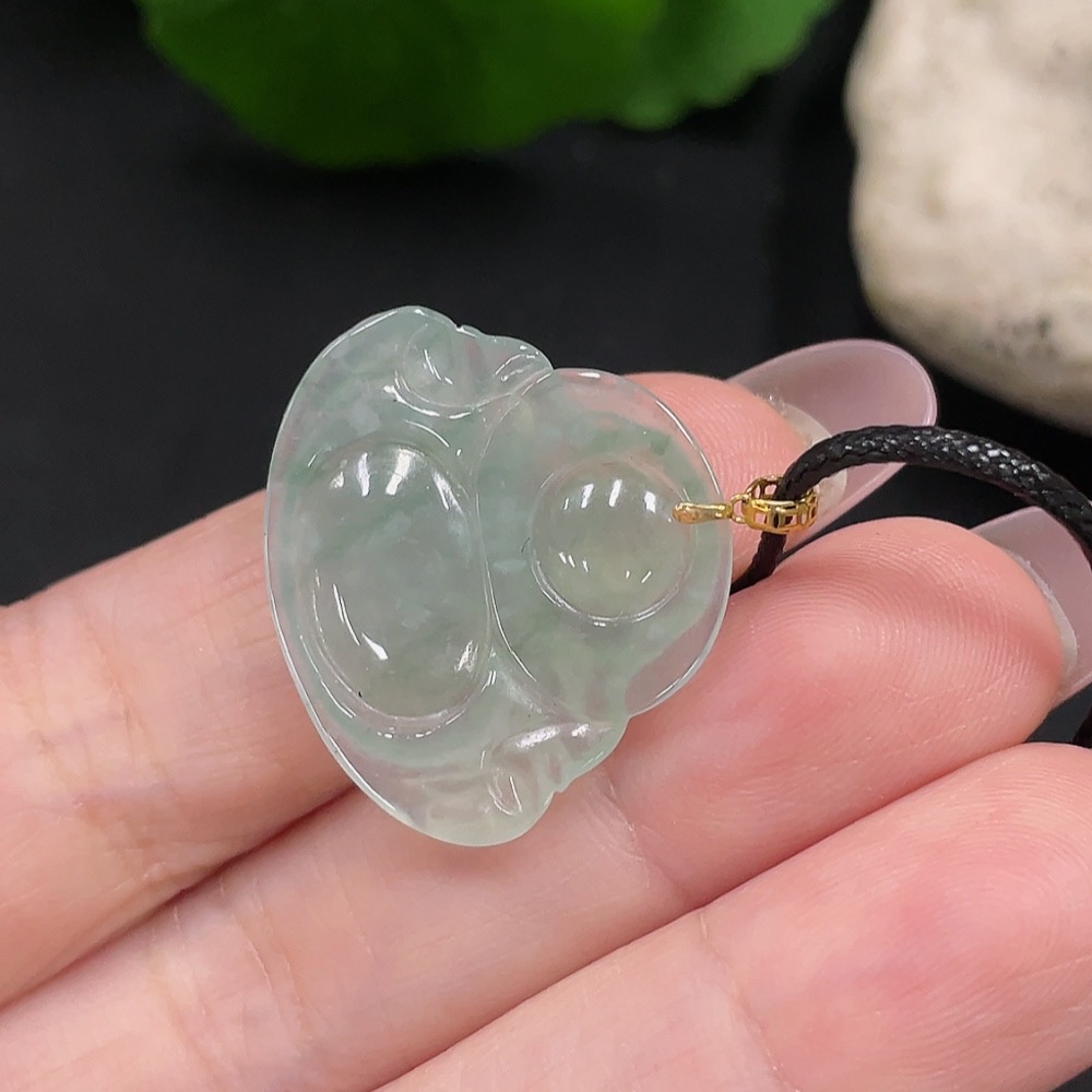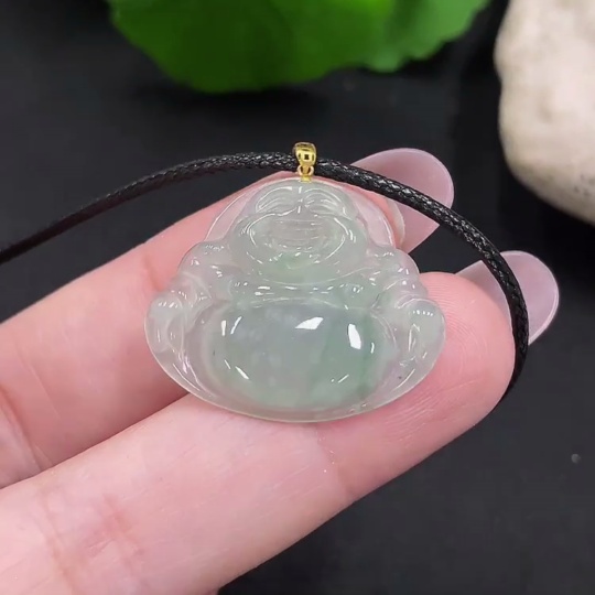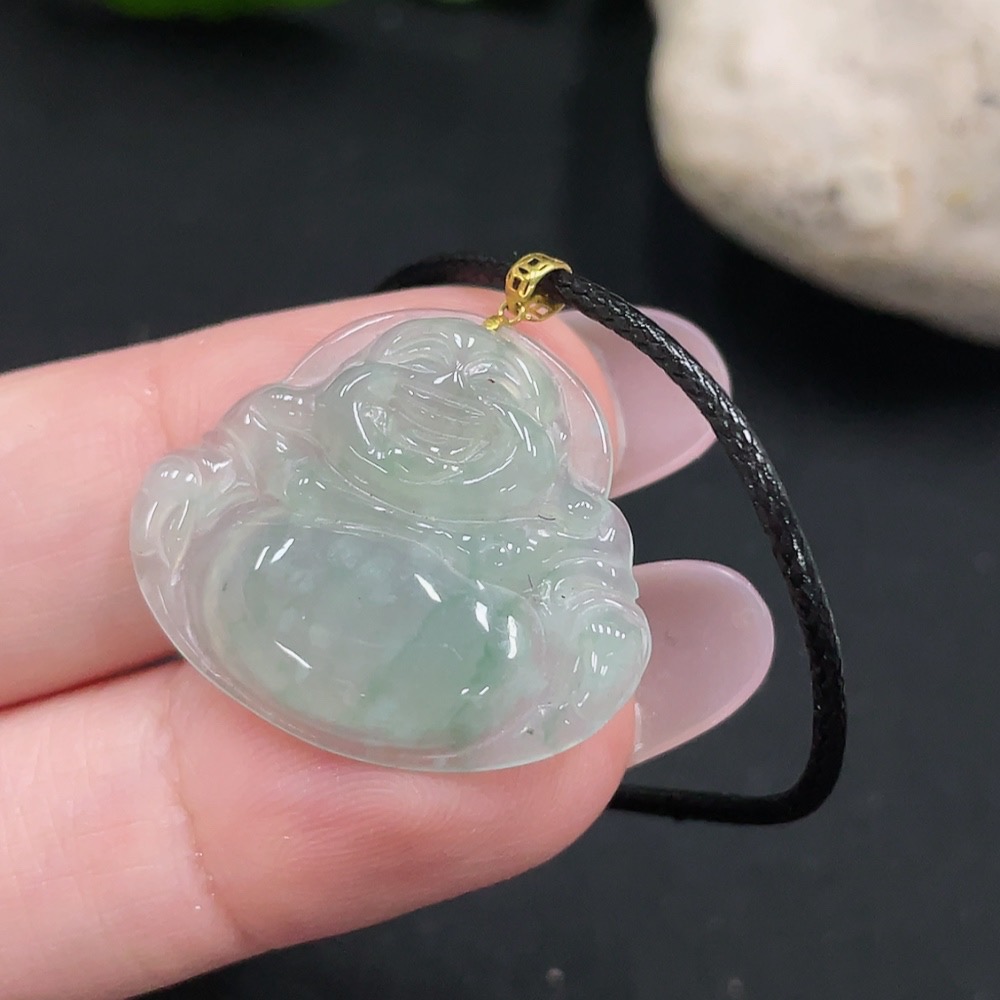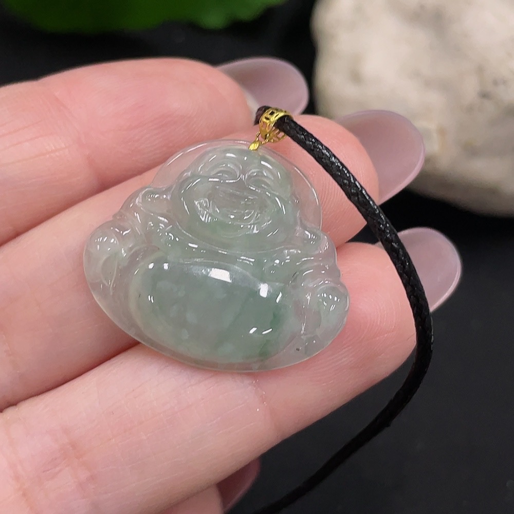 Jadeite Buddha Pendant with 18K Gold, Total Weight Approx. 2.85g (Excluding Rope)