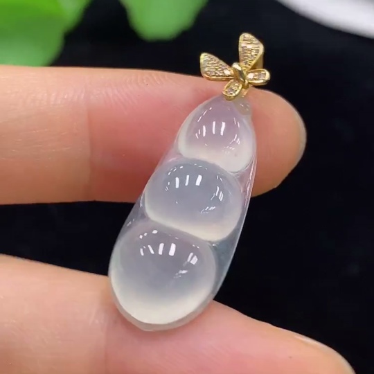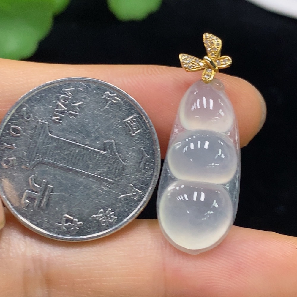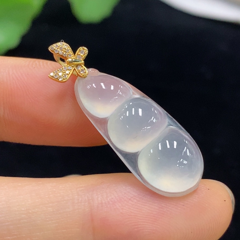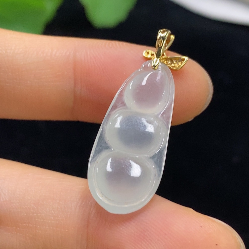 Jadeite Lucky Bean Pendant with 18K Gold and Diamond Accents, Total Weight Approx. 3.25g