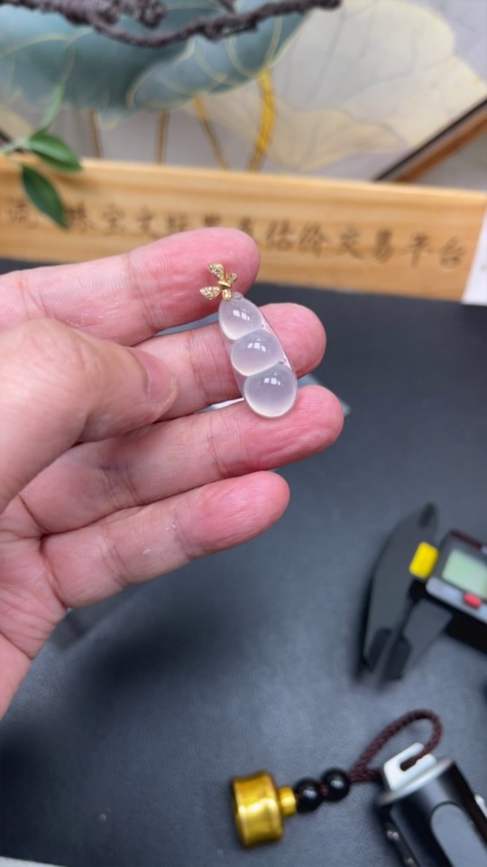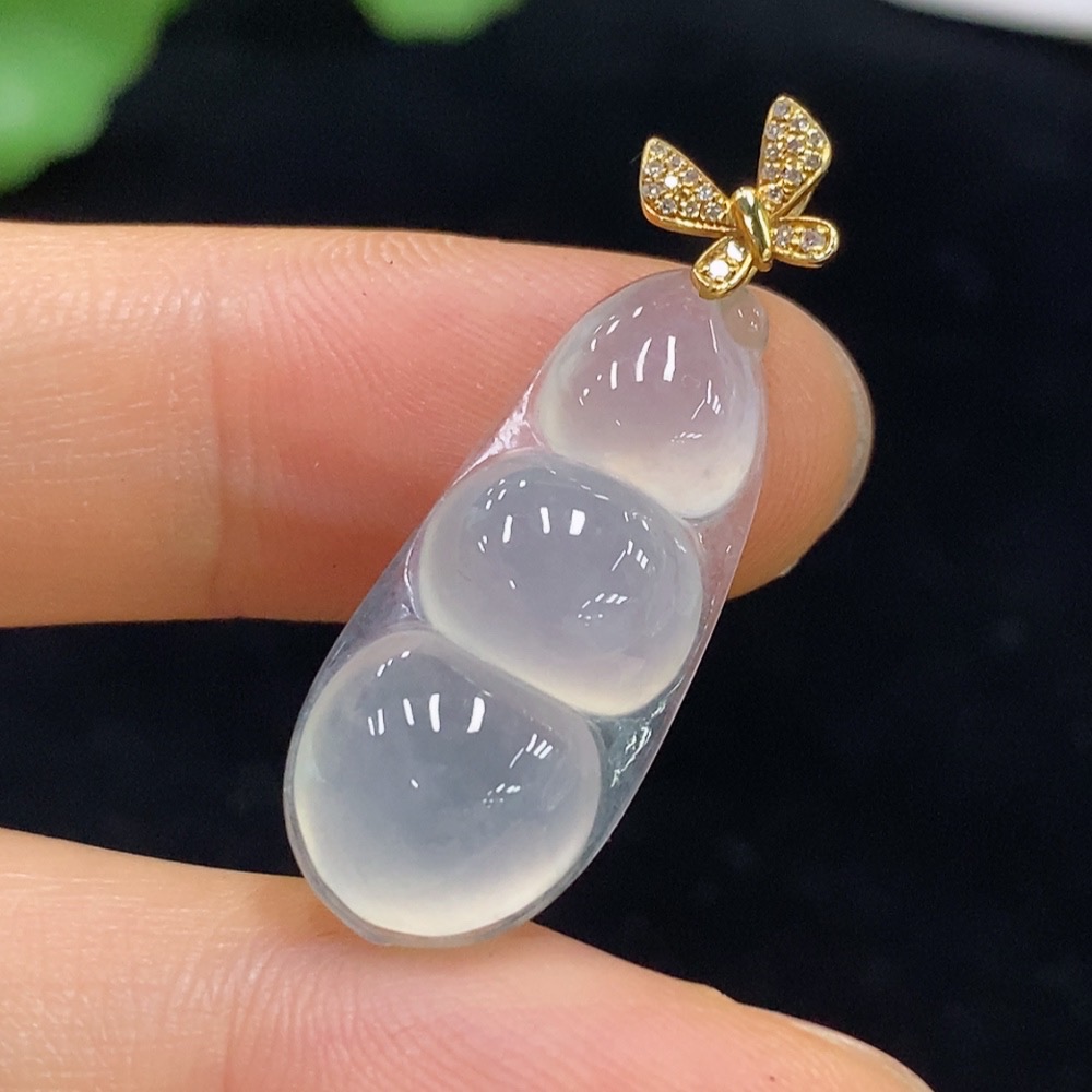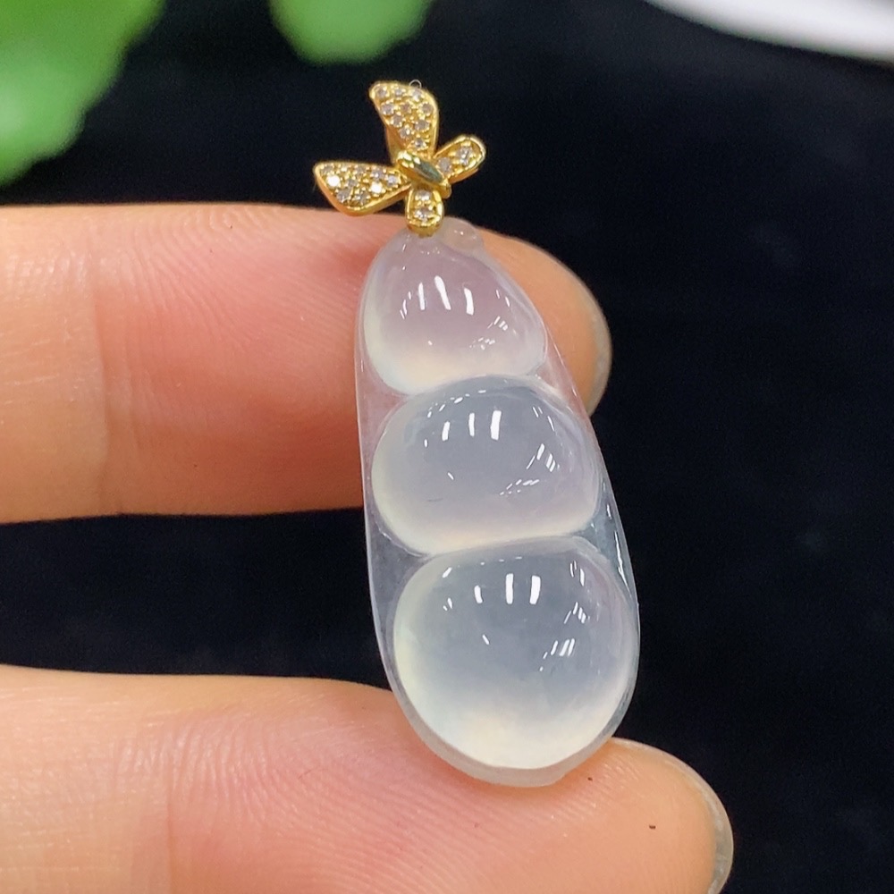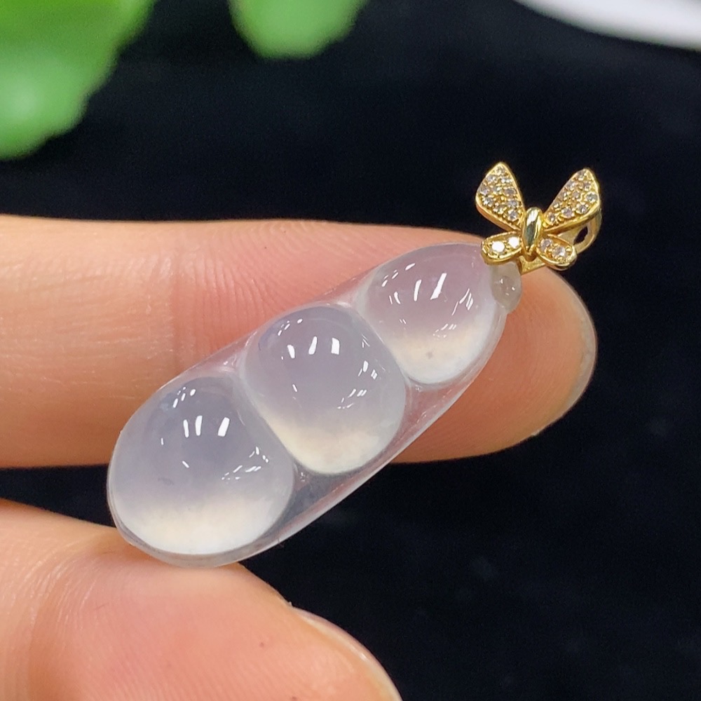 Jadeite Lucky Bean Pendant with 18K Gold and Diamond Accents, Total Weight Approx. 3.25g