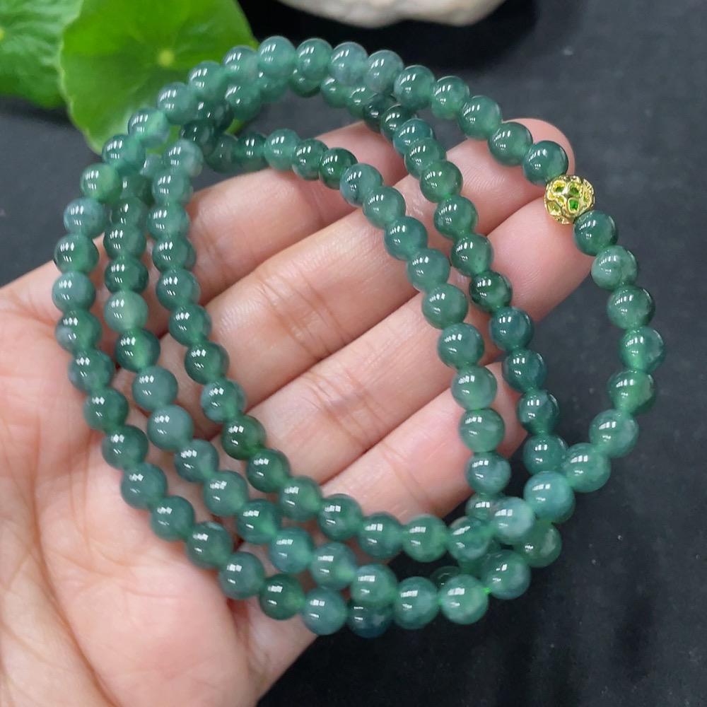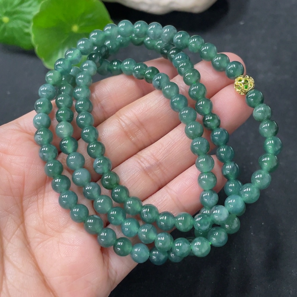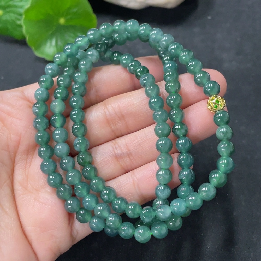 Jadeite Bead Necklace Approx. 5.5mm Non-Gold Total Weight Approx. 31.67g