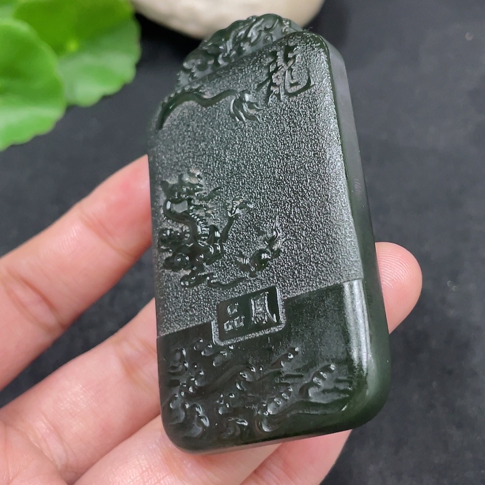 Hetian Jade Pendant Dragon Plaque Total Weight Approx. 47.4g
