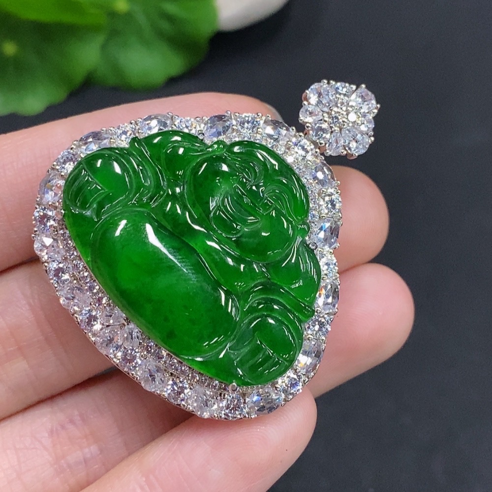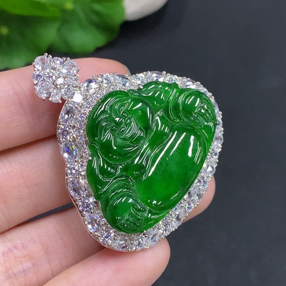 Jadeite Buddha Pendant Non-Gold Inlaid Total Weight Approximately 22.6g