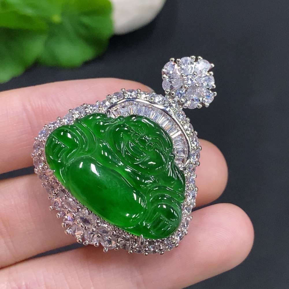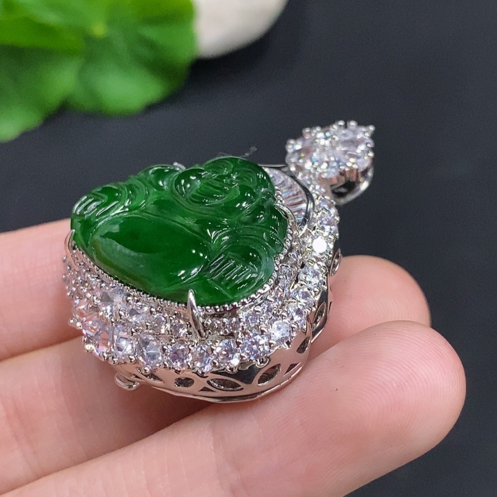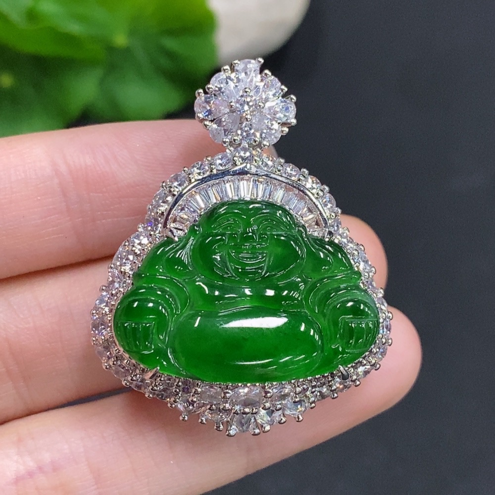Jadeite Buddha Pendant Non-Gold Inlaid Total Weight Approximately 17.2g