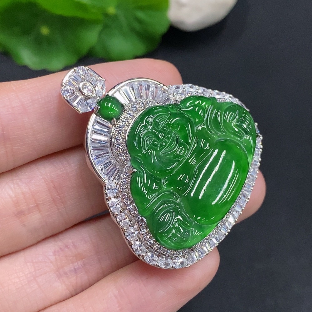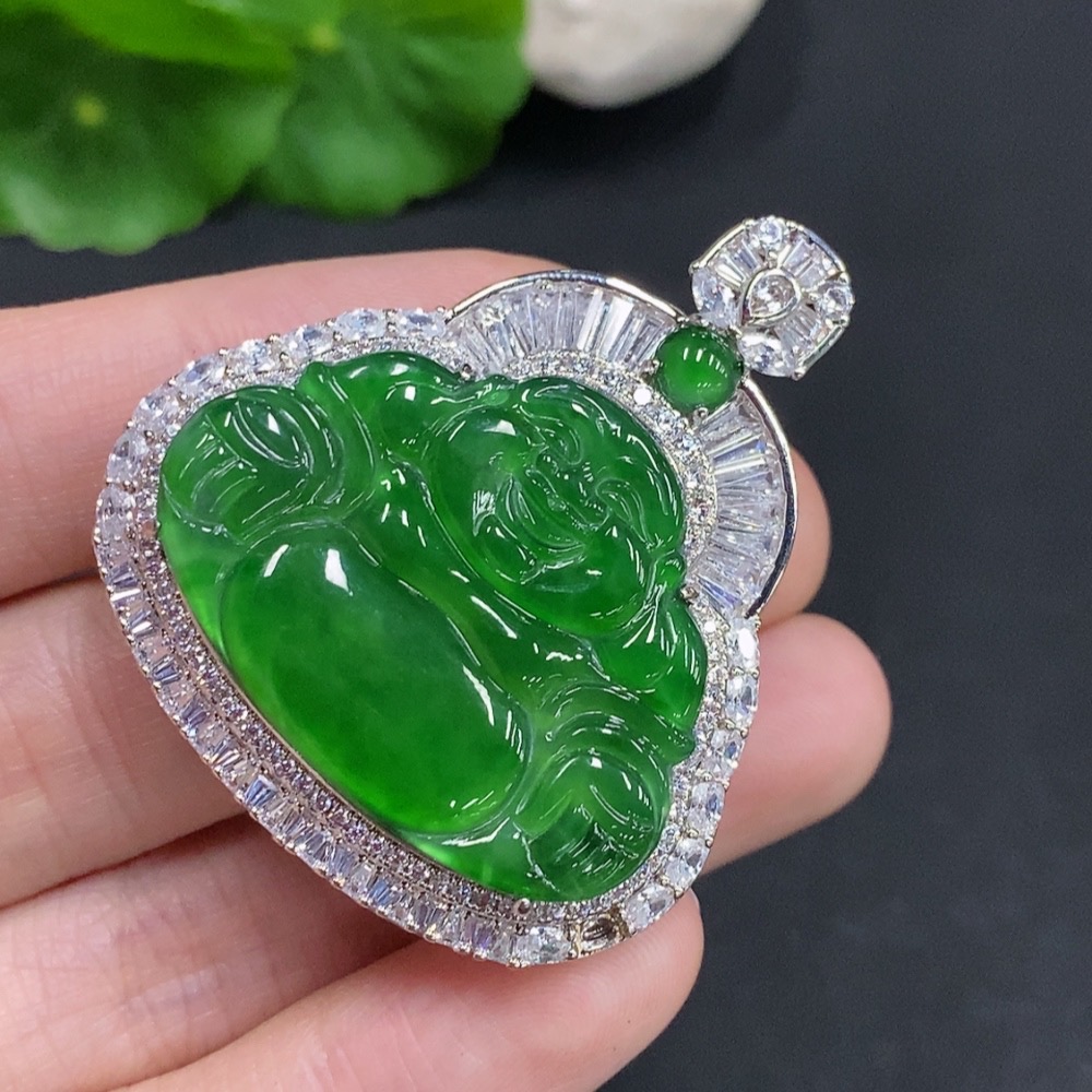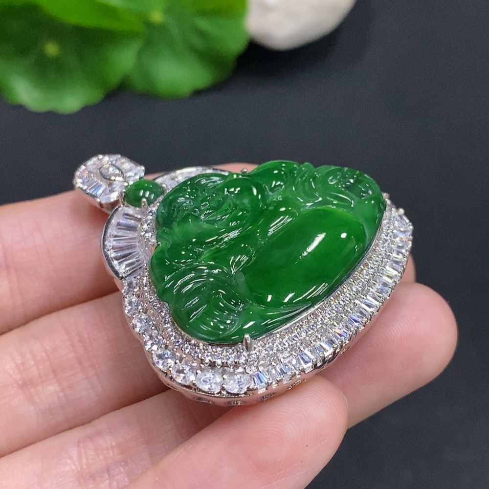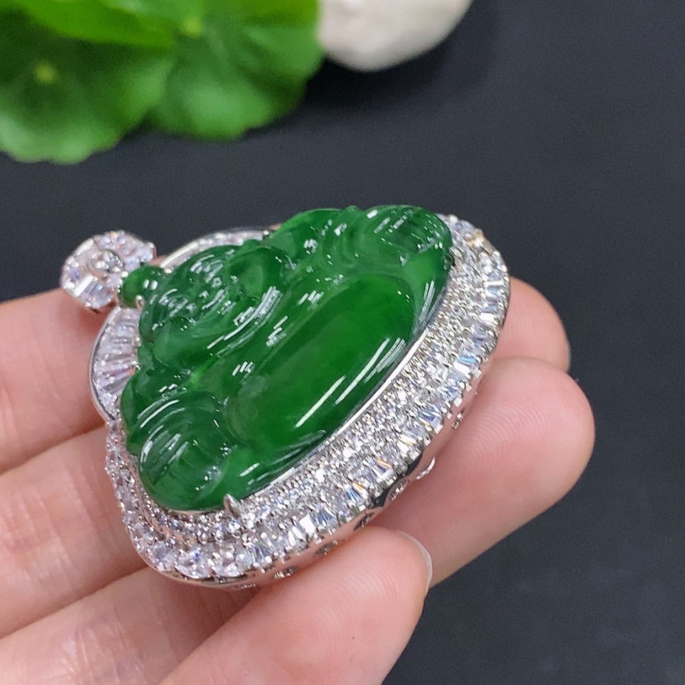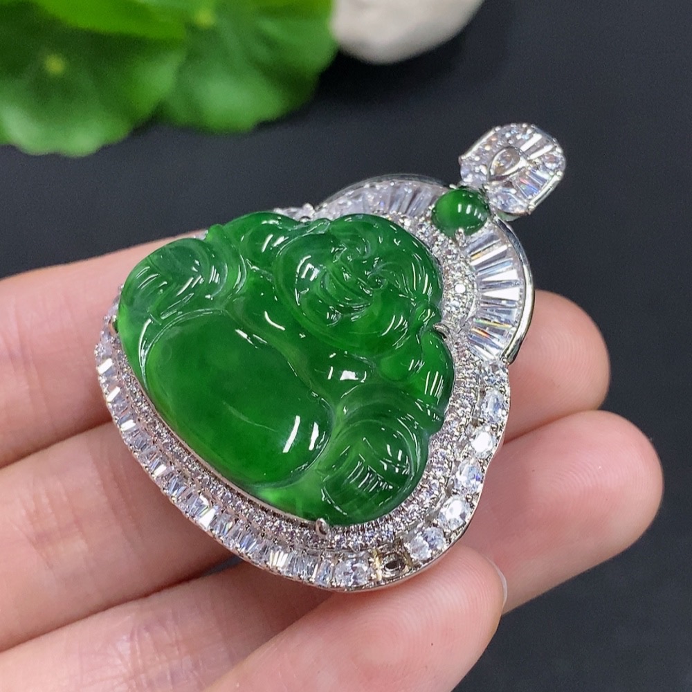 Jadeite Buddha Pendant Non-Gold Inlaid Total Weight Approximately 23.2g