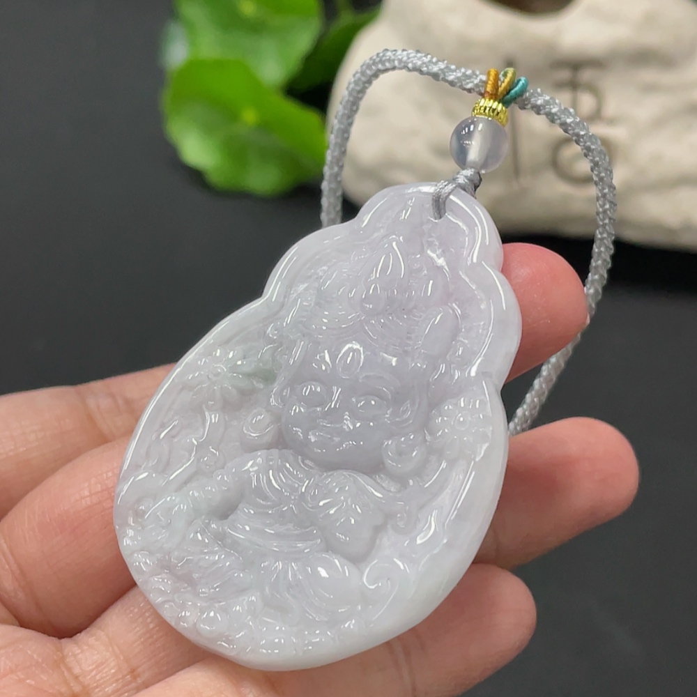 Jadeite Baby Buddha Pendant Total Weight Approx. 23.95g With Non-Grade A Beads