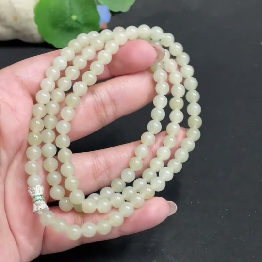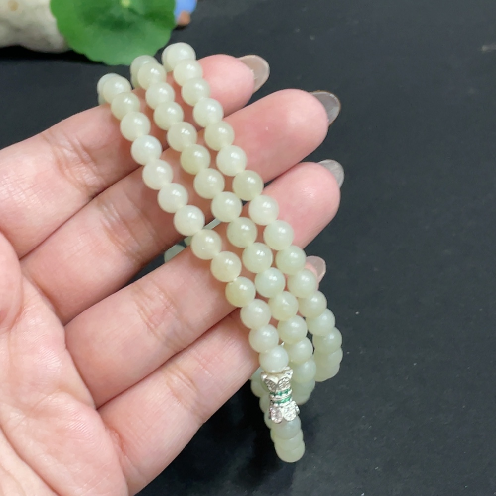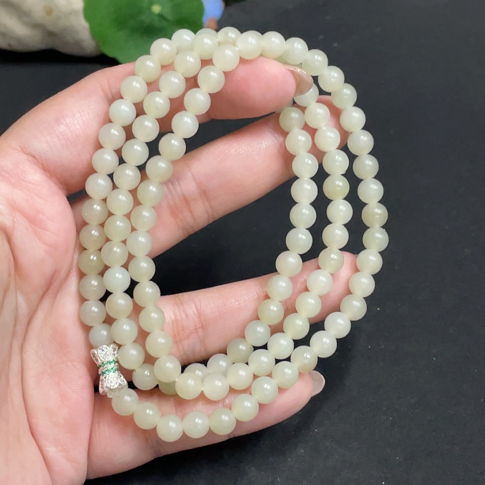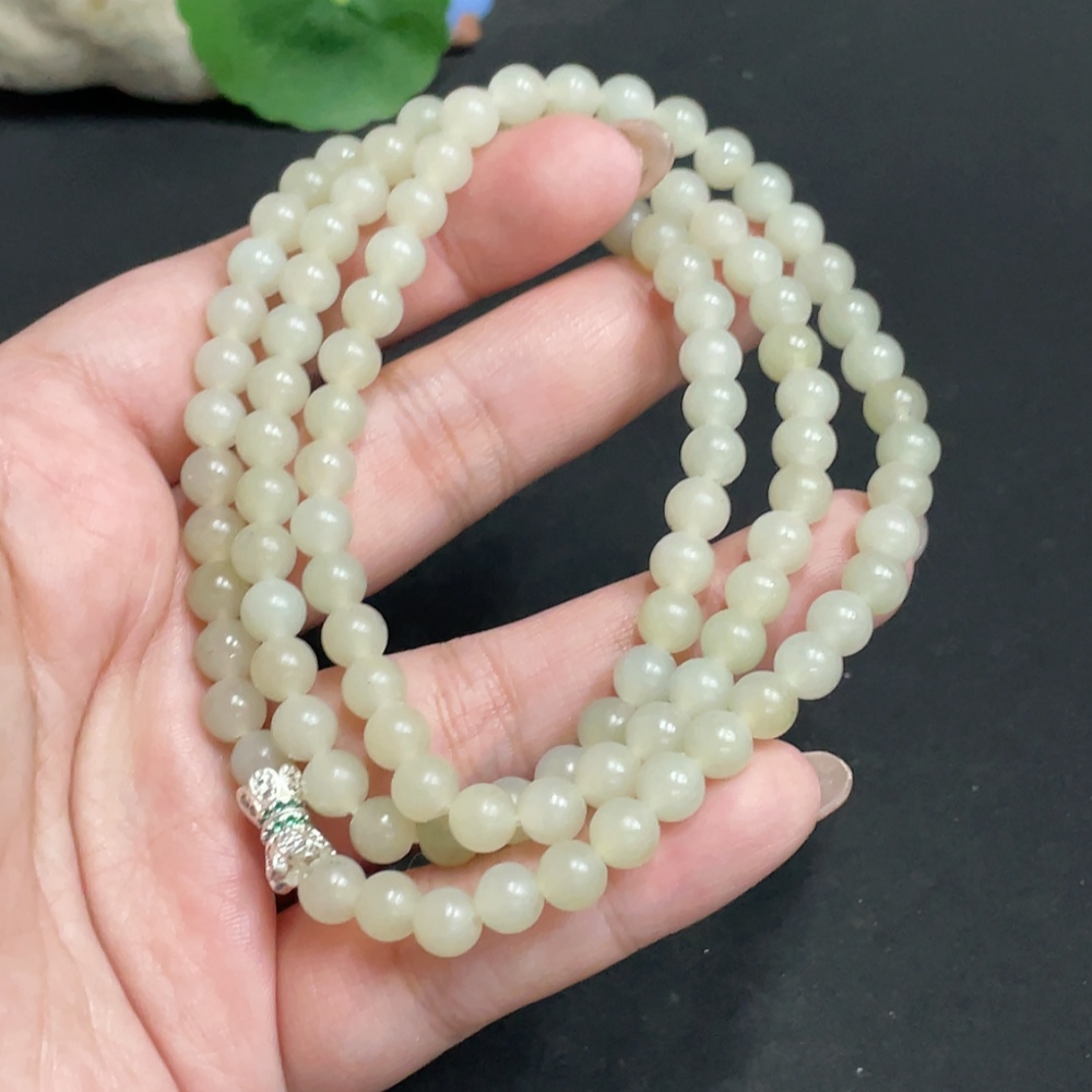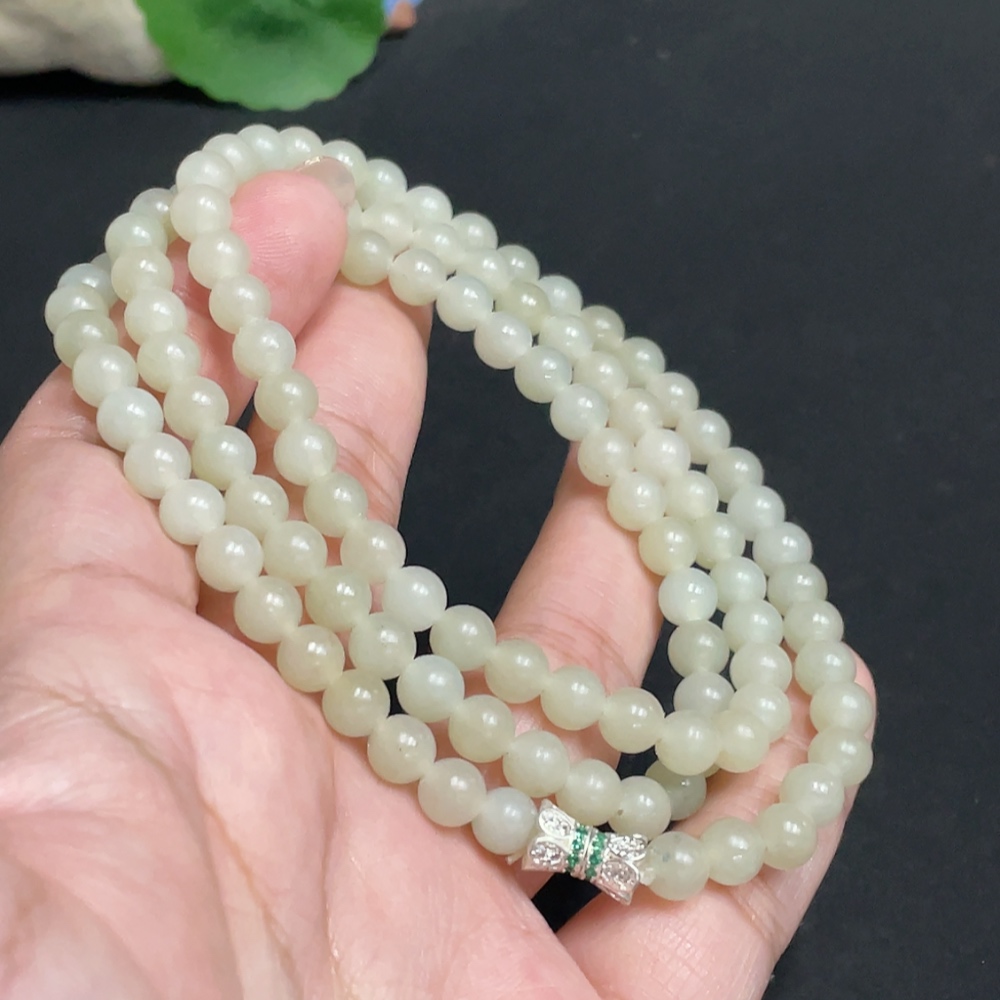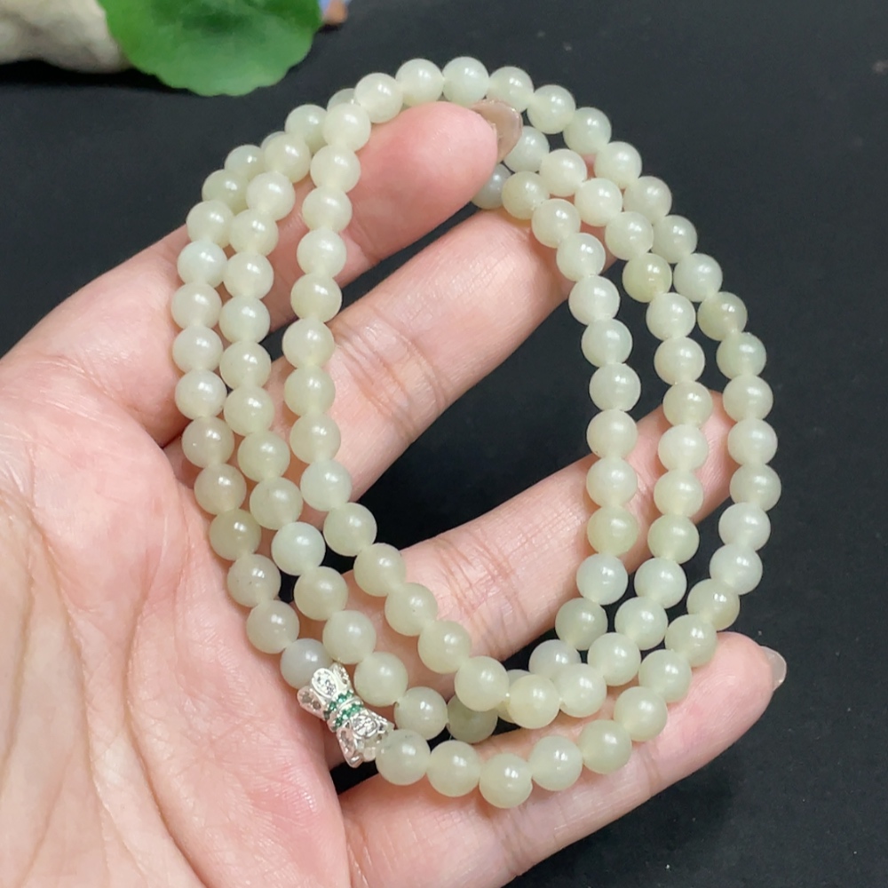 Hetian Jade Bead Necklace, Approx. 5.8mm, Total Weight Approx. 38g, Non-Gold