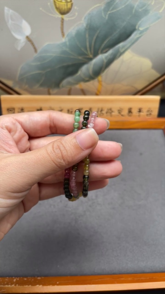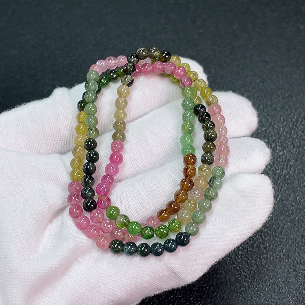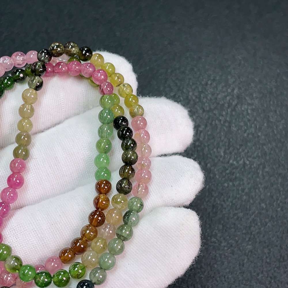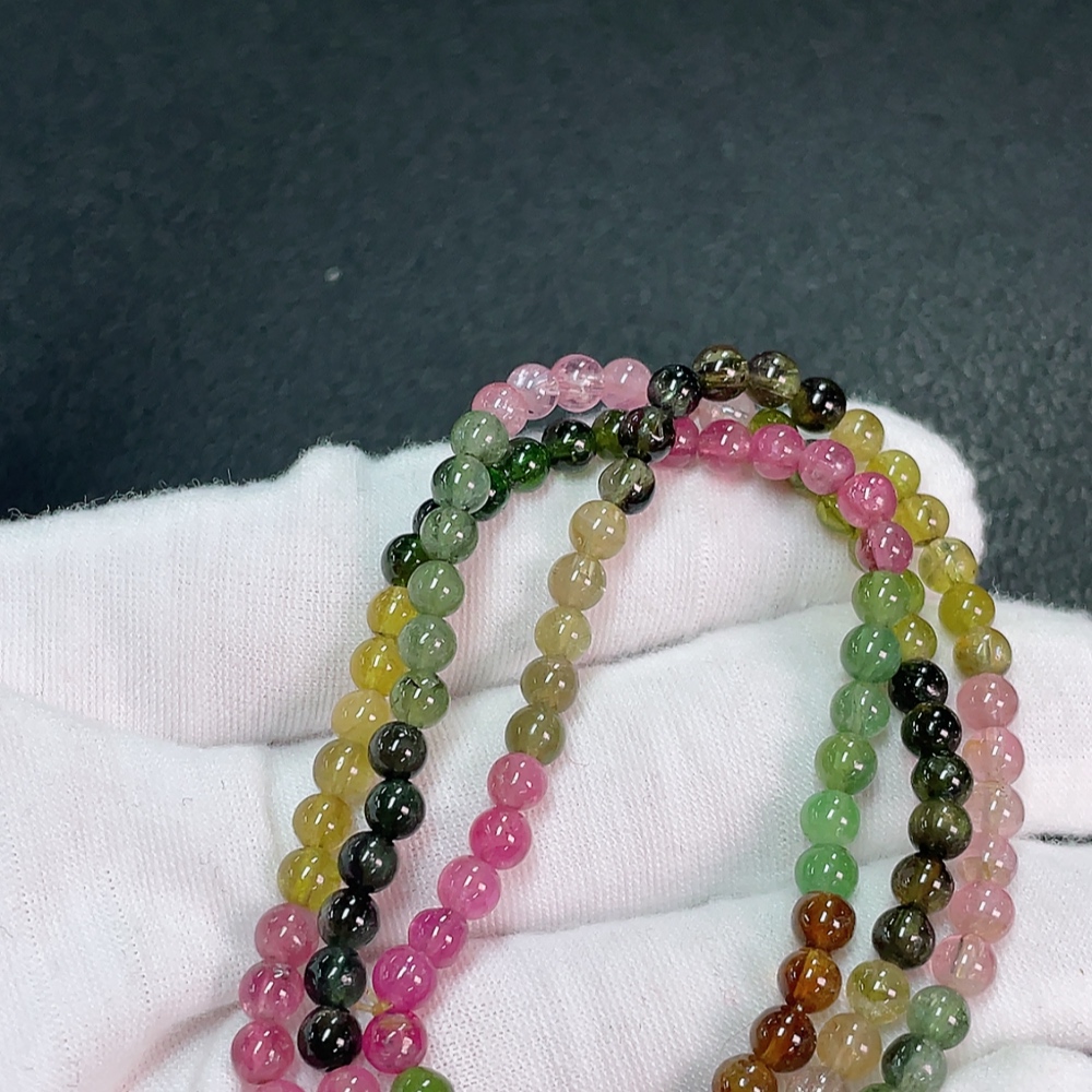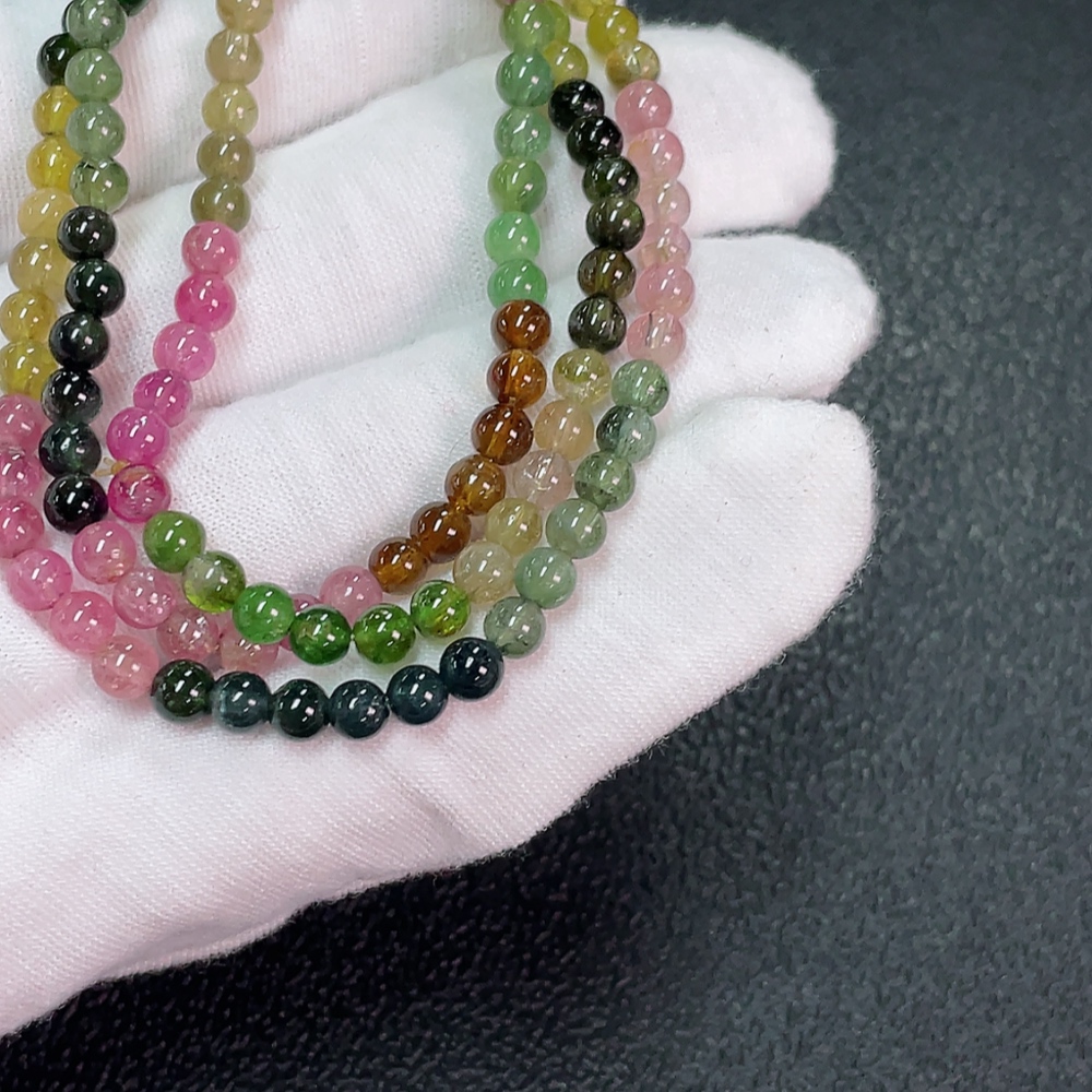 Tourmaline bead necklace with visible organic inclusions, total weight approx. 14.74g, bead size ca. 4.2mm