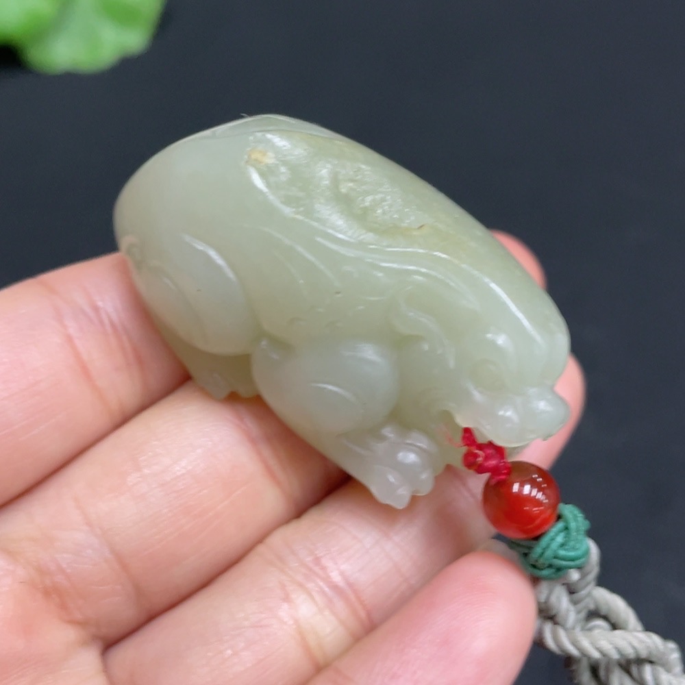 Hetian Jade Pendant Pi Xiu Undetermined Skin Color Formation Total Weight Approx. (Including Rope) 37.1g