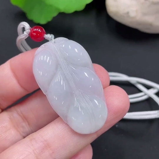 Jadeite Leaf Pendant Total Weight Approx. 9.3g (Including Cord Weight)